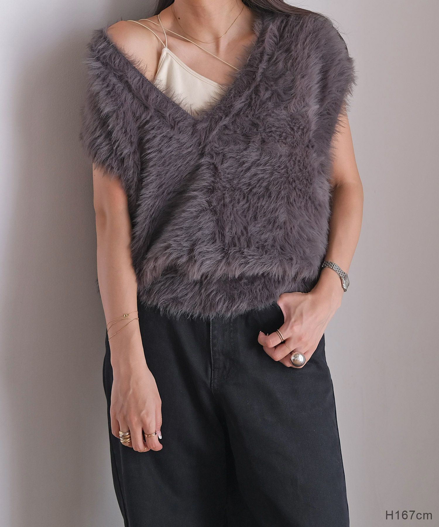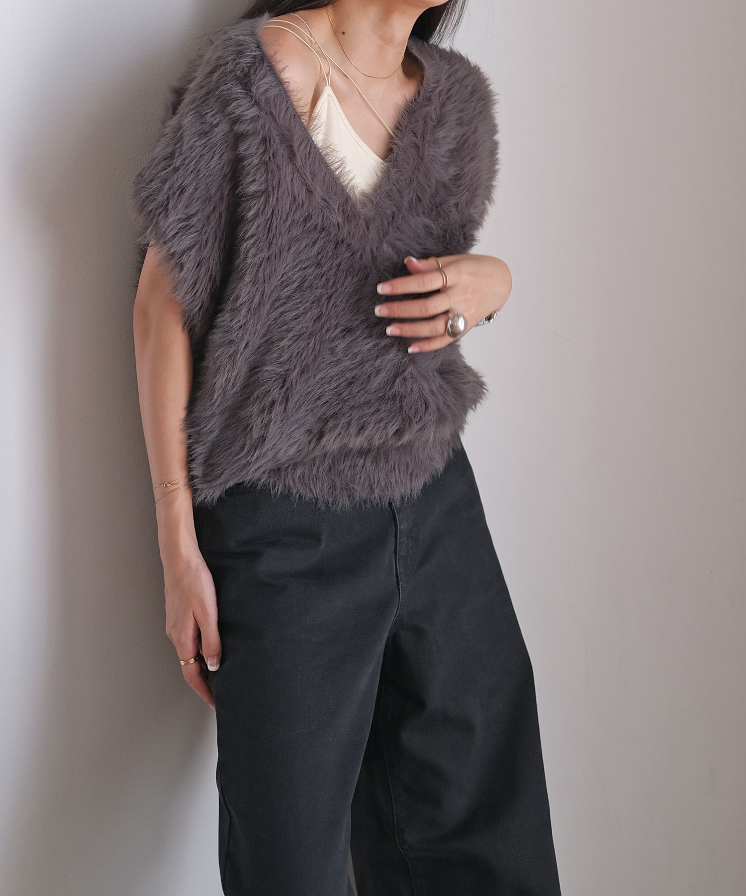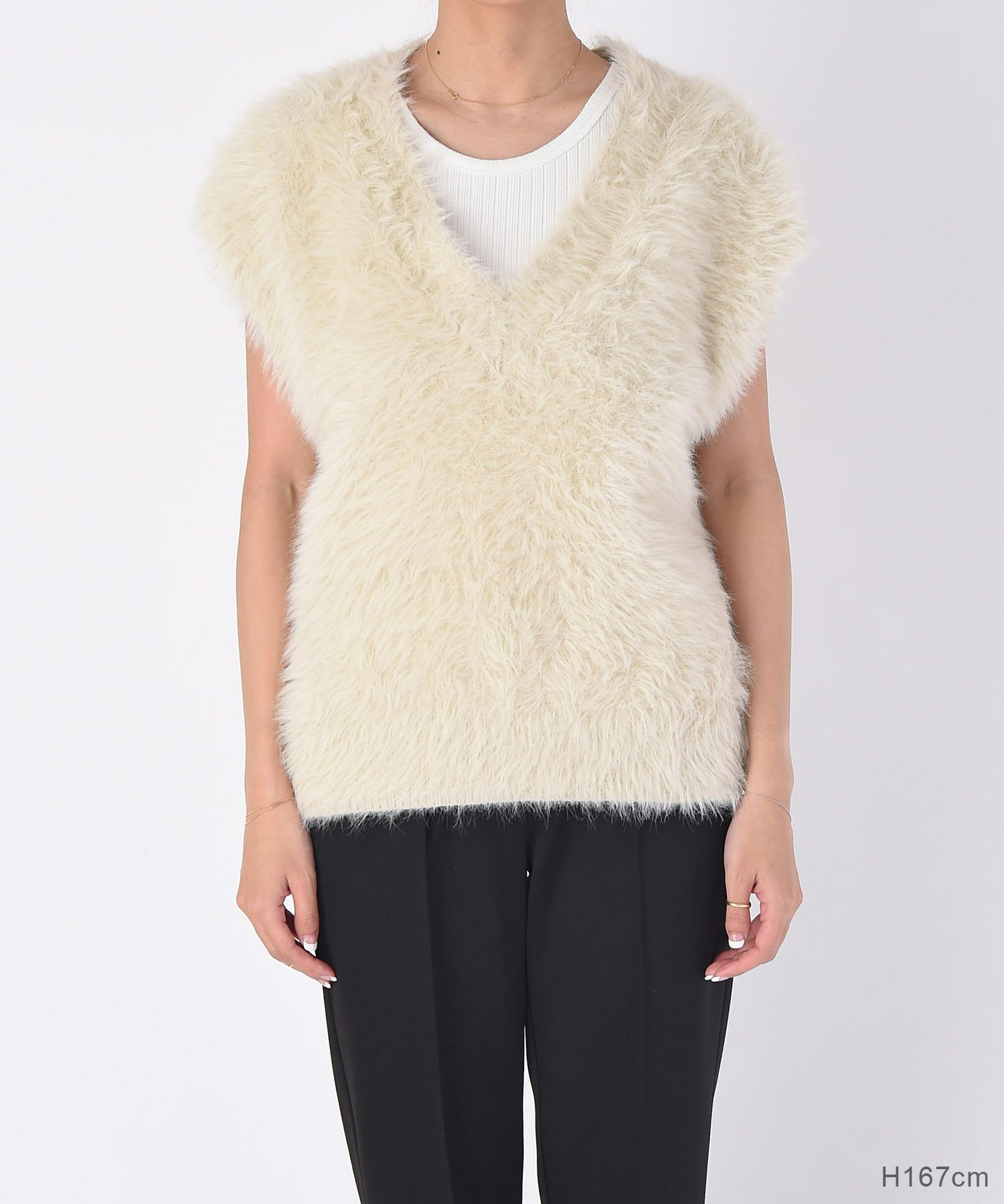 Vネックシャギーニットベスト