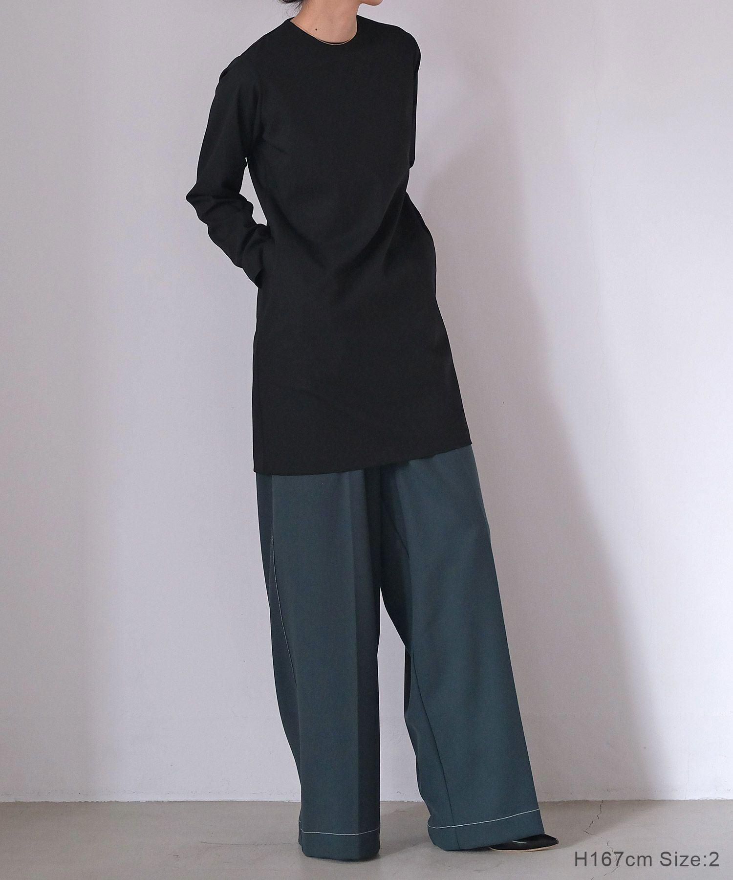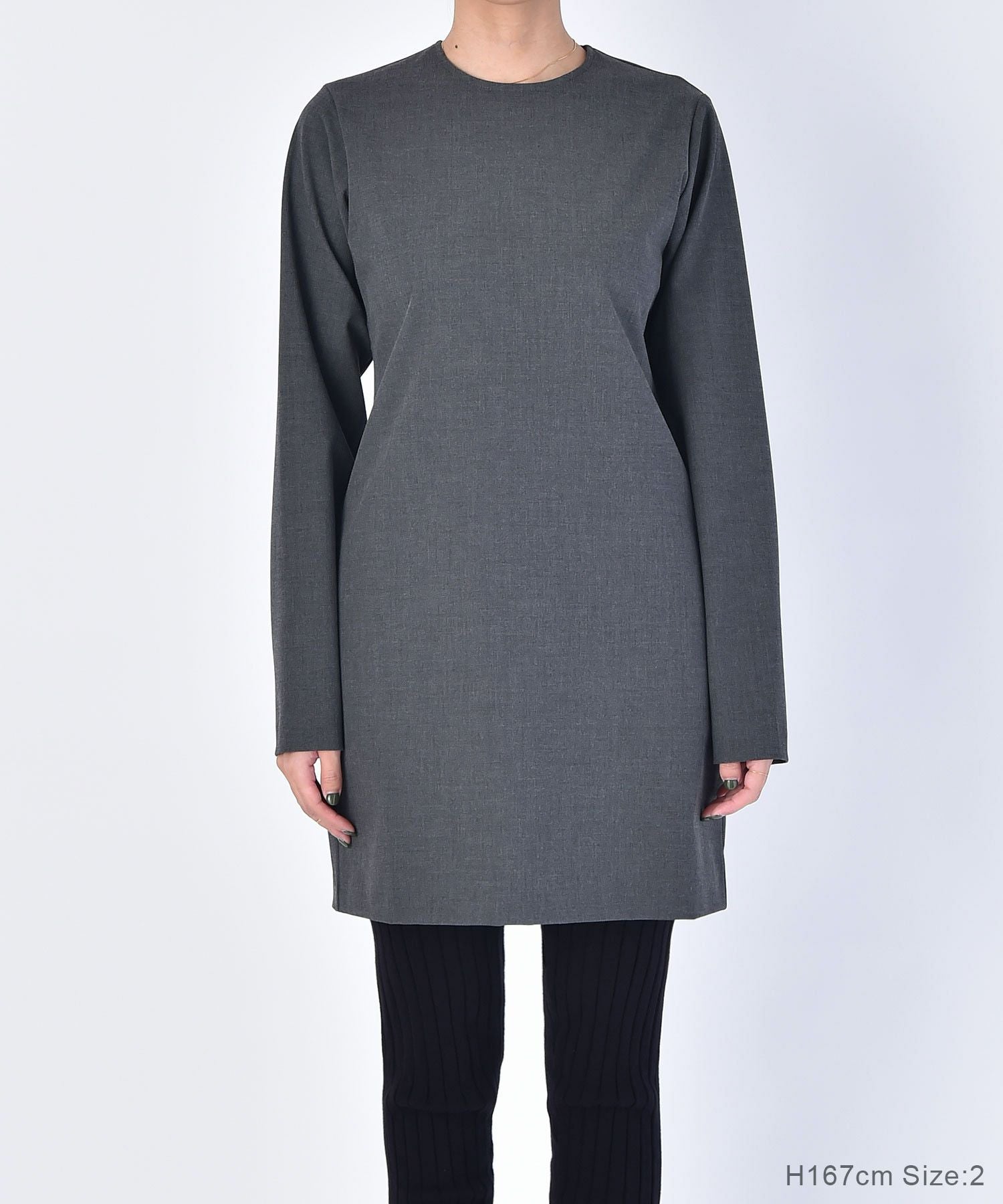 着用モデル167cm(ブラック,サイズ2) 158cm(チャコールグレー,サイズ1) 165cm(チャコールグレー,サイズ2)