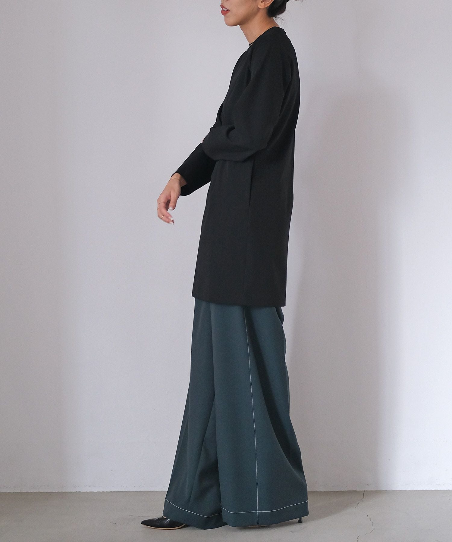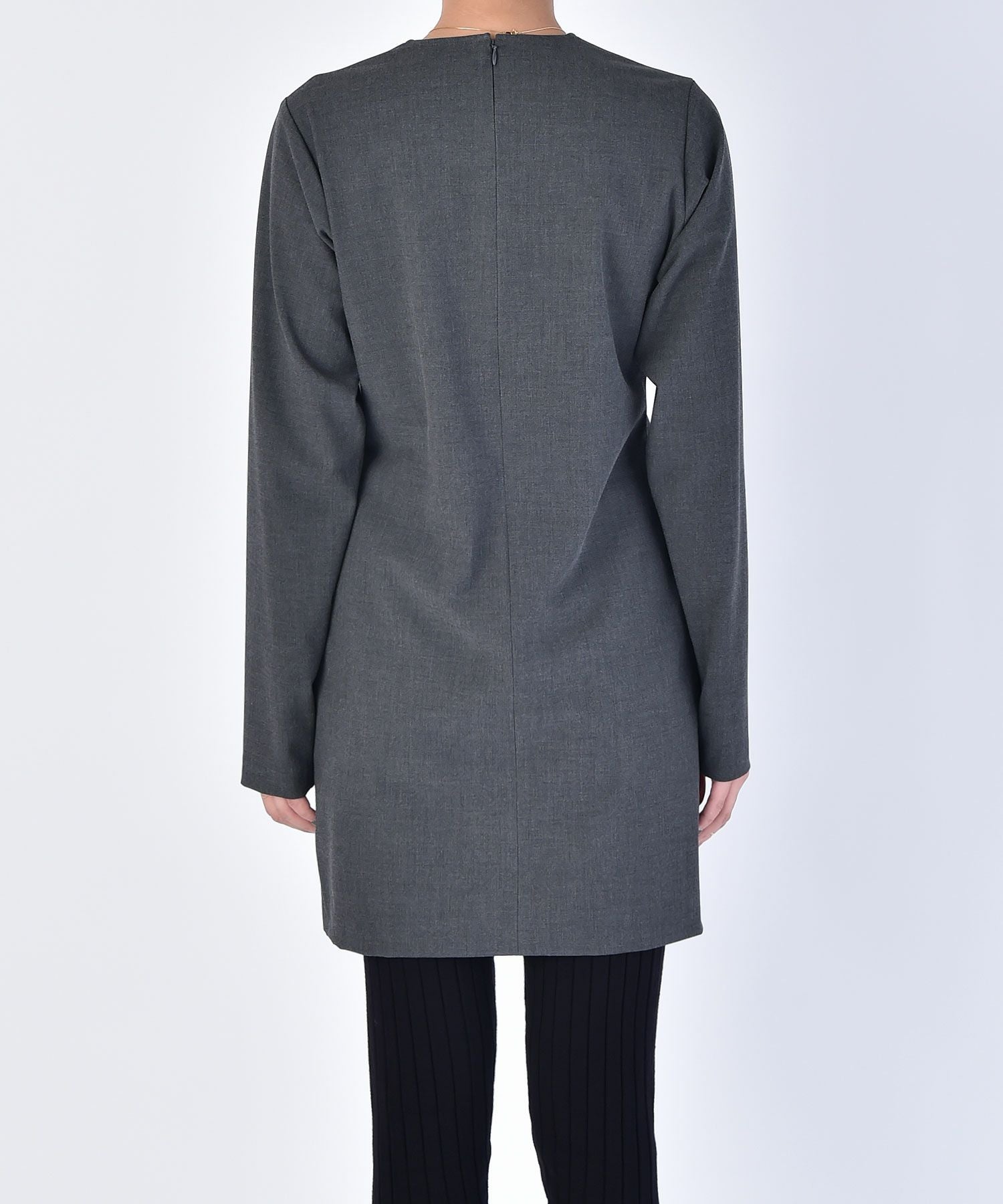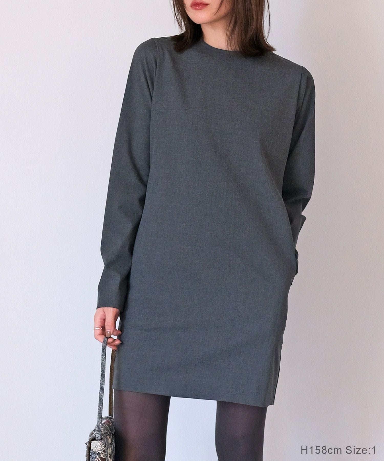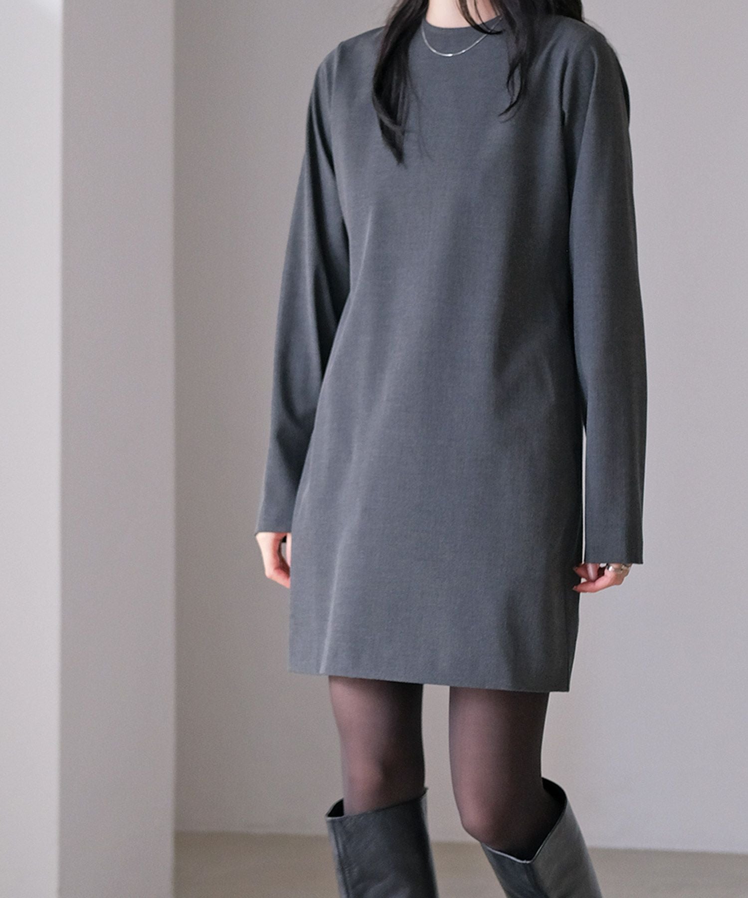 やや詰まり気味のネックラインはクラシカルかつクリーンさをプラス。