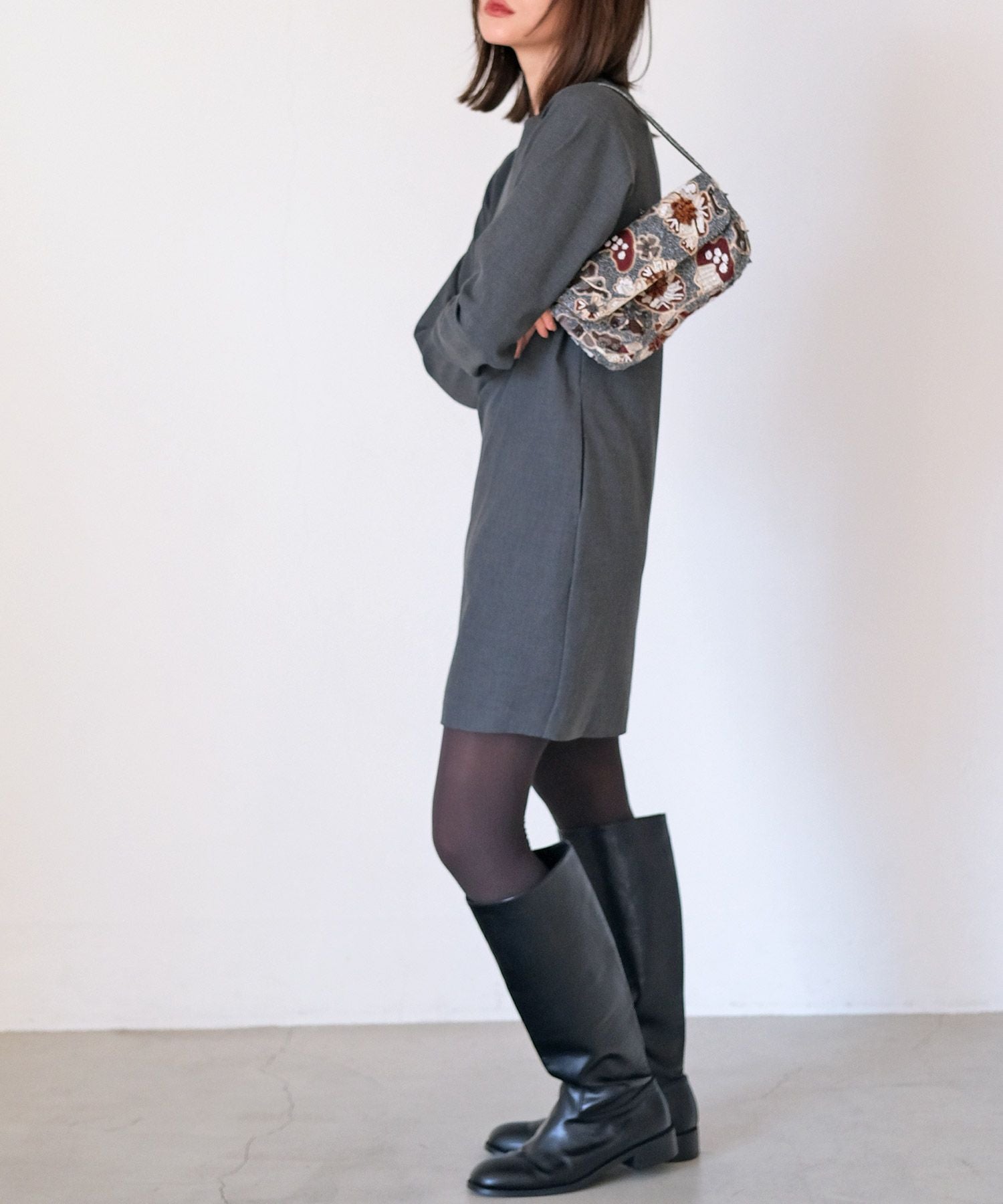 ミニ丈で可愛らしい雰囲気がありながら、コンパクトな肩周りがシャープに見せてくれます。