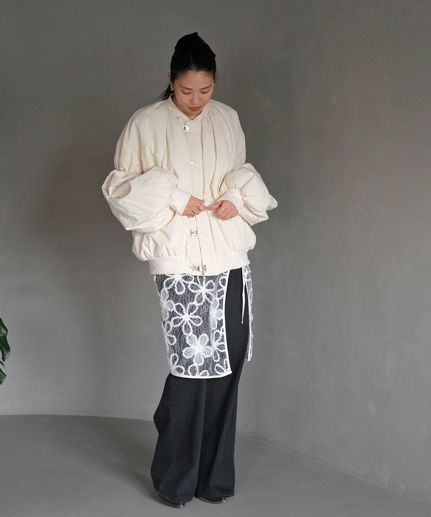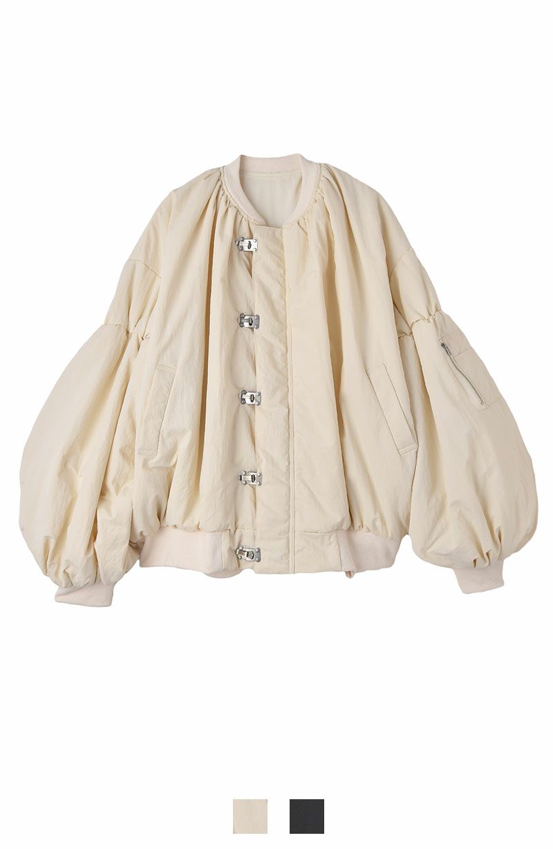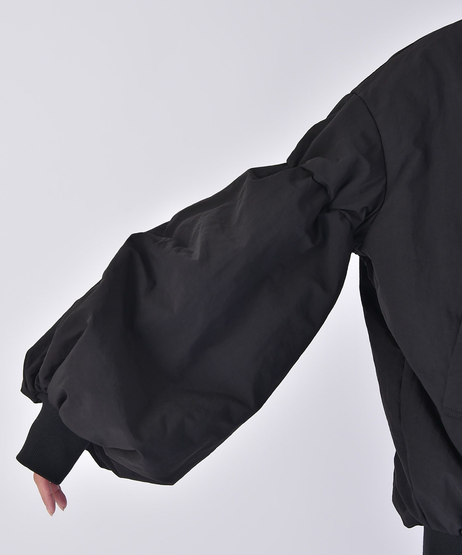 袖や裾のバルーンデザインがかわいらしく、ナイロンブルゾンのカジュアルな印象だけでなく、女性らしい雰囲気も与えてくれます。