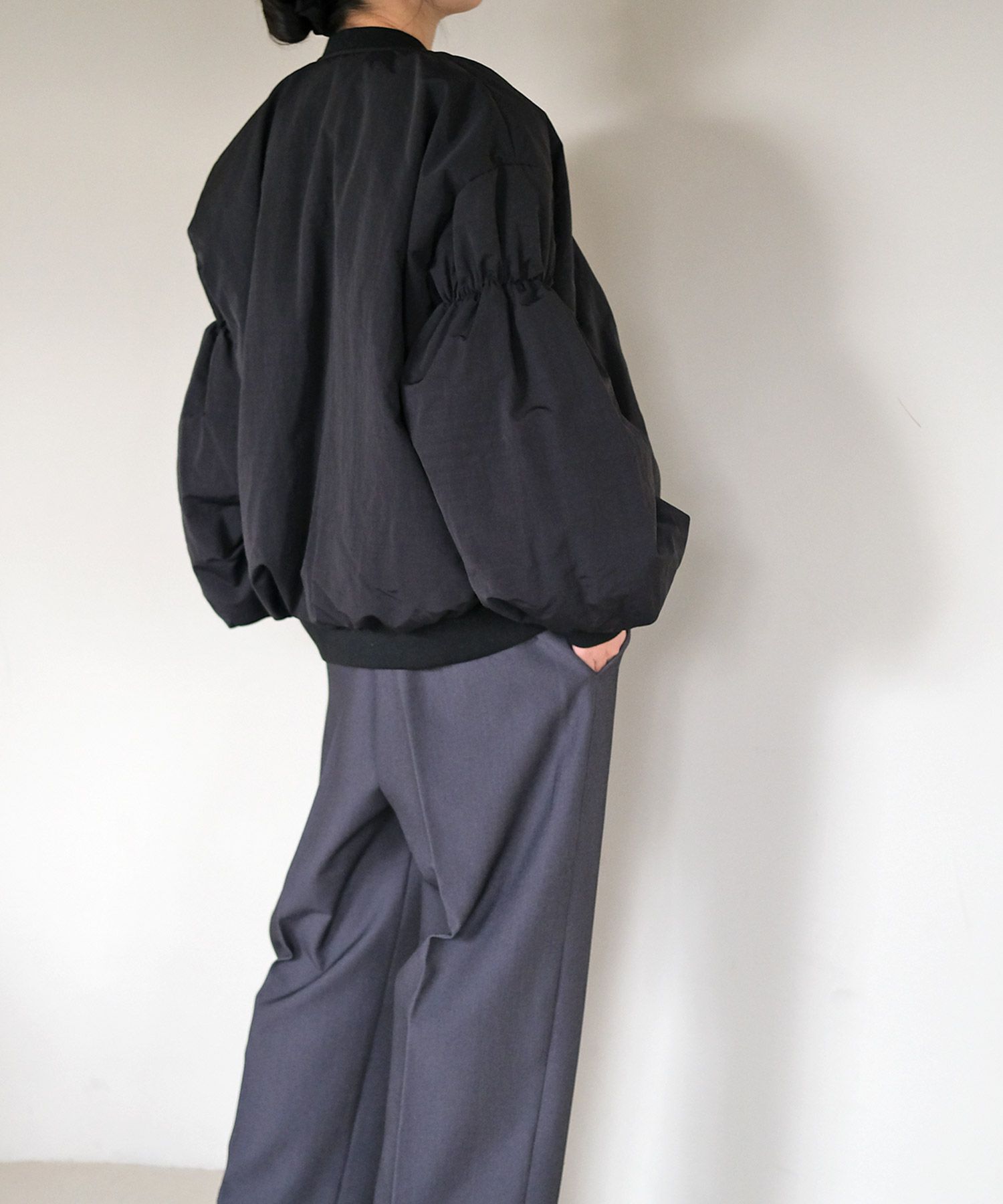 たっぷりのギャザーとボリュームシルエットが、抜け感と華やかさを兼ね備えた大人なナイロンブルゾン。