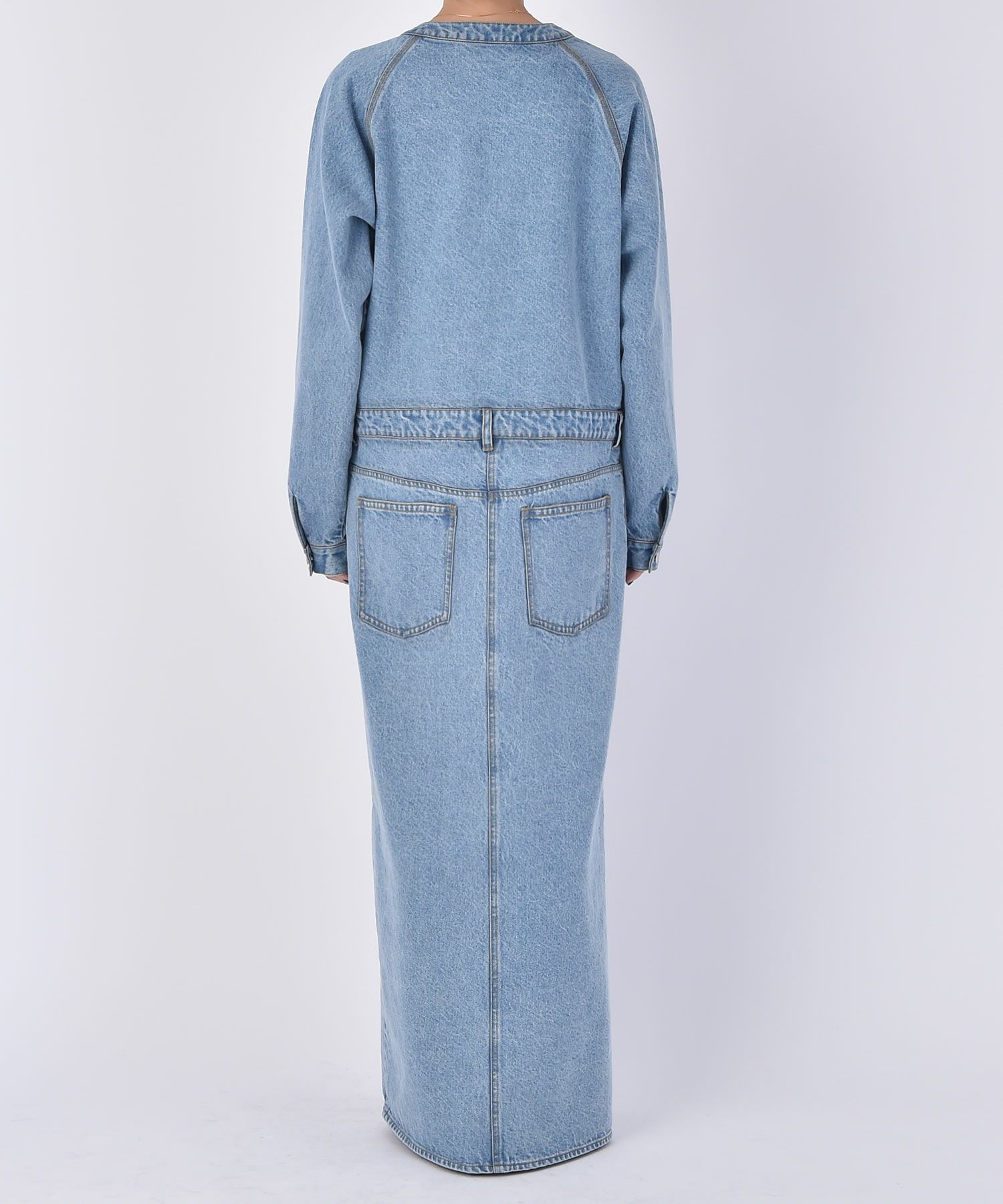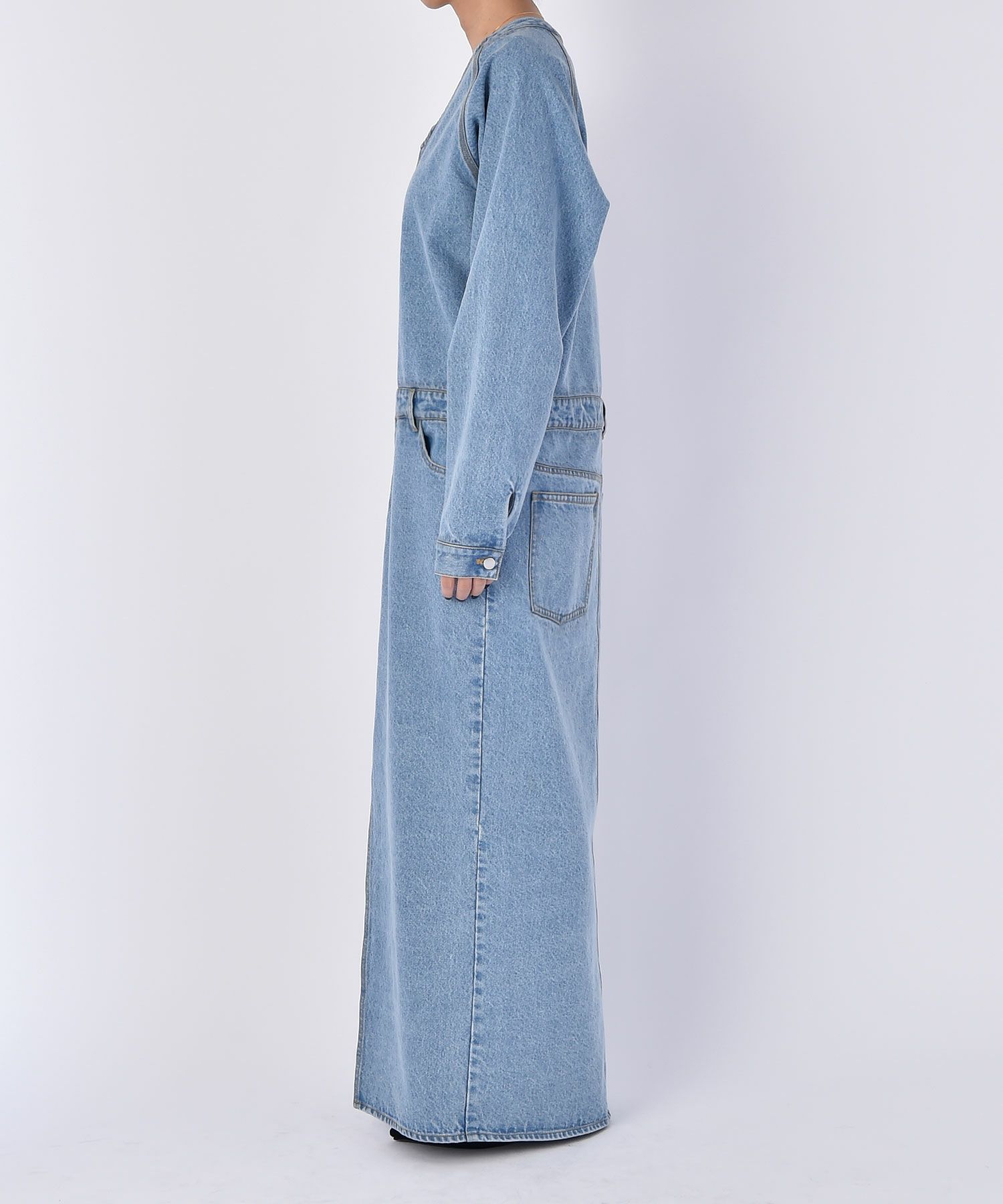 カジュアルなデニム素材と女性らしいIラインシルエットが絶妙なバランスのワンピース。