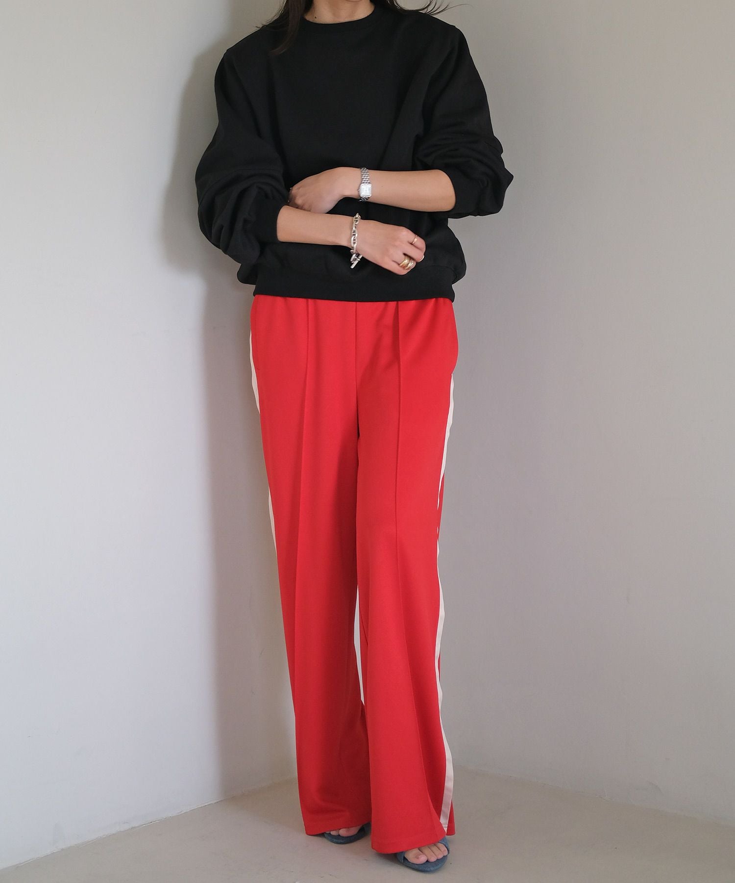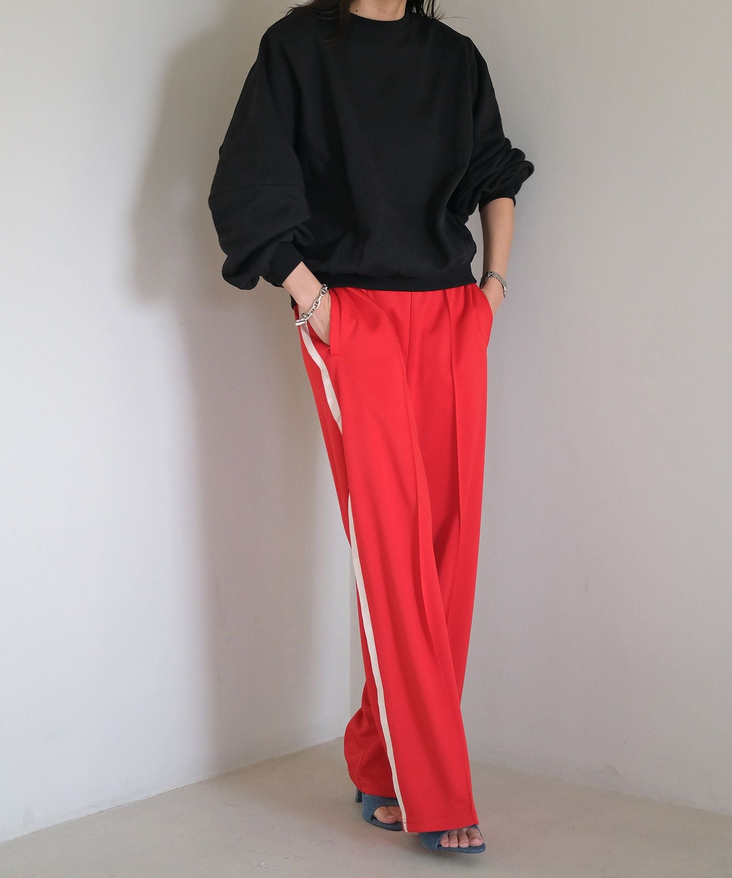 ボトムスを選ばない万能さで、デニムはもちろんスラックスなどのキレイめアイテムとの相性も抜群です。