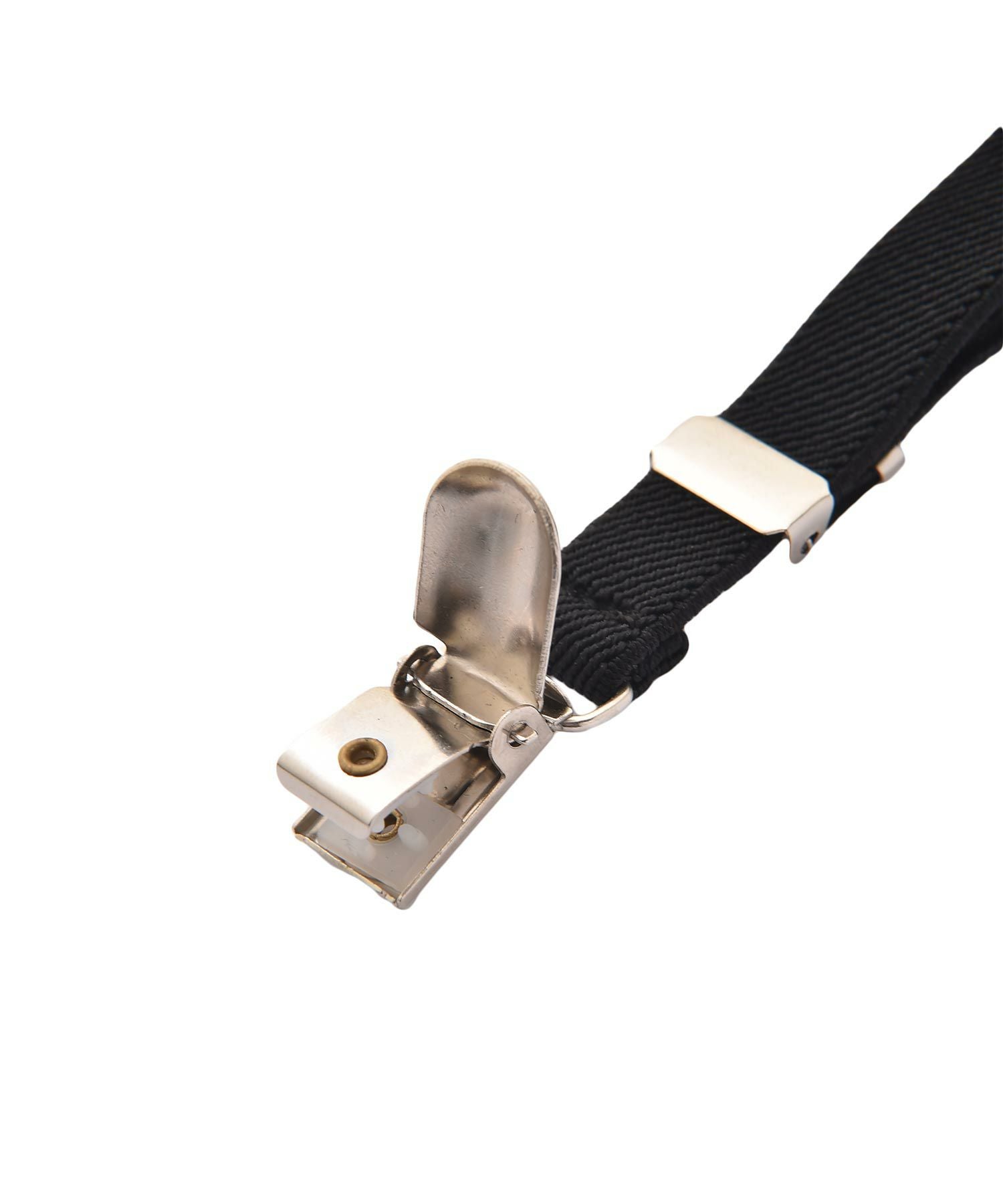 パールがいつものコーディネートに華やかさを与えてくれるサスペンダー。