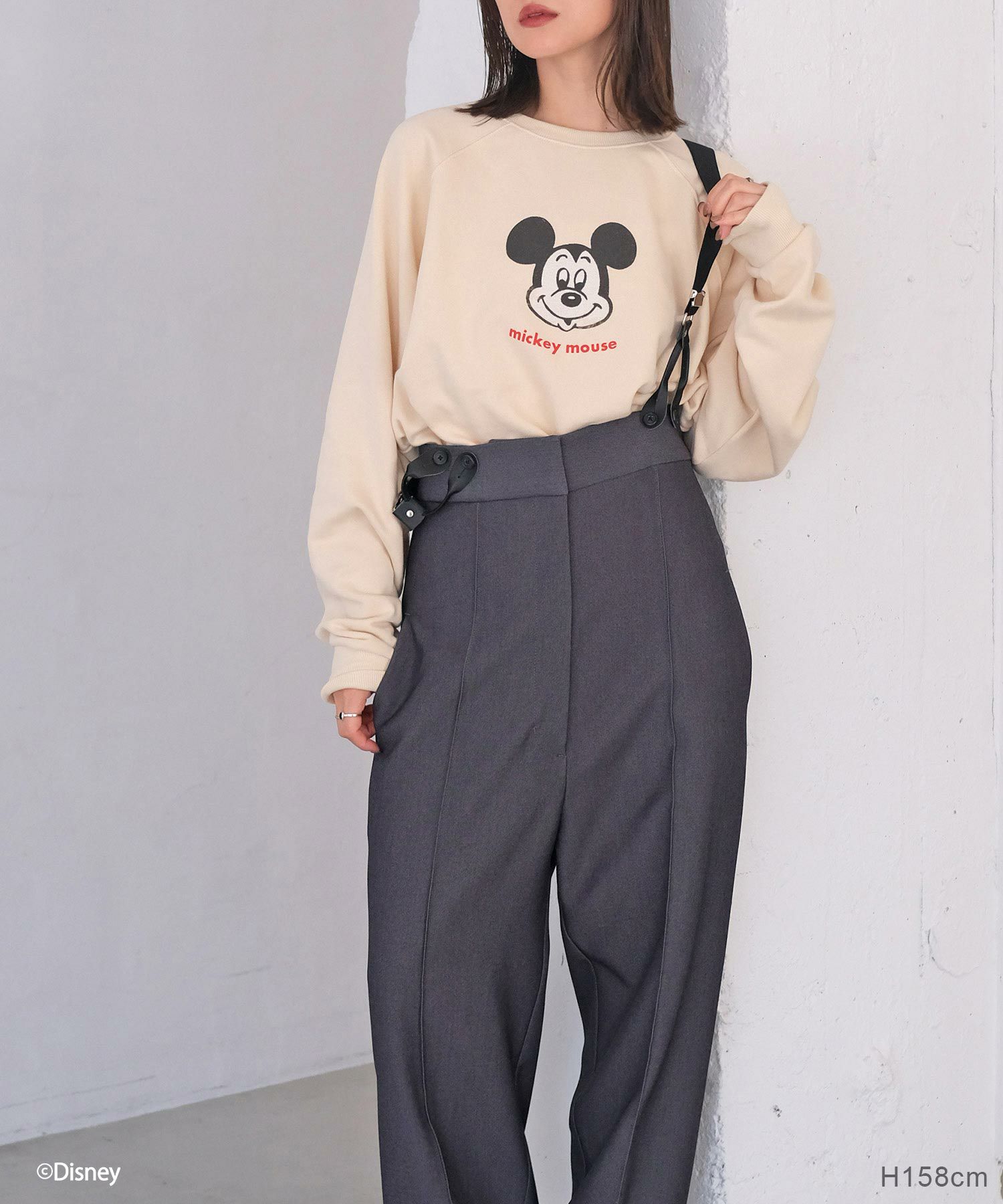フロントにミッキーマウスのプリントを施した、遊び心溢れるスウェットプルオーバー。