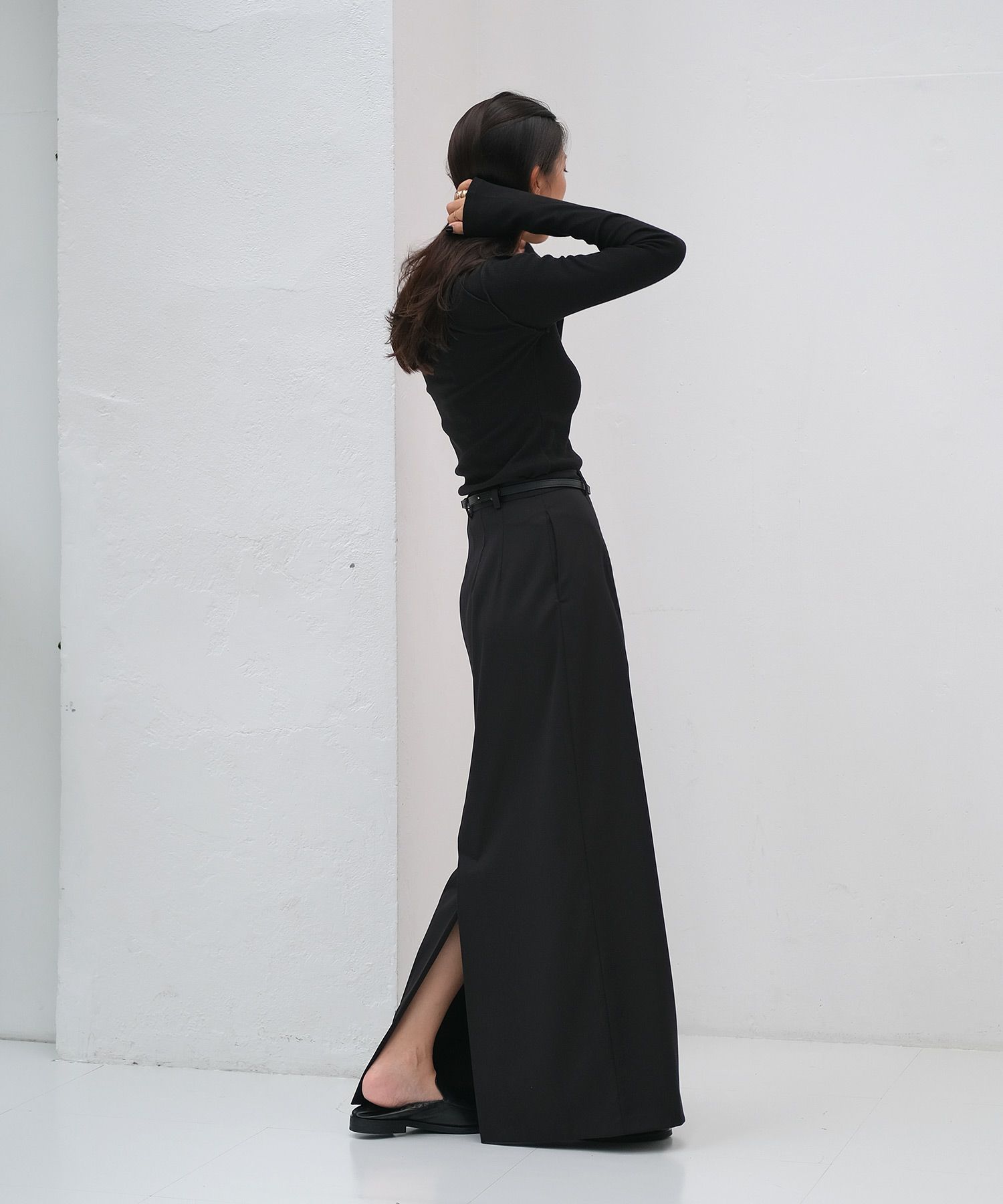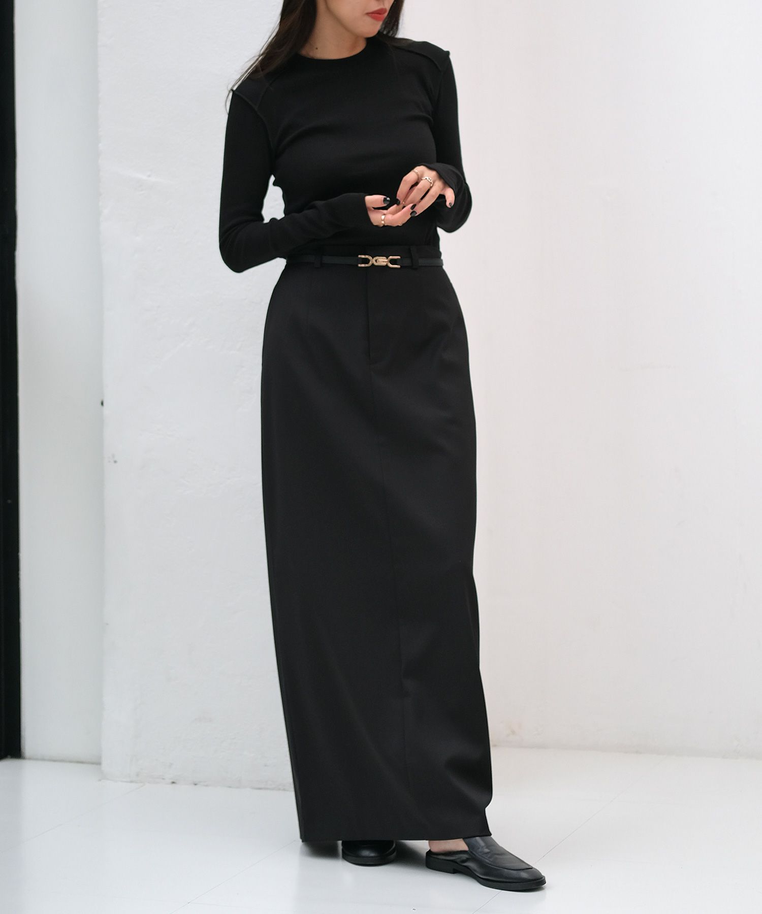 無駄のないミニマルなデザインと計算されたタイトシルエットで大人見えの叶うIラインスカート。