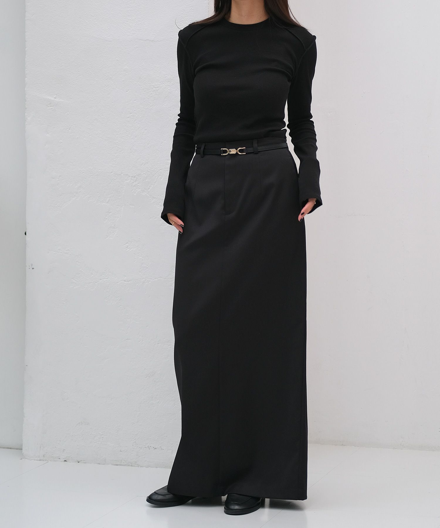 上品な生地と長めの丈感が大人にこなれるナロースカート