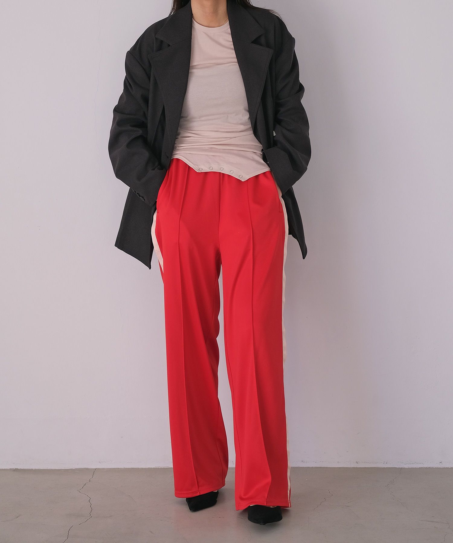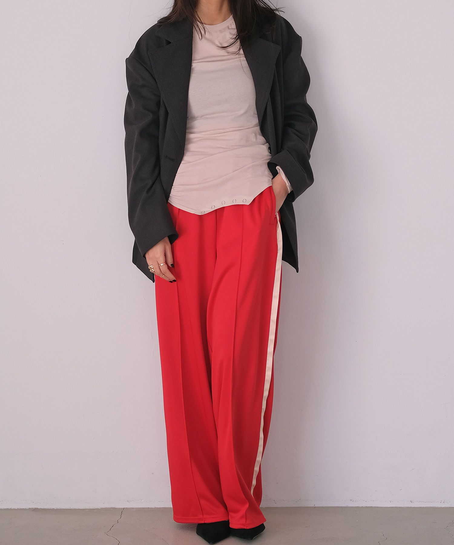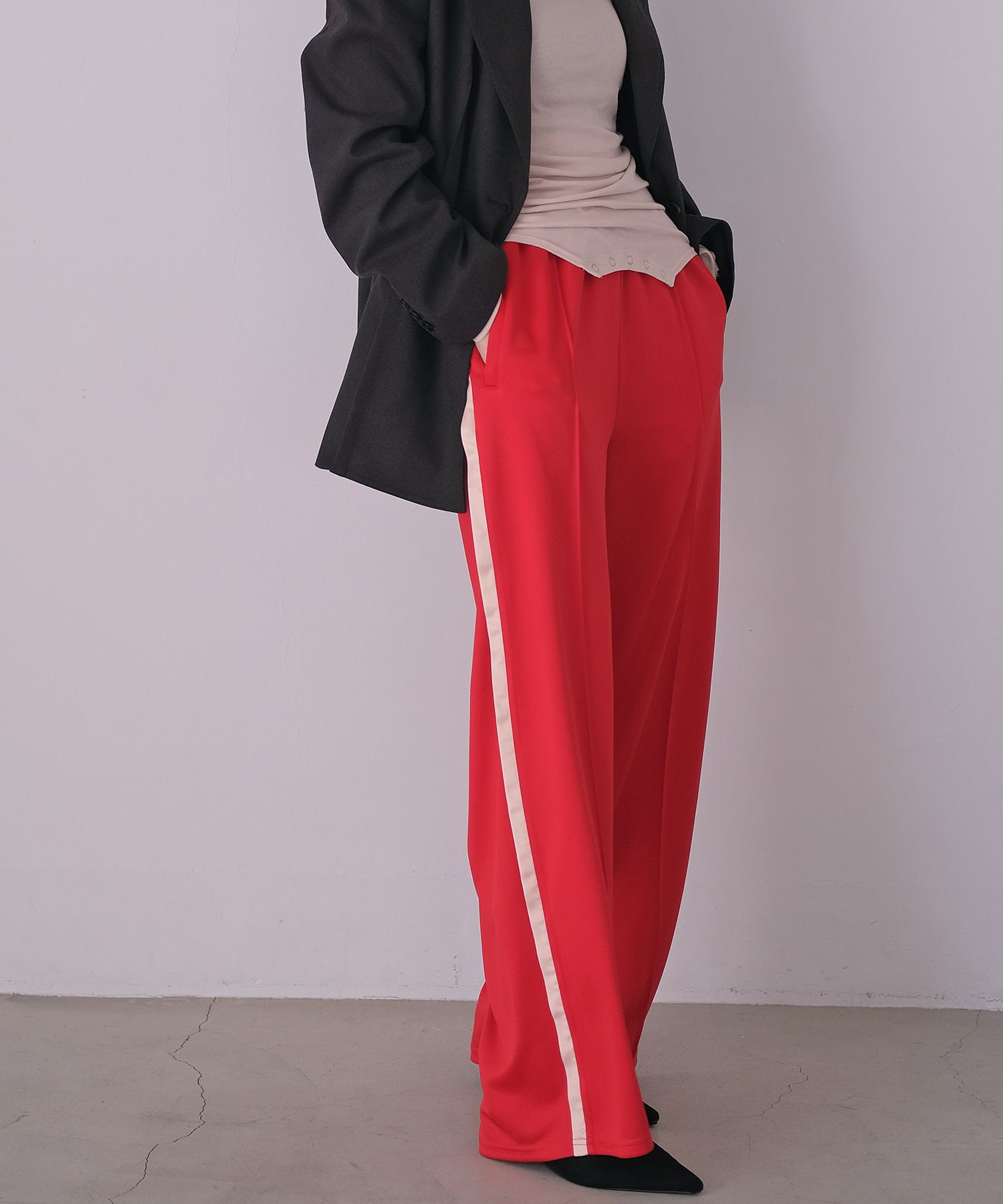 サテンのサイドラインで上品さをプラスしたトラックパンツ