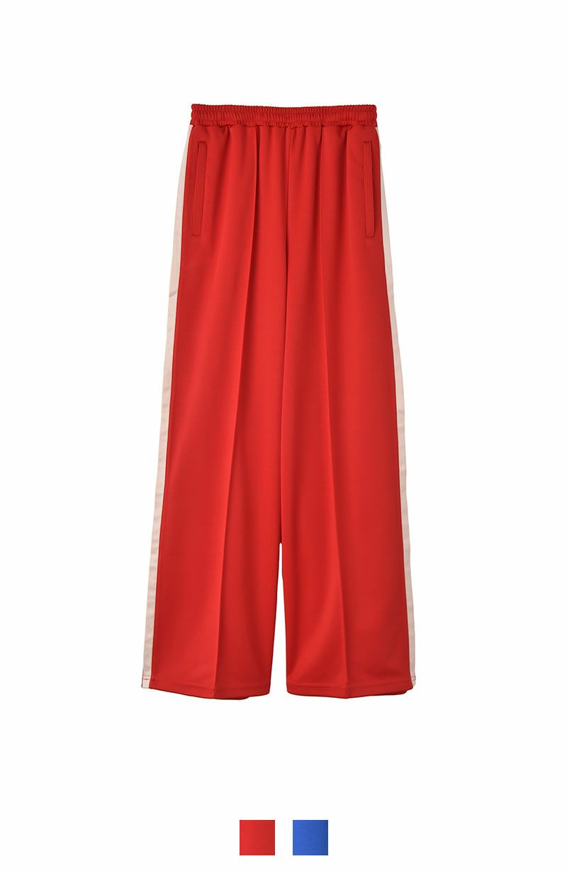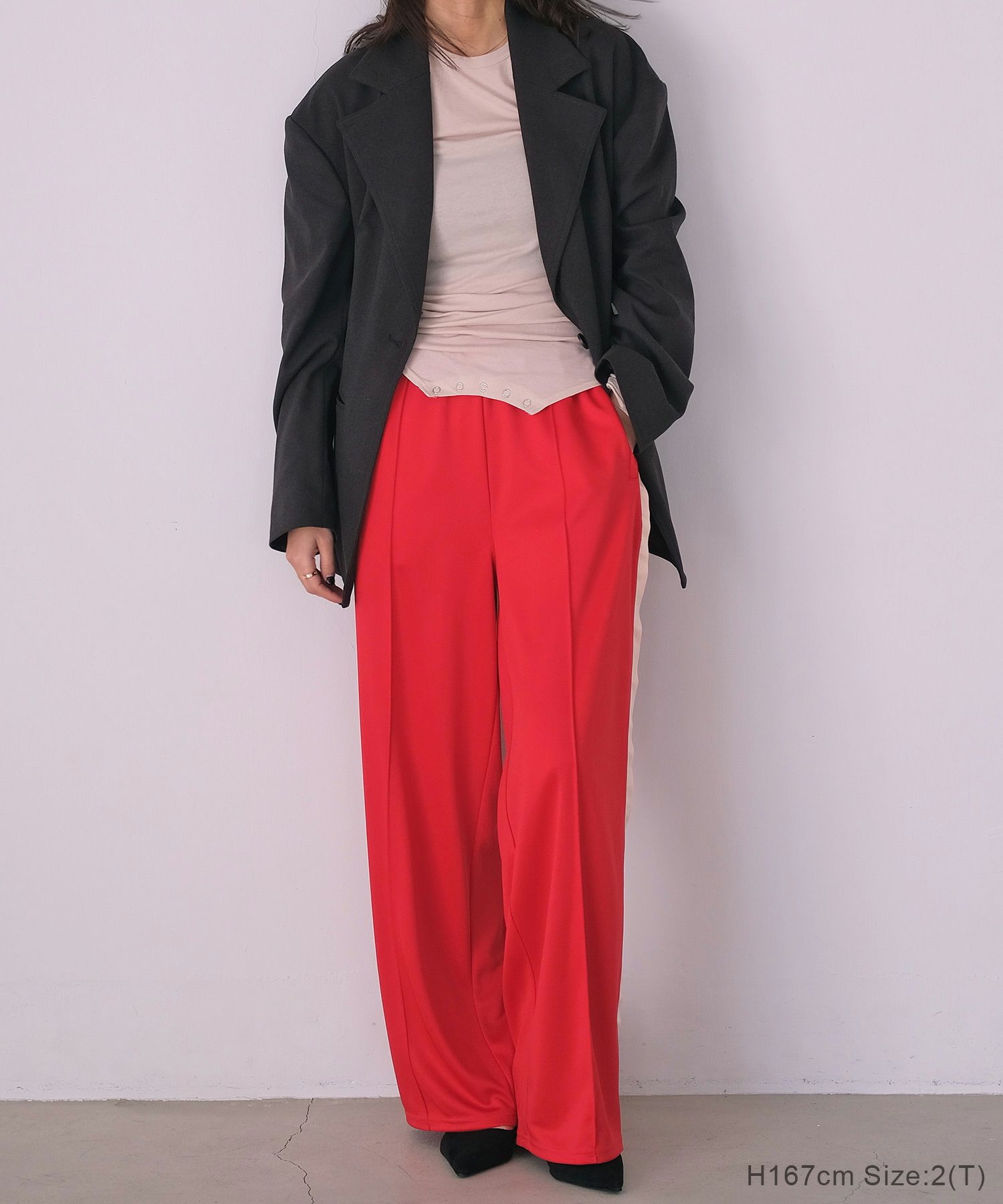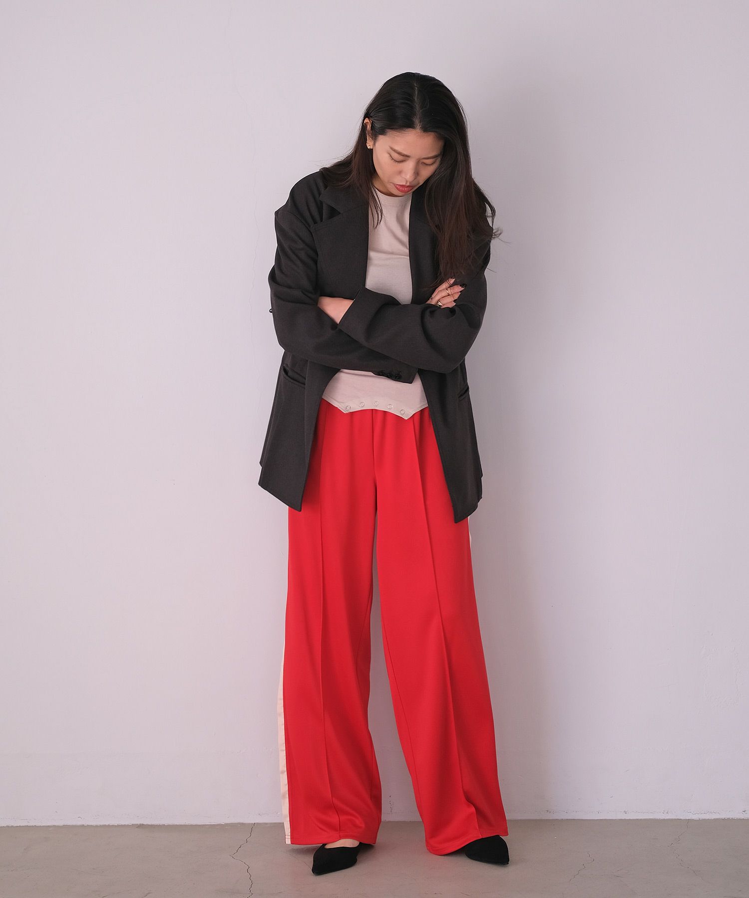 サテンのサイドラインで上品さをプラスしたトラックパンツ