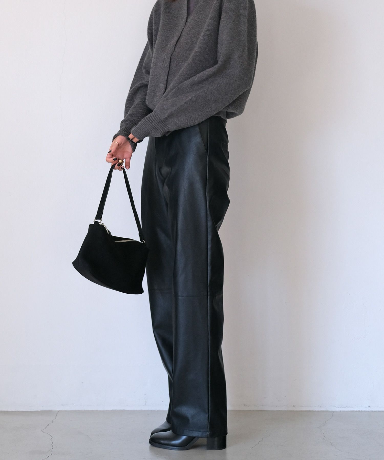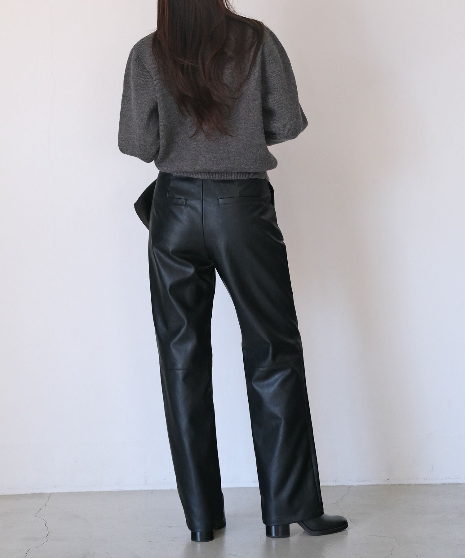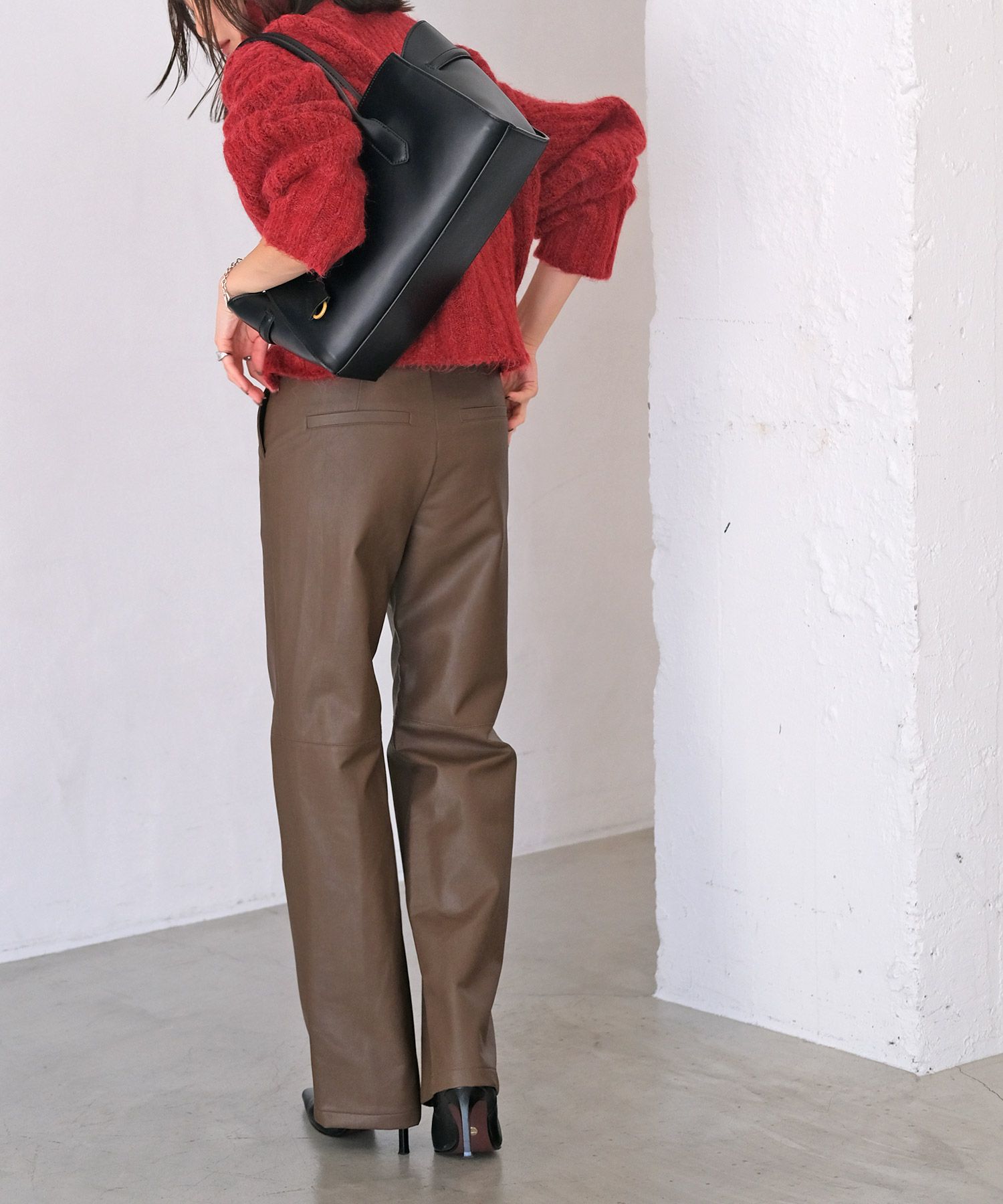 スタイリングにアクセントを加える、美シルエットが叶うフェイクレザーパンツ