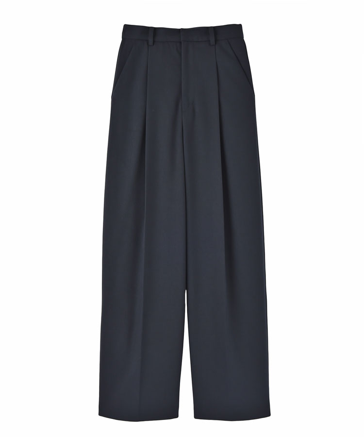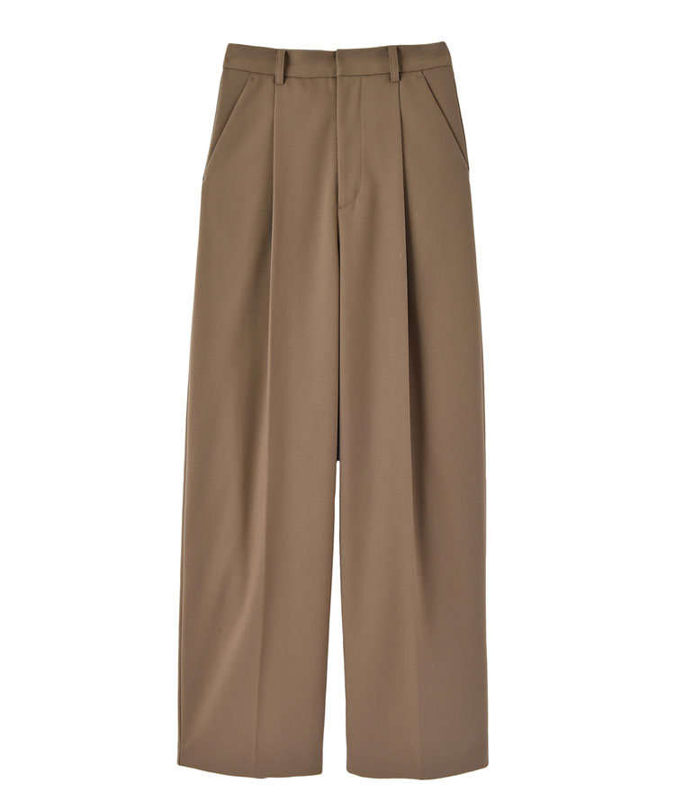 フロントタックでボリュームを出しつつ、裾にかけて自然に細くなるテーパードラインがゆるさの中にもすっきりとした印象を与えてくれます。