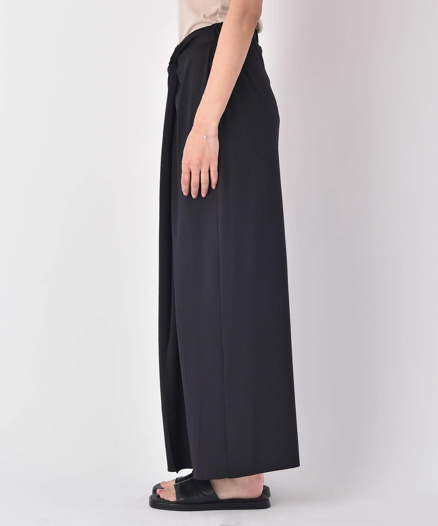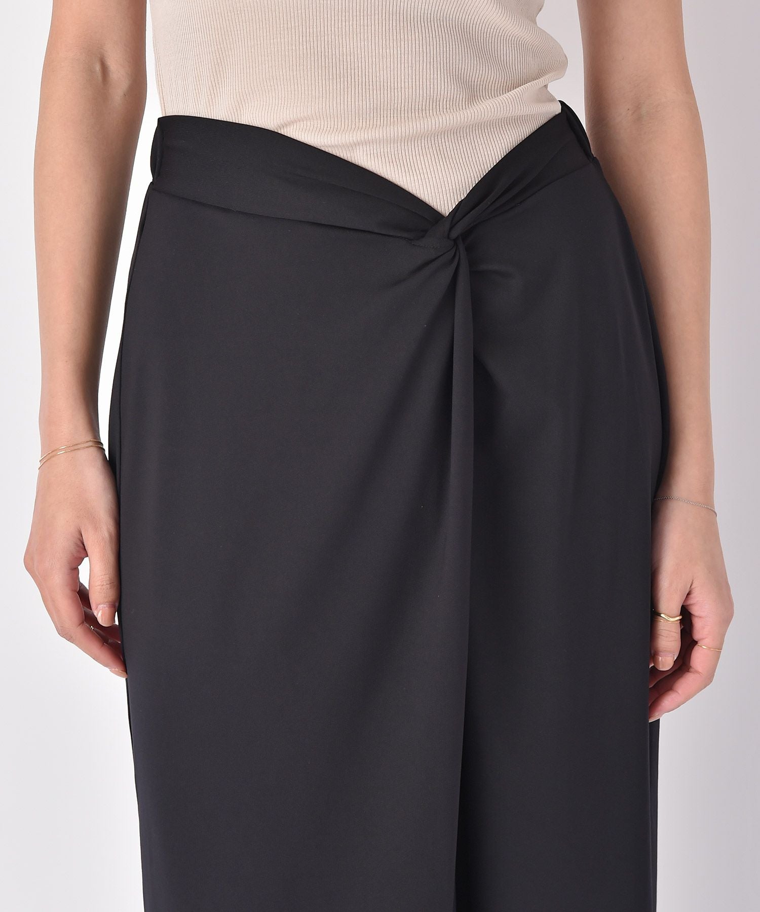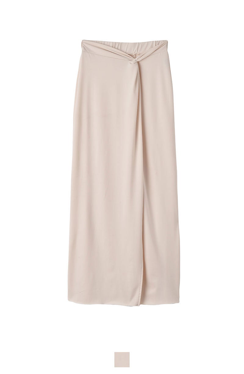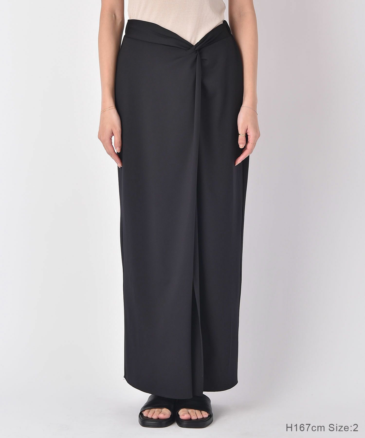 フロントのツイストデザインがアクセントになるIラインスカート。