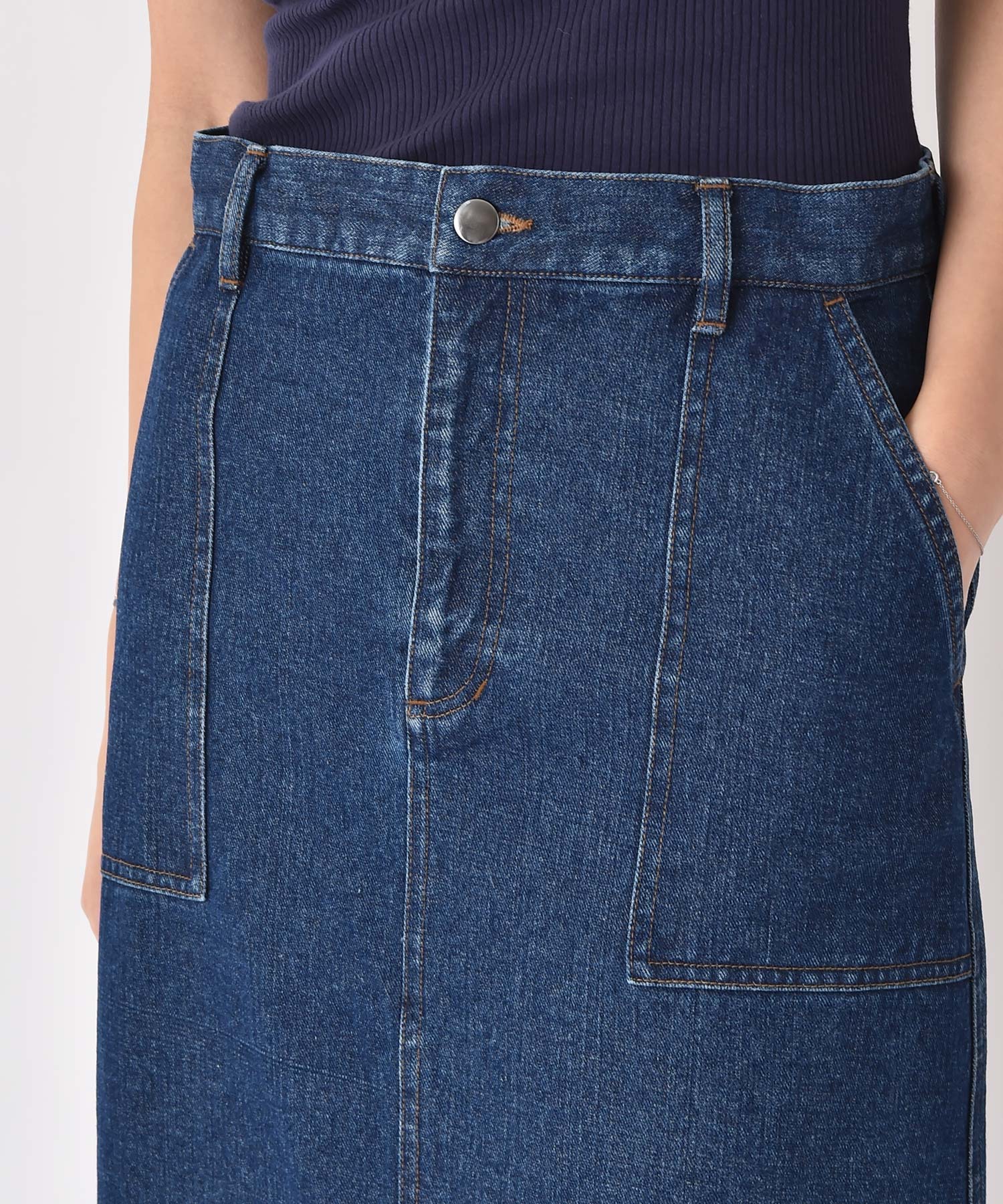 ポケット周りもステッチワークで表情をつけ、シンプルながらもアクセントに。