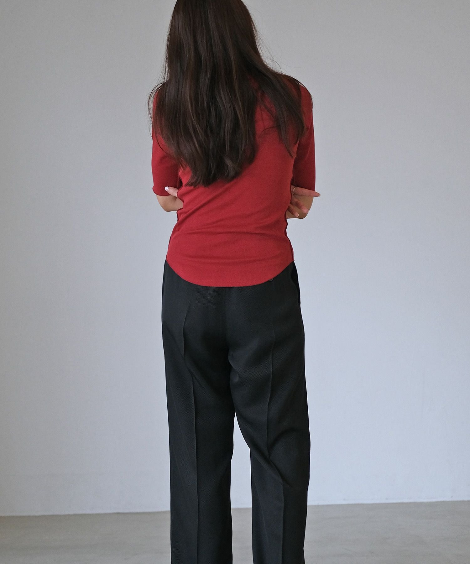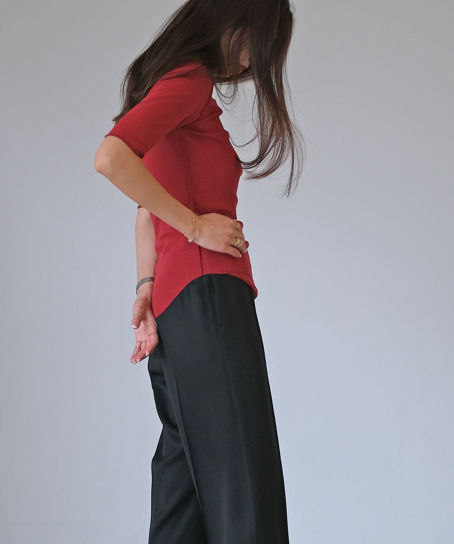 詰まったクルーネックと五分袖が、上品さとクリーンさをプラスし、大人のデイリーユースに活躍します。