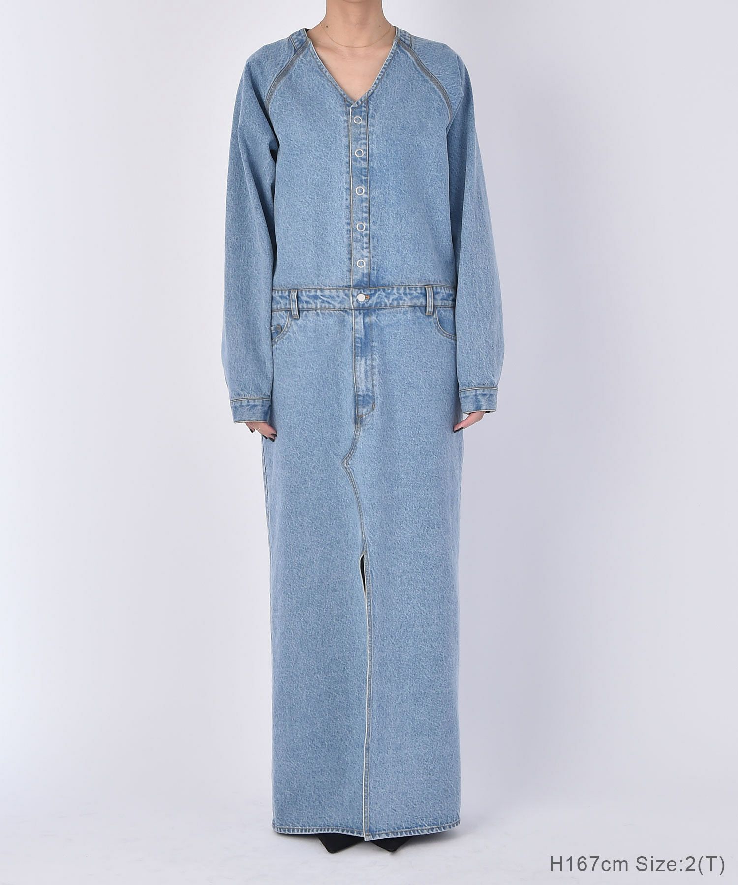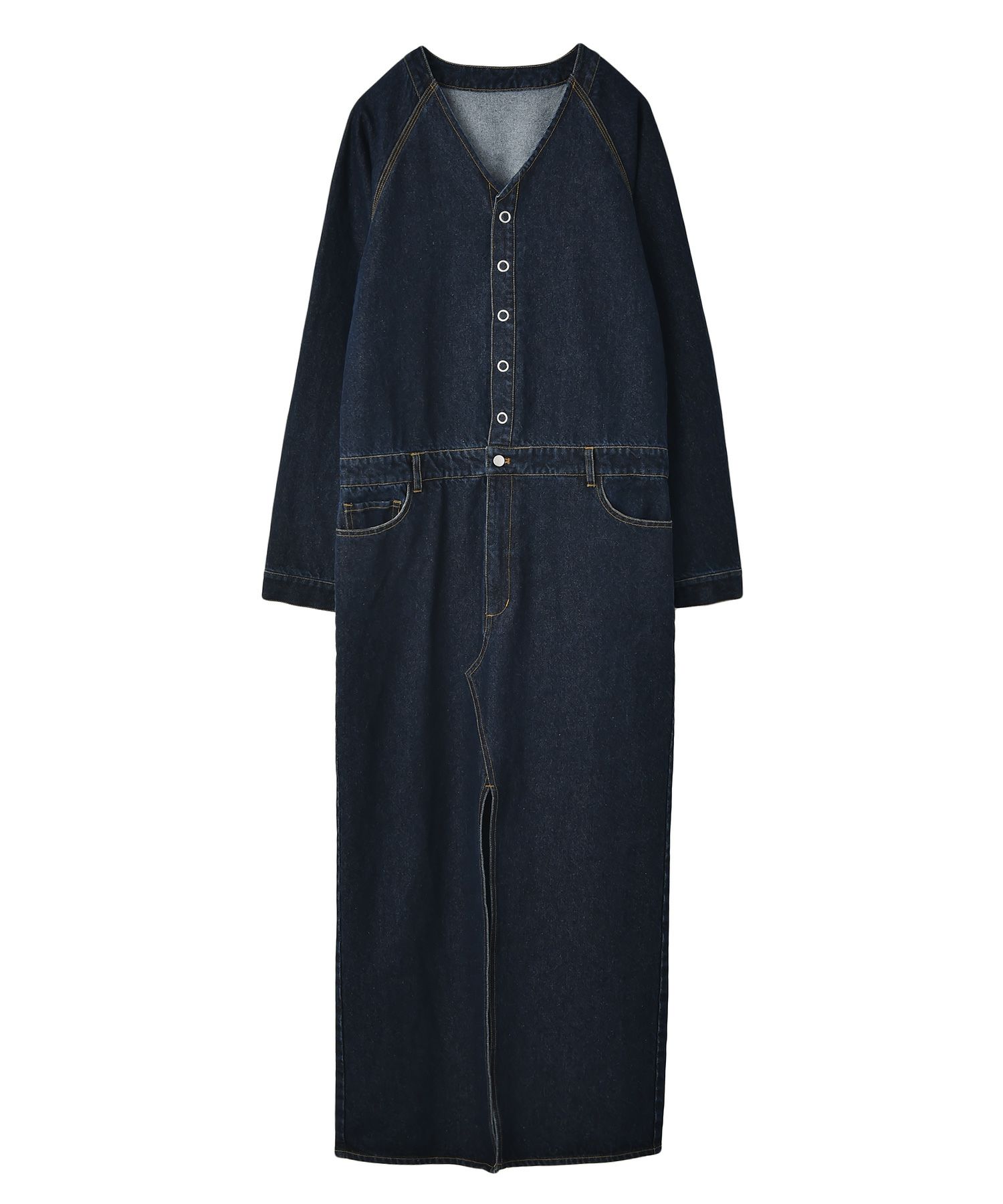 カジュアルなデニム素材と女性らしいIラインシルエットが絶妙なバランスのワンピース。