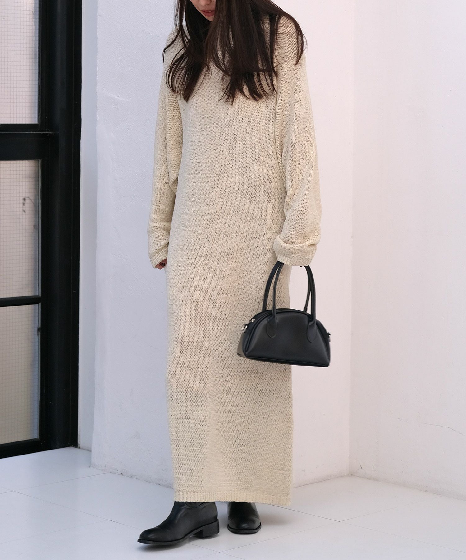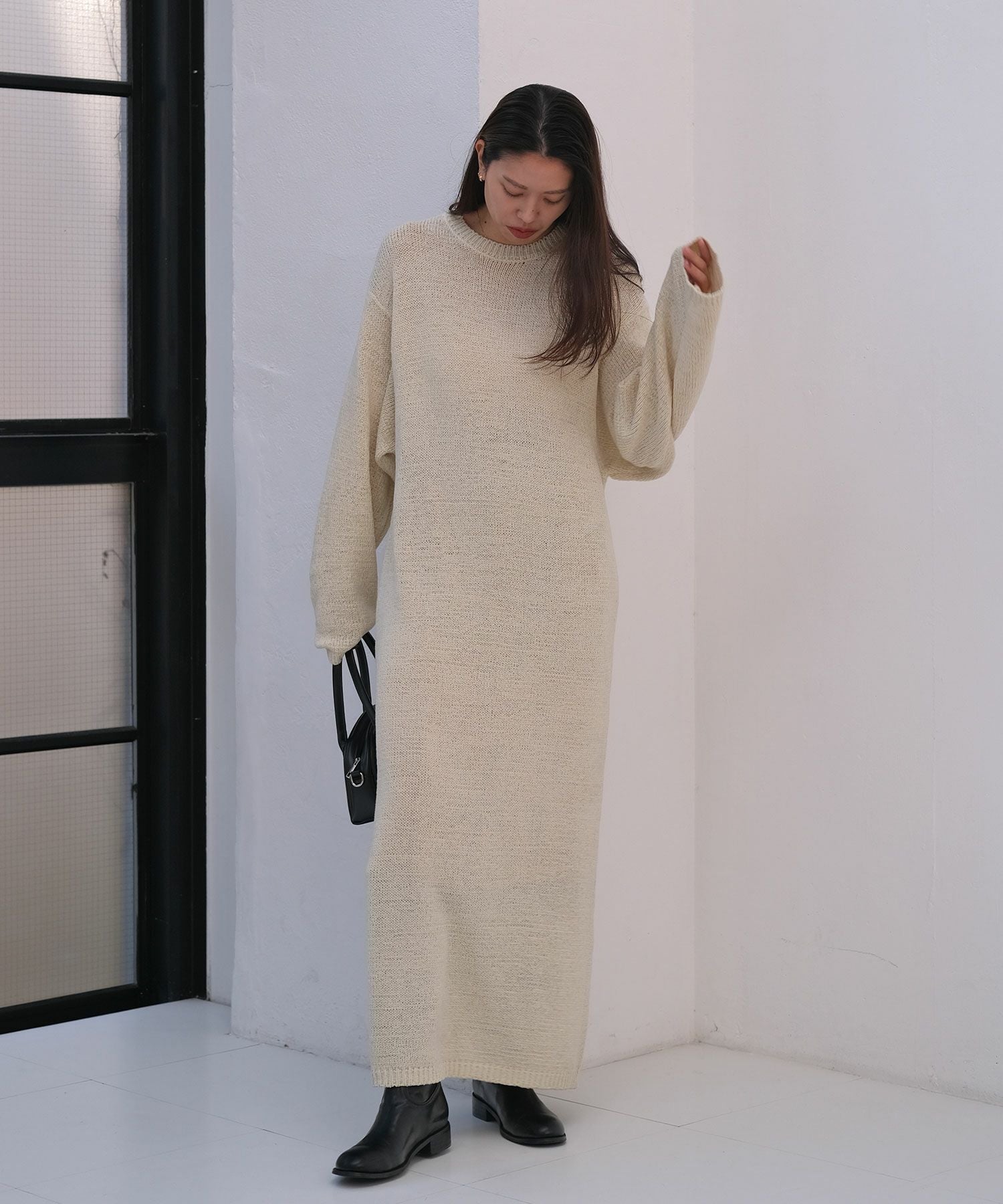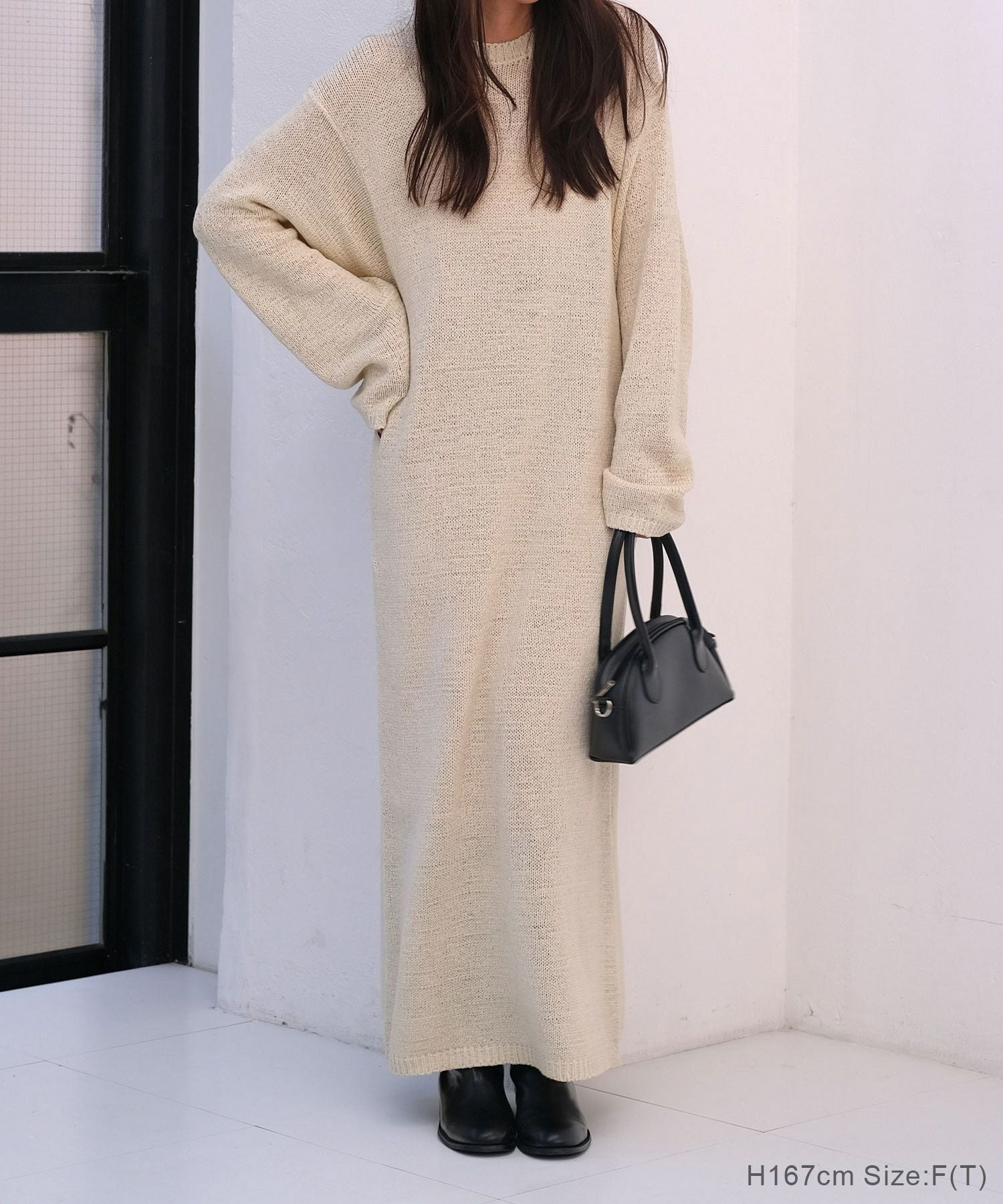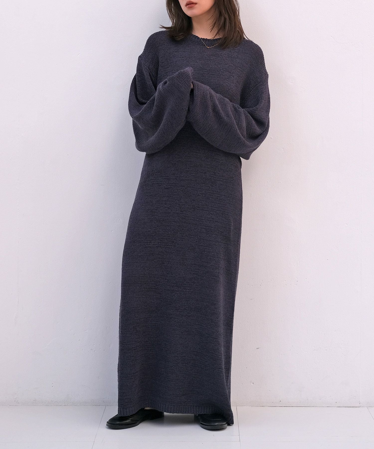 表情のある糸で仕上げたリラックス感のあるニットワンピース