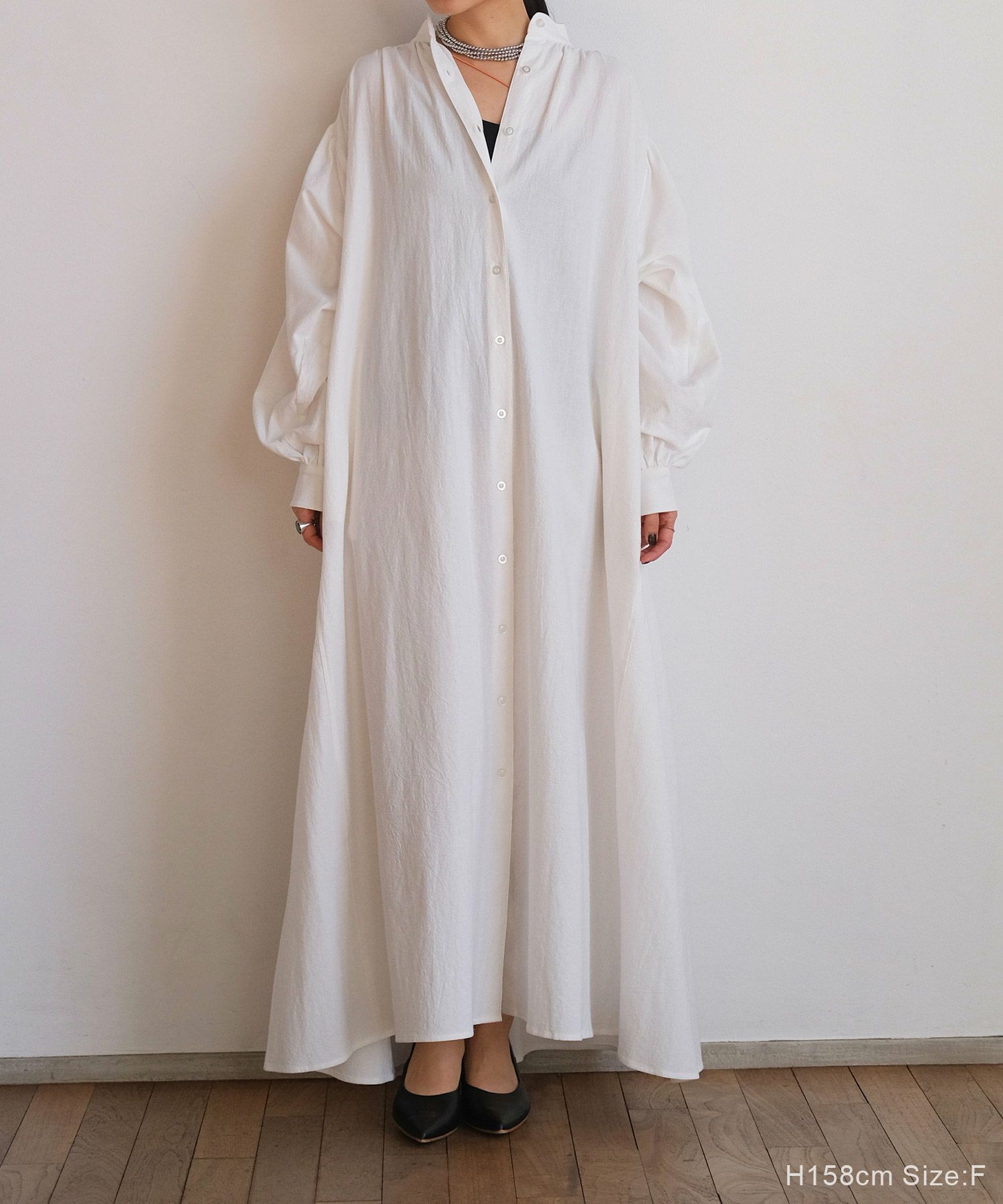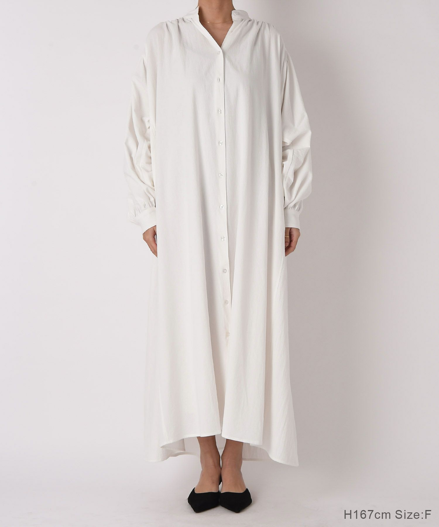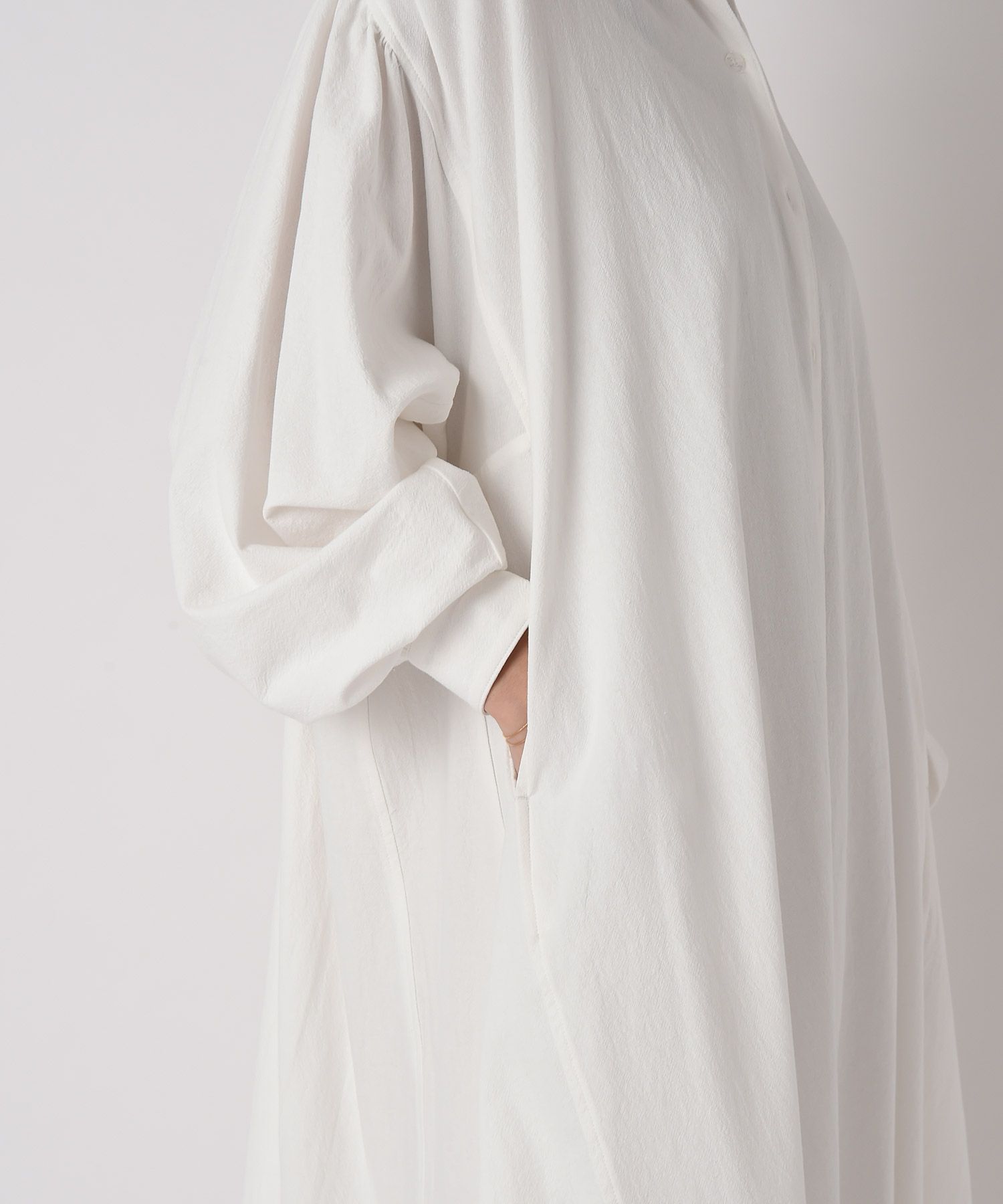 贅沢なボリュームと空気を含んだような膨らみが女性らしいリラックスさを演出してくれる大人のシャツワンピース