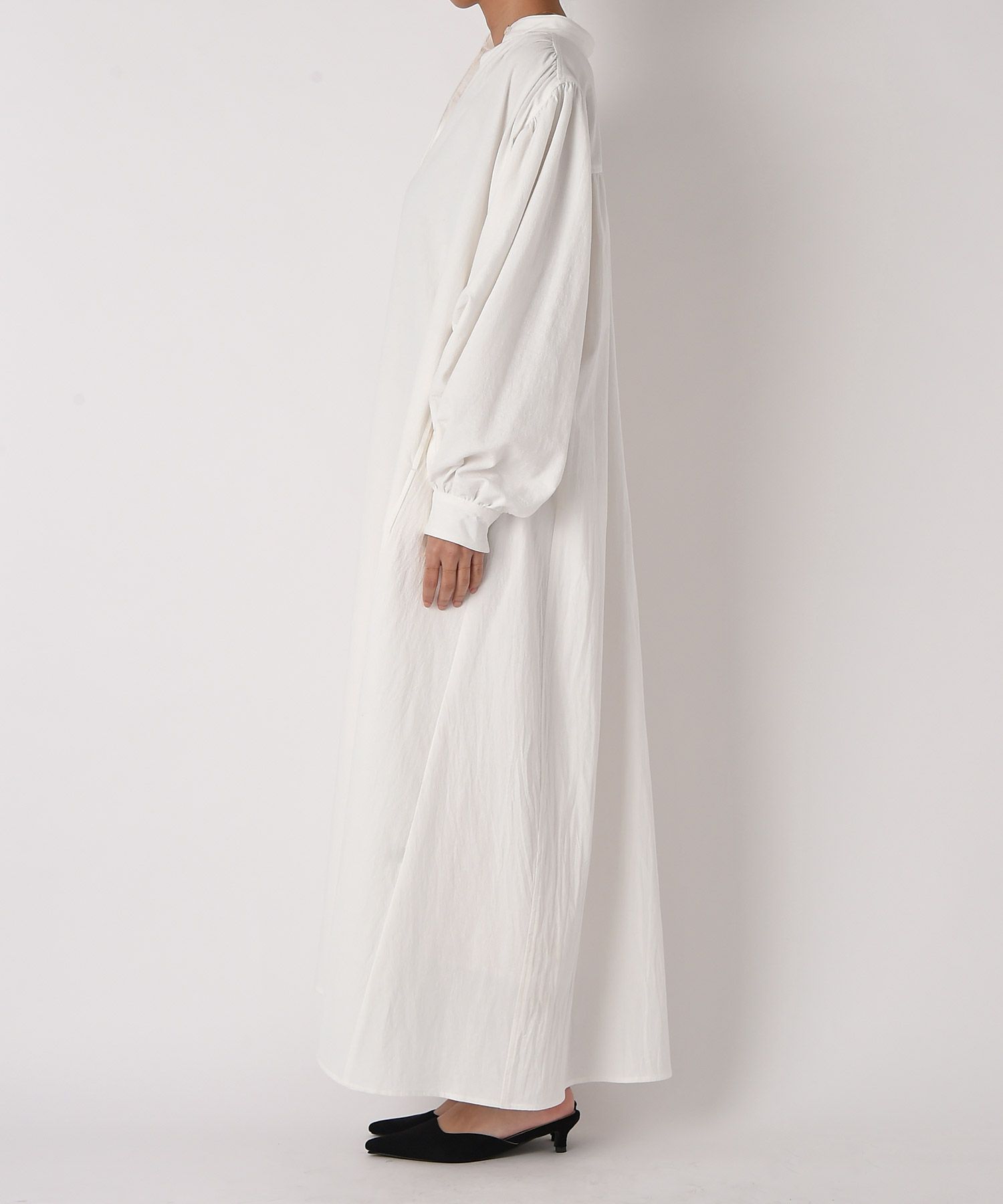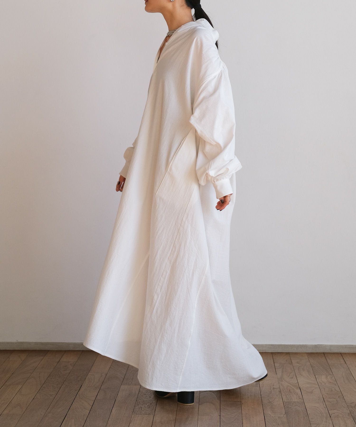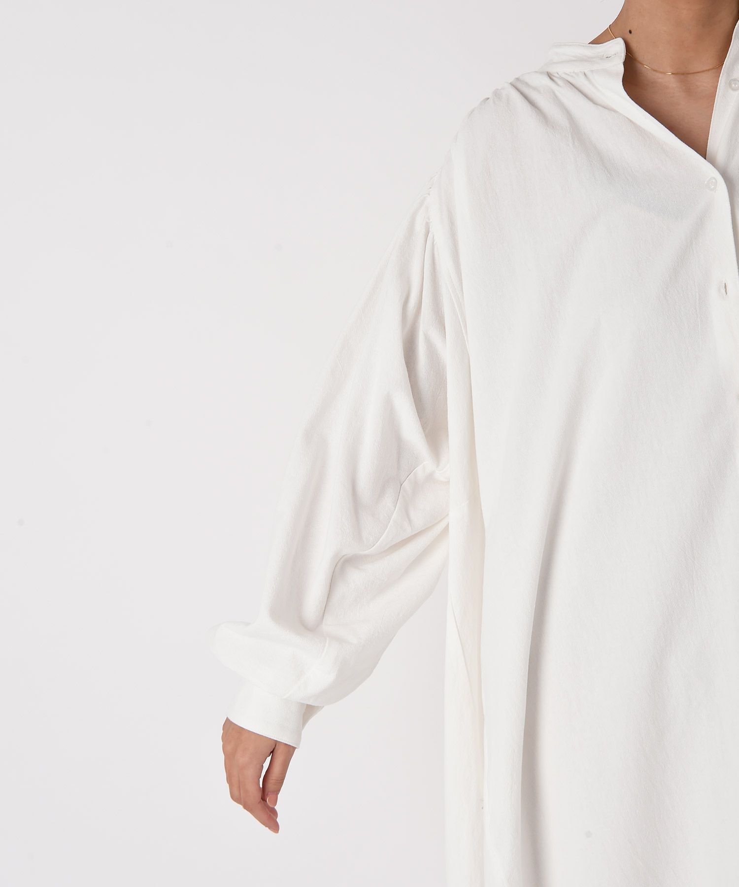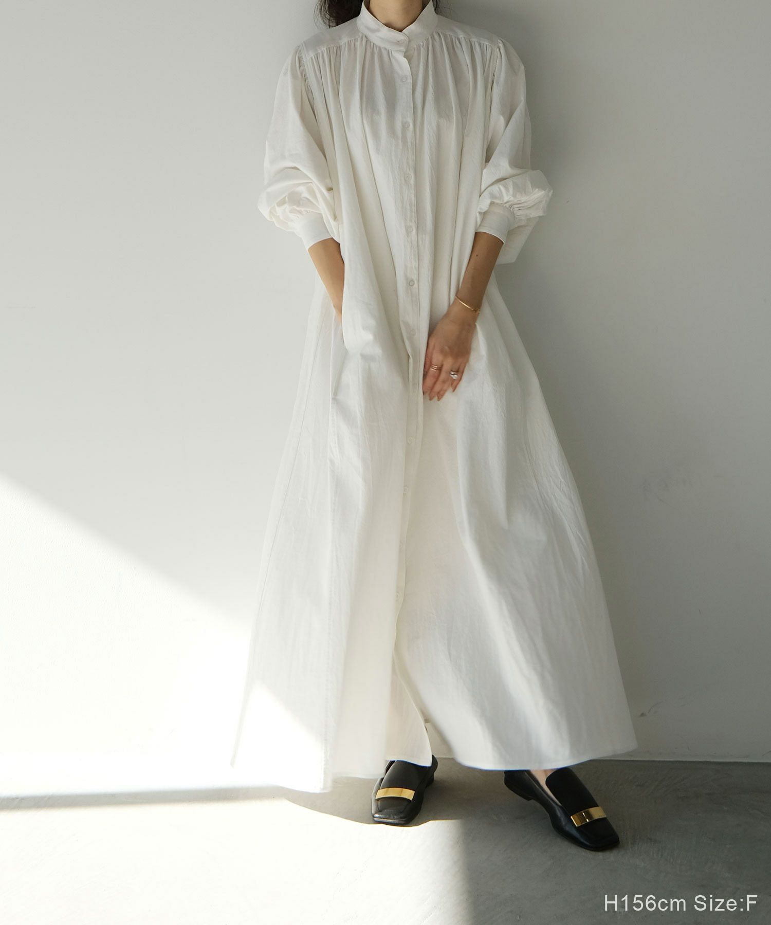 贅沢なボリュームと空気を含んだような膨らみが女性らしいリラックスさを演出してくれる大人のシャツワンピース