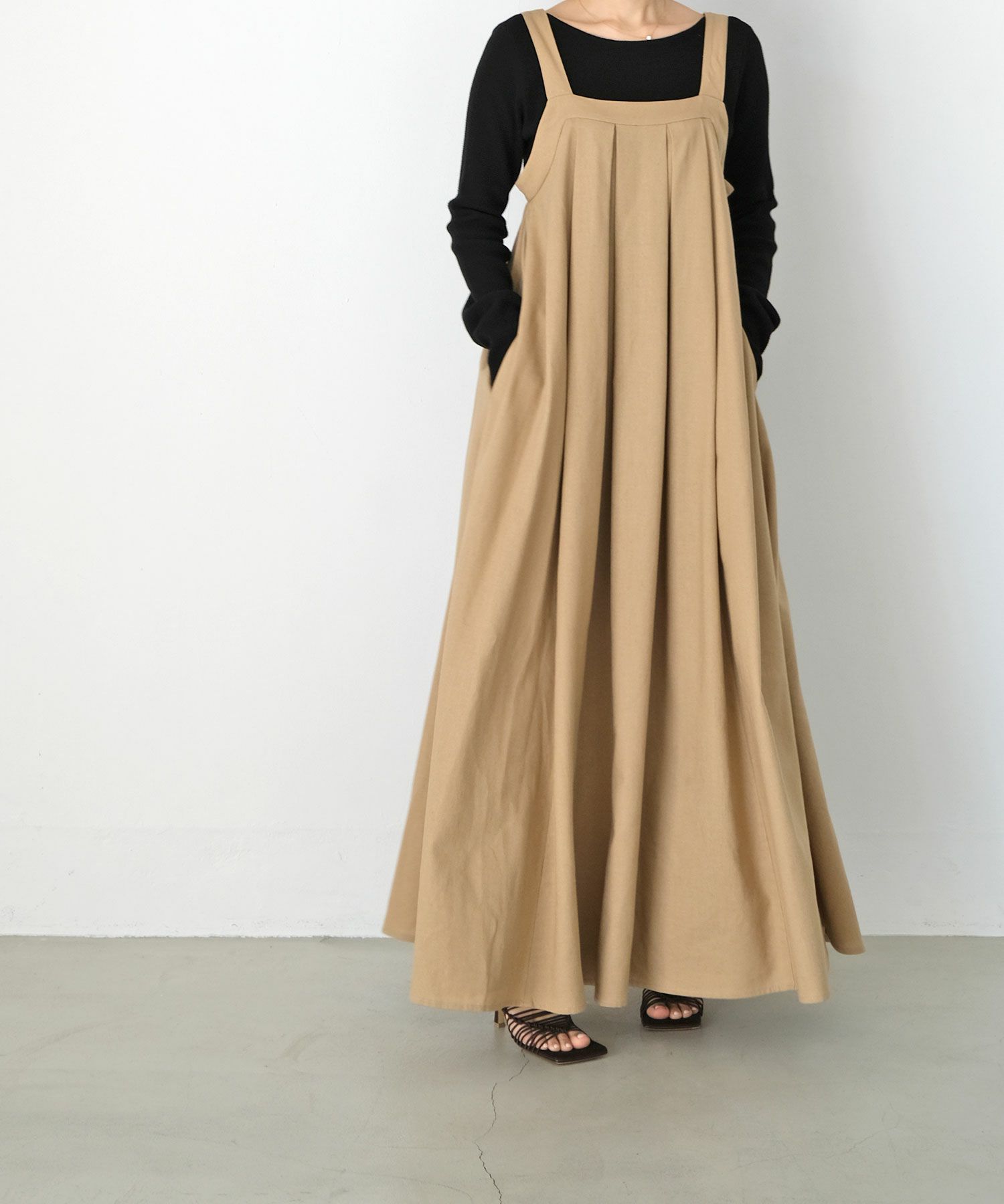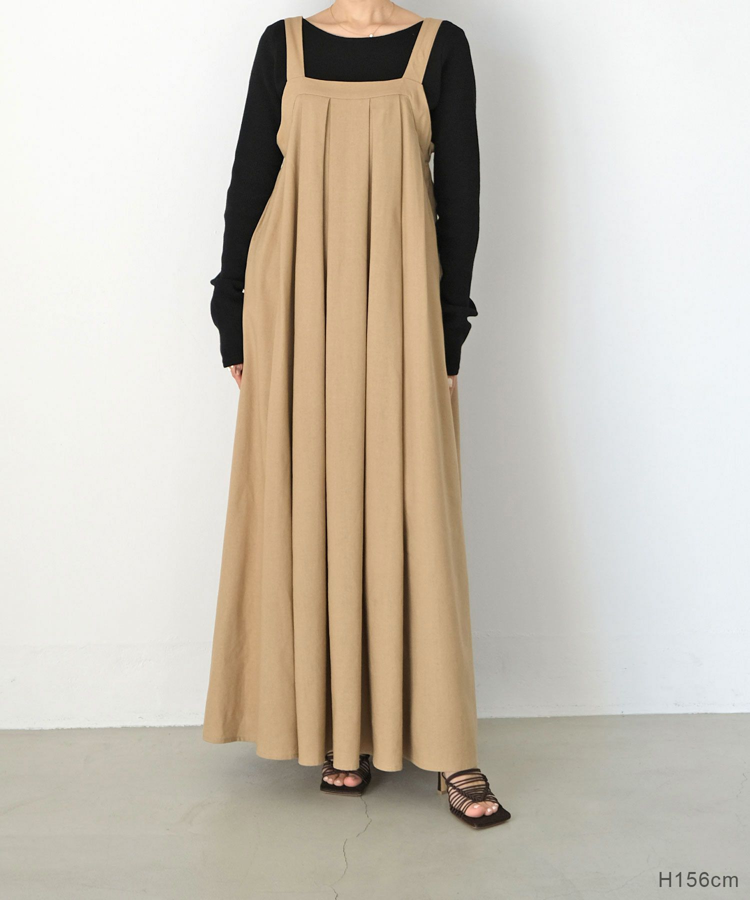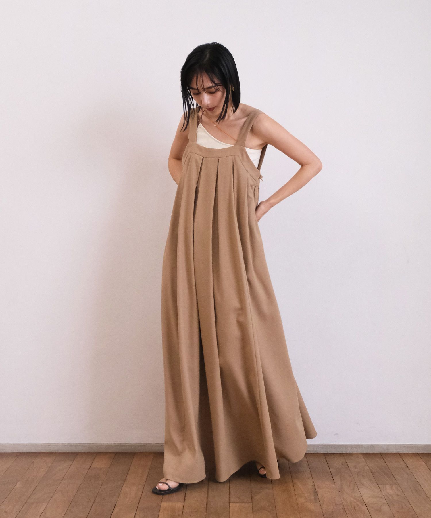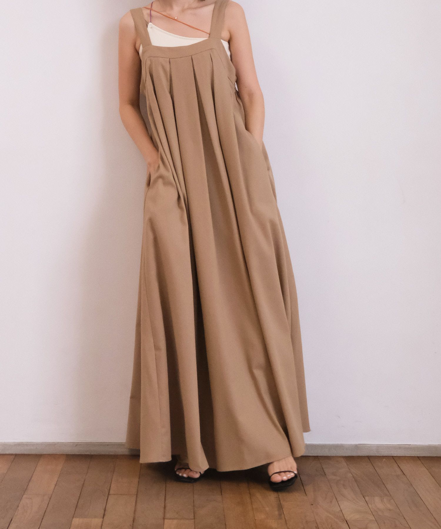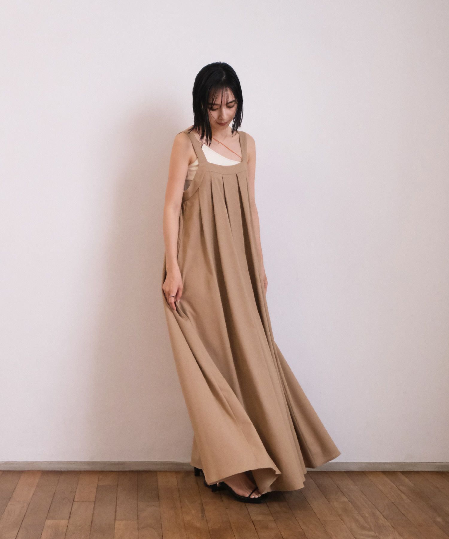 フロントにタックを施すことで贅沢なボリューム感が魅力のロングワンピース。