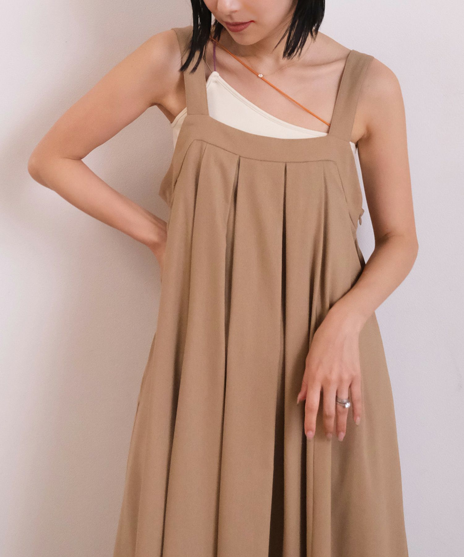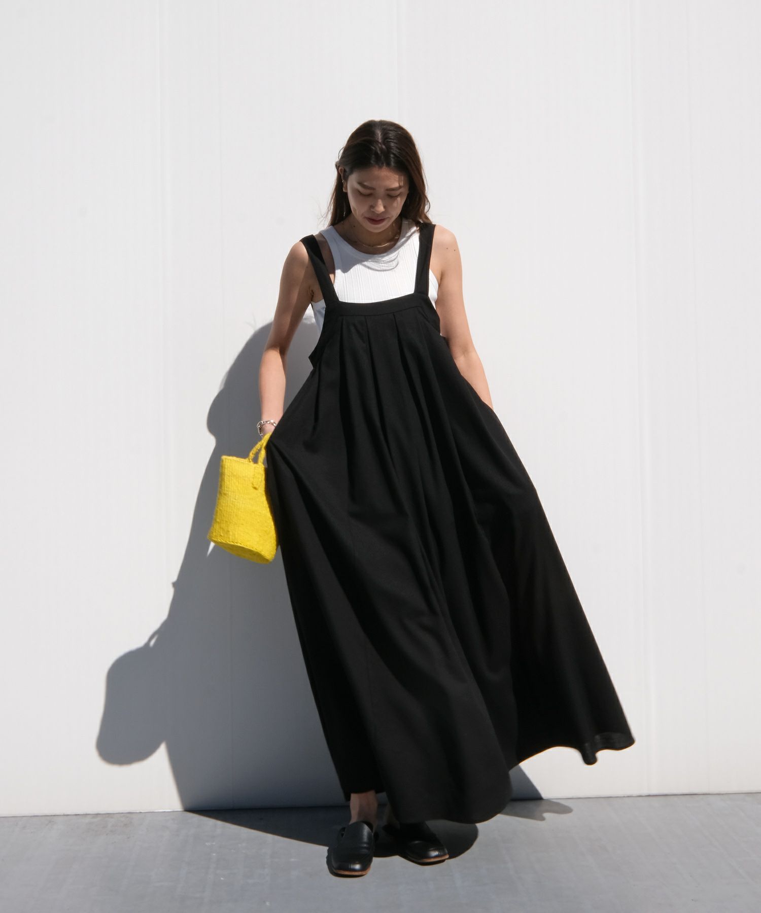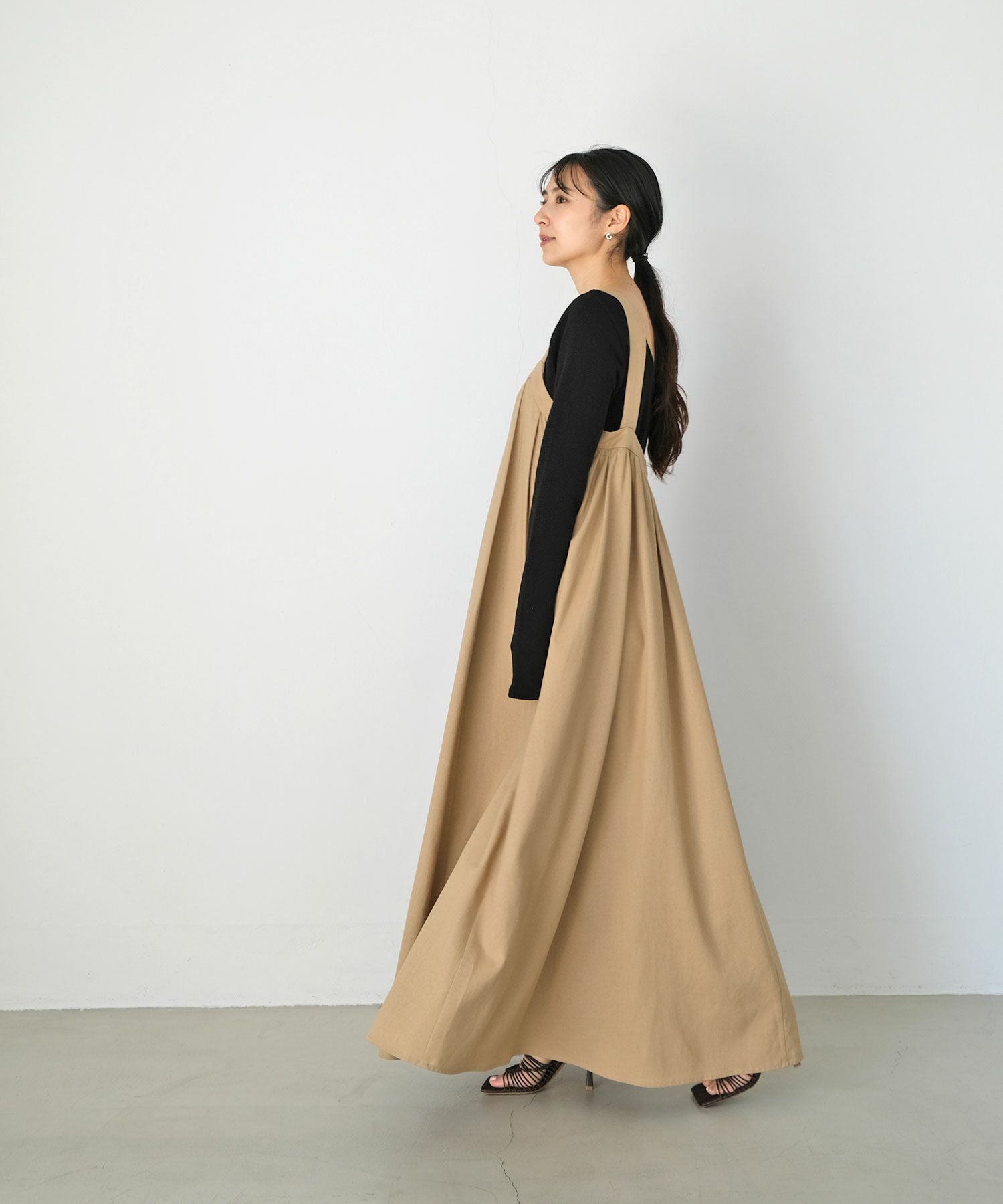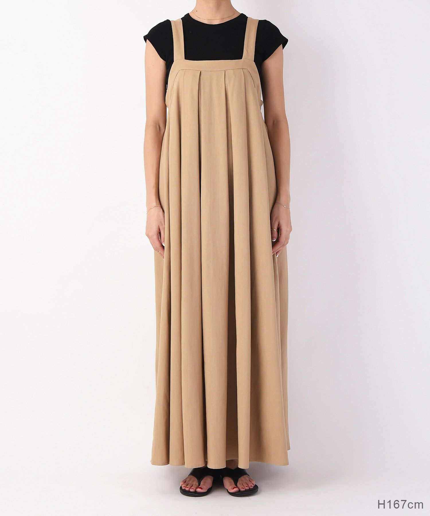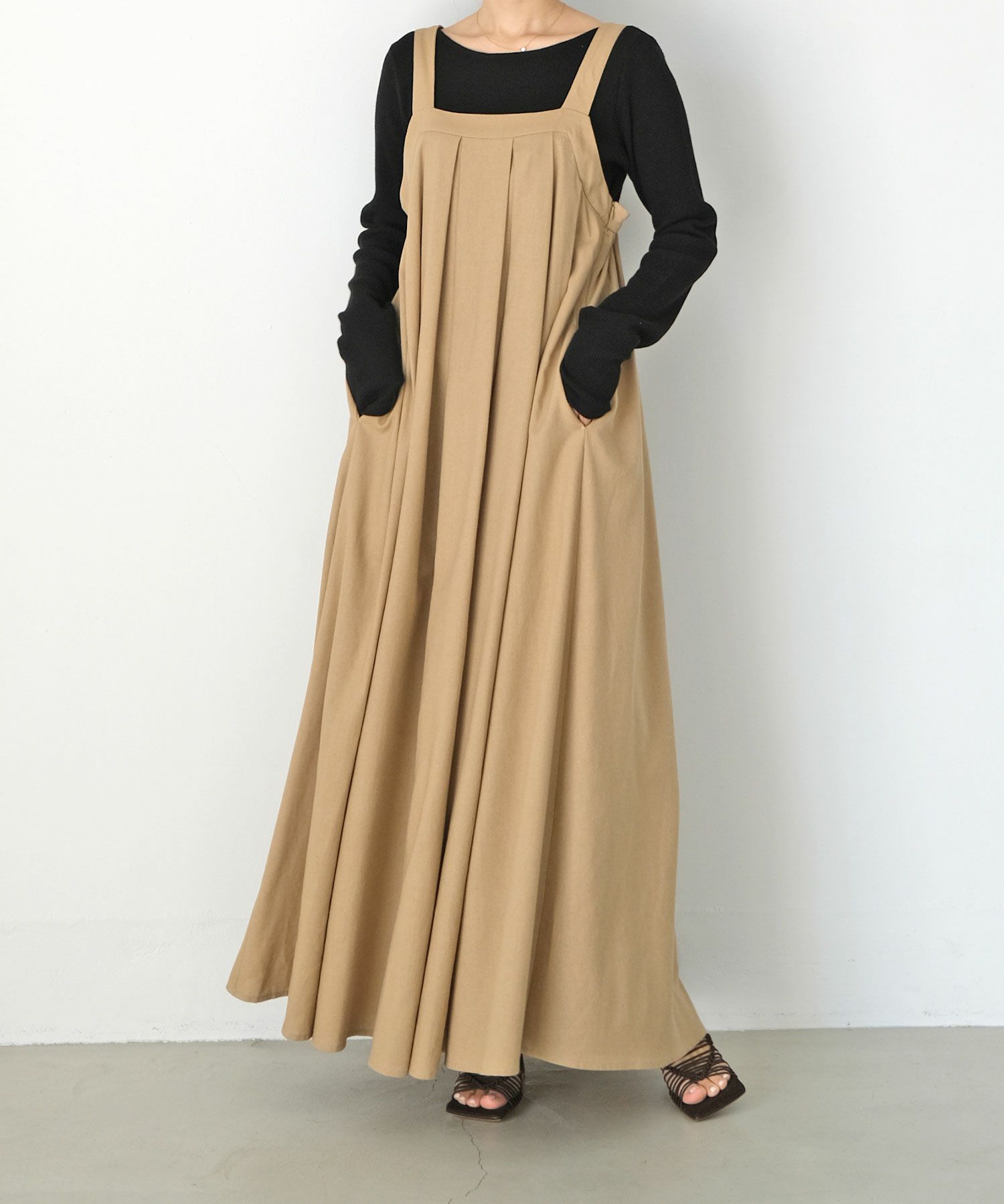 フロントにタックを施すことで贅沢なボリューム感が魅力のロングワンピース。