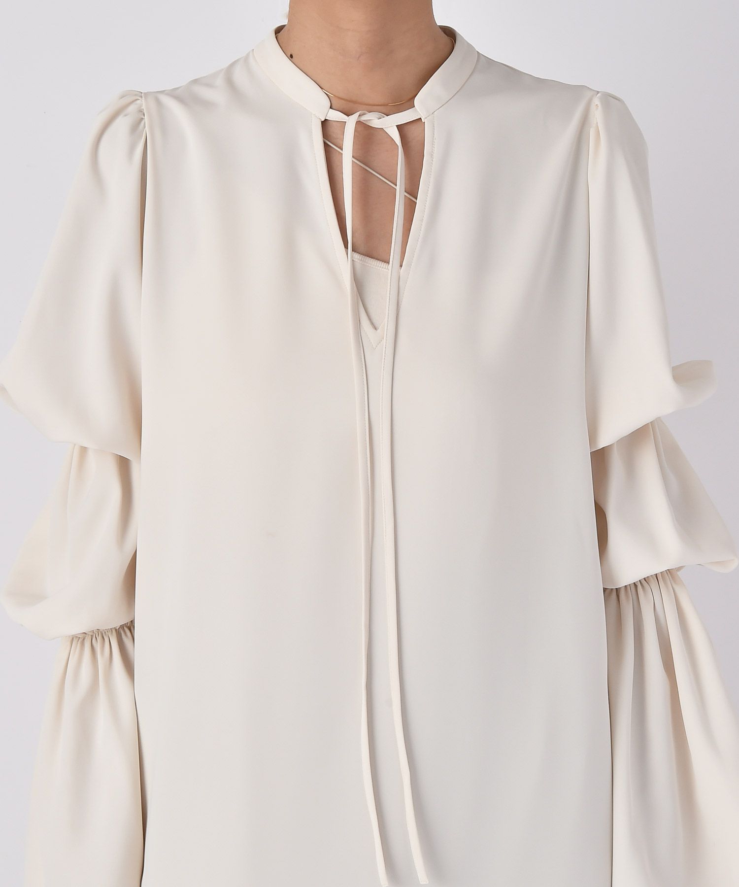 スリーブのギャザーにはゴムが入っており、ボリュームを調整していただけます。