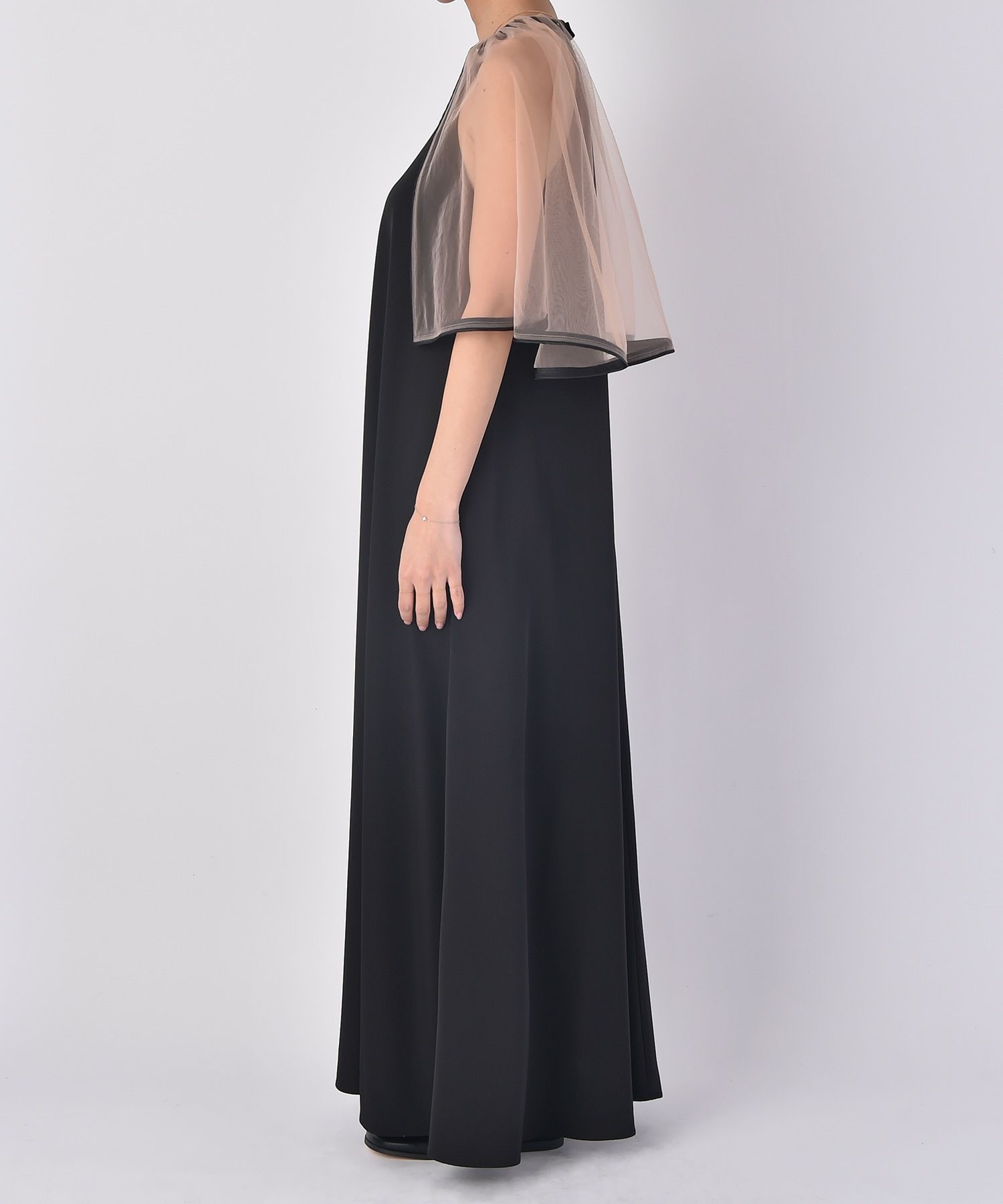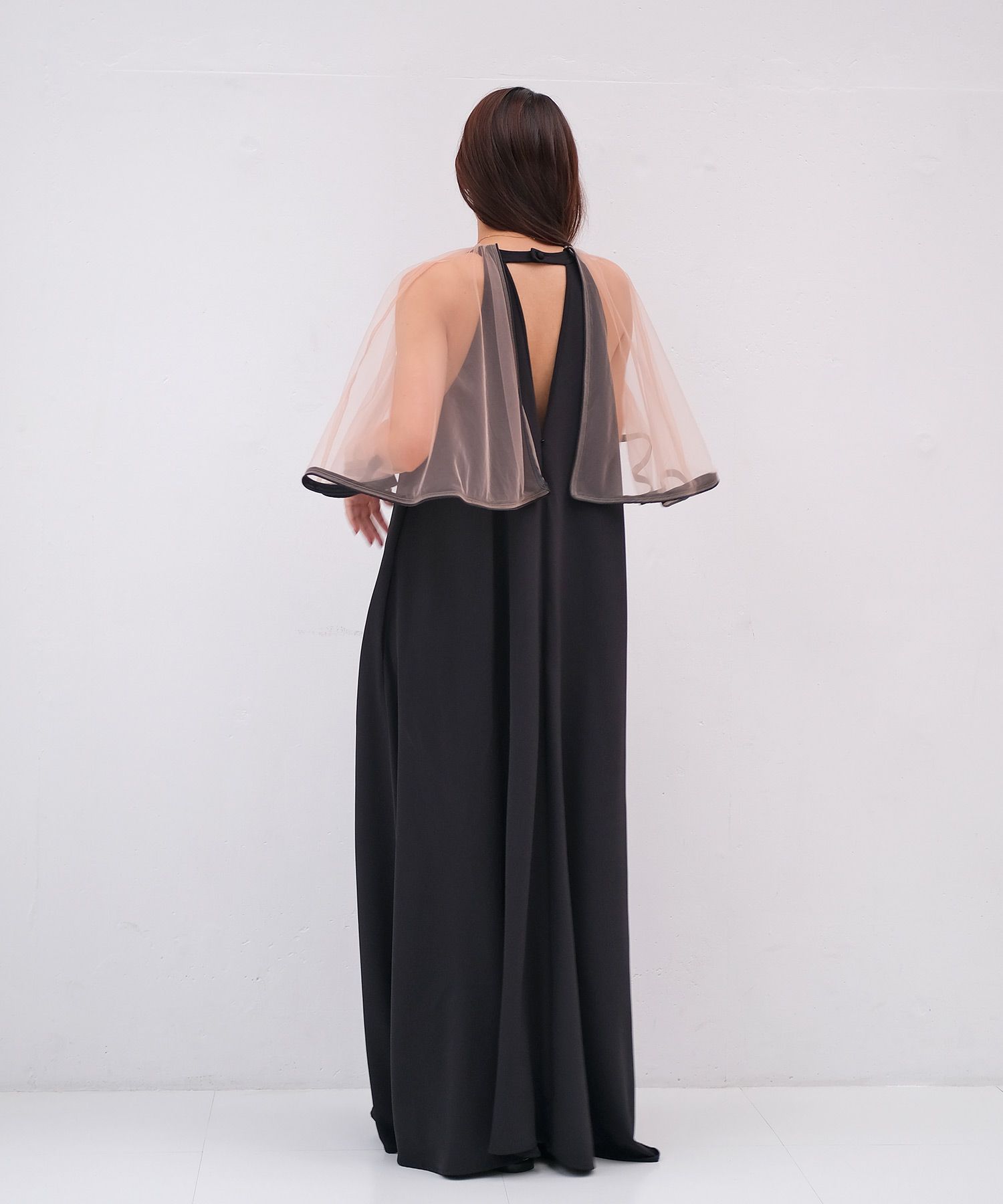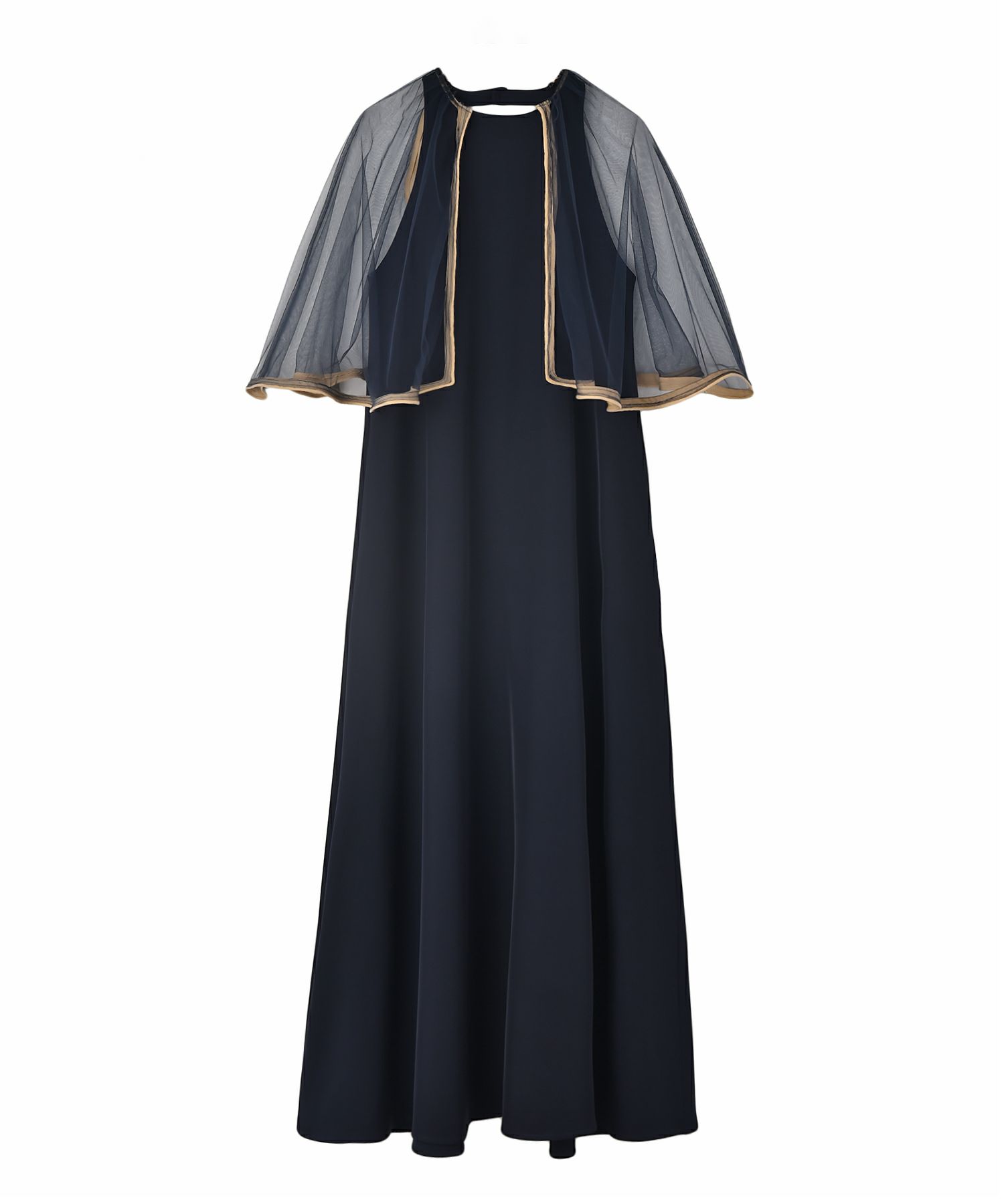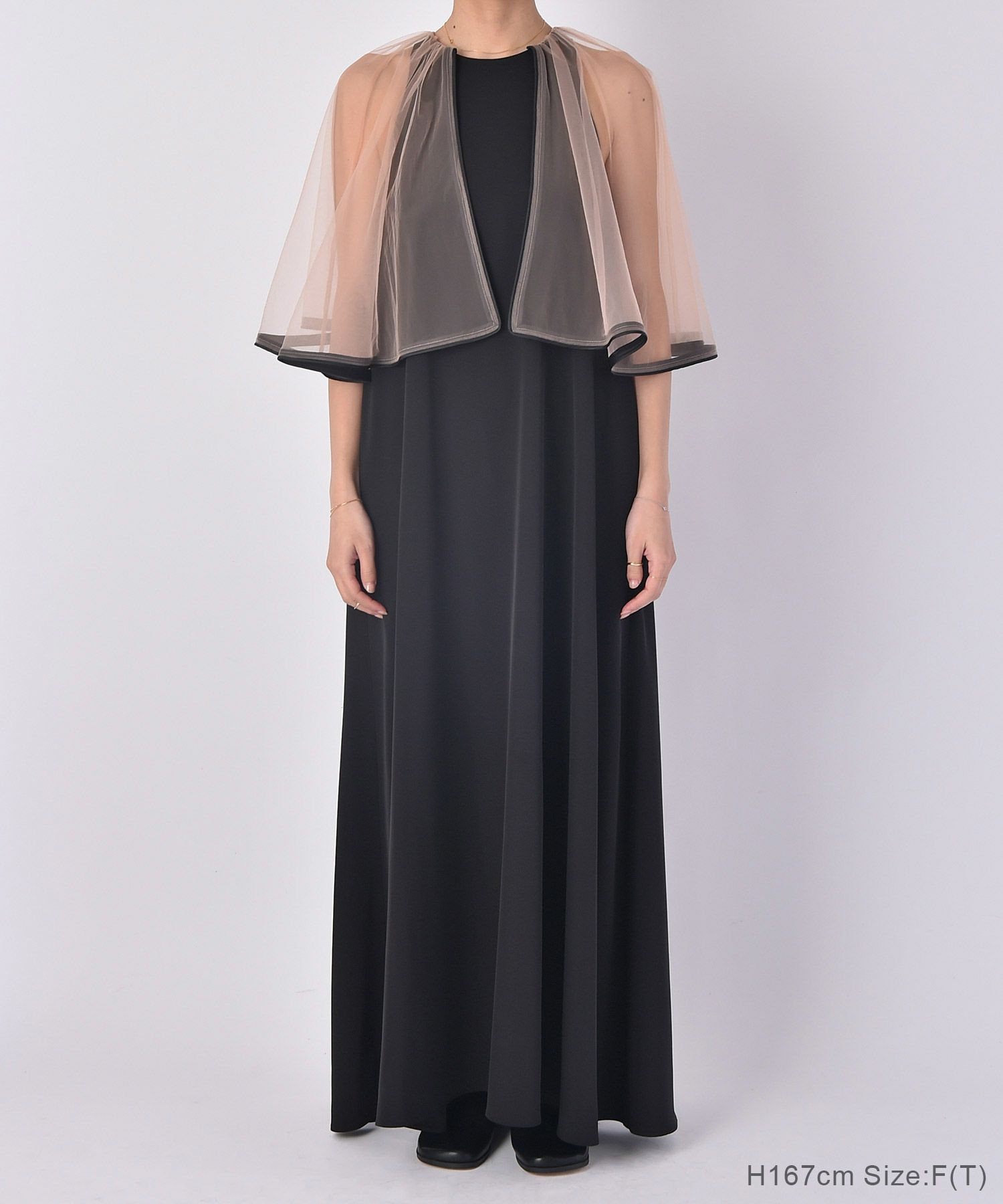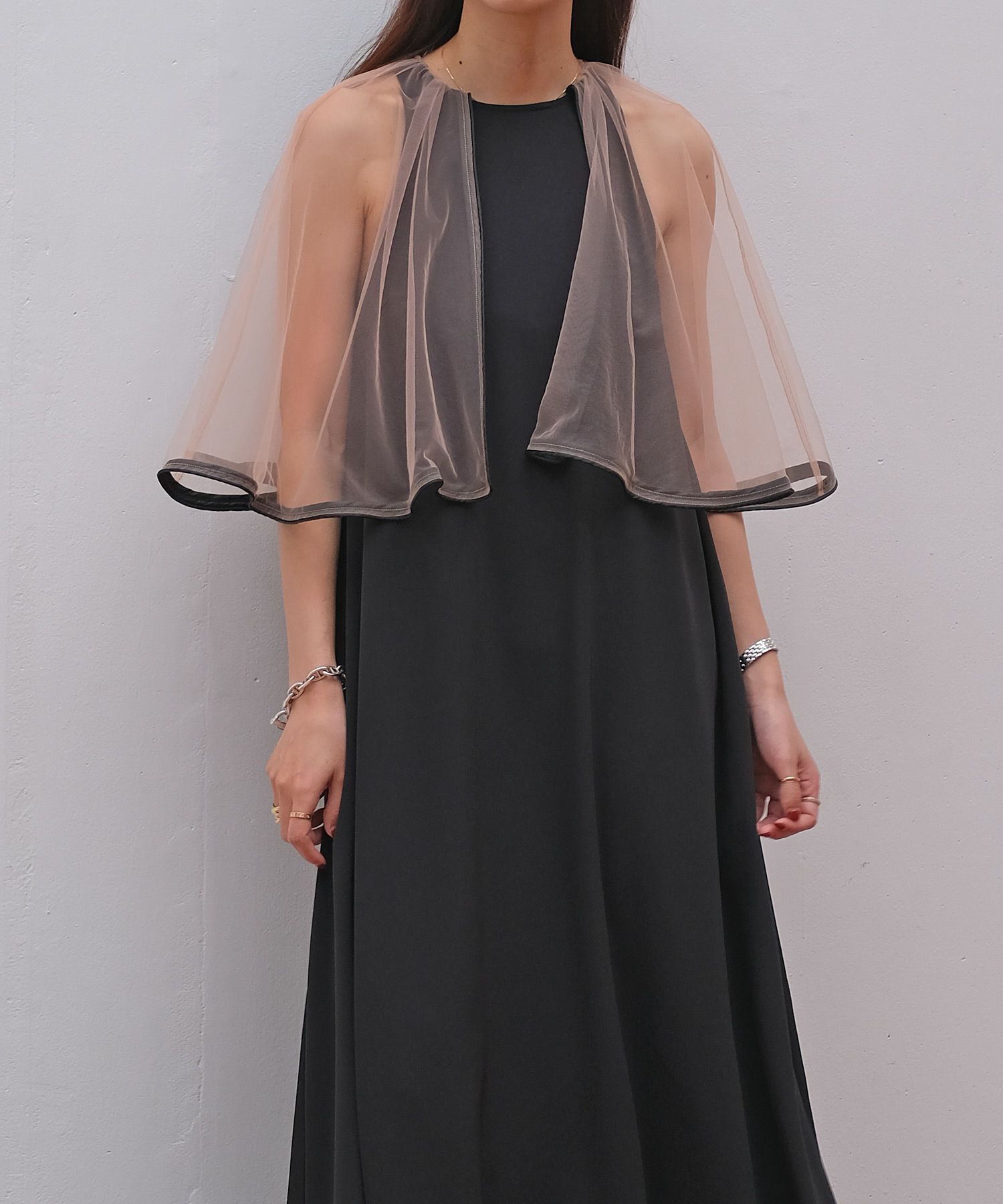 シアーなチュール生地を使用したケープは、上品ながらもモードさを感じさせるのも高ポイント。