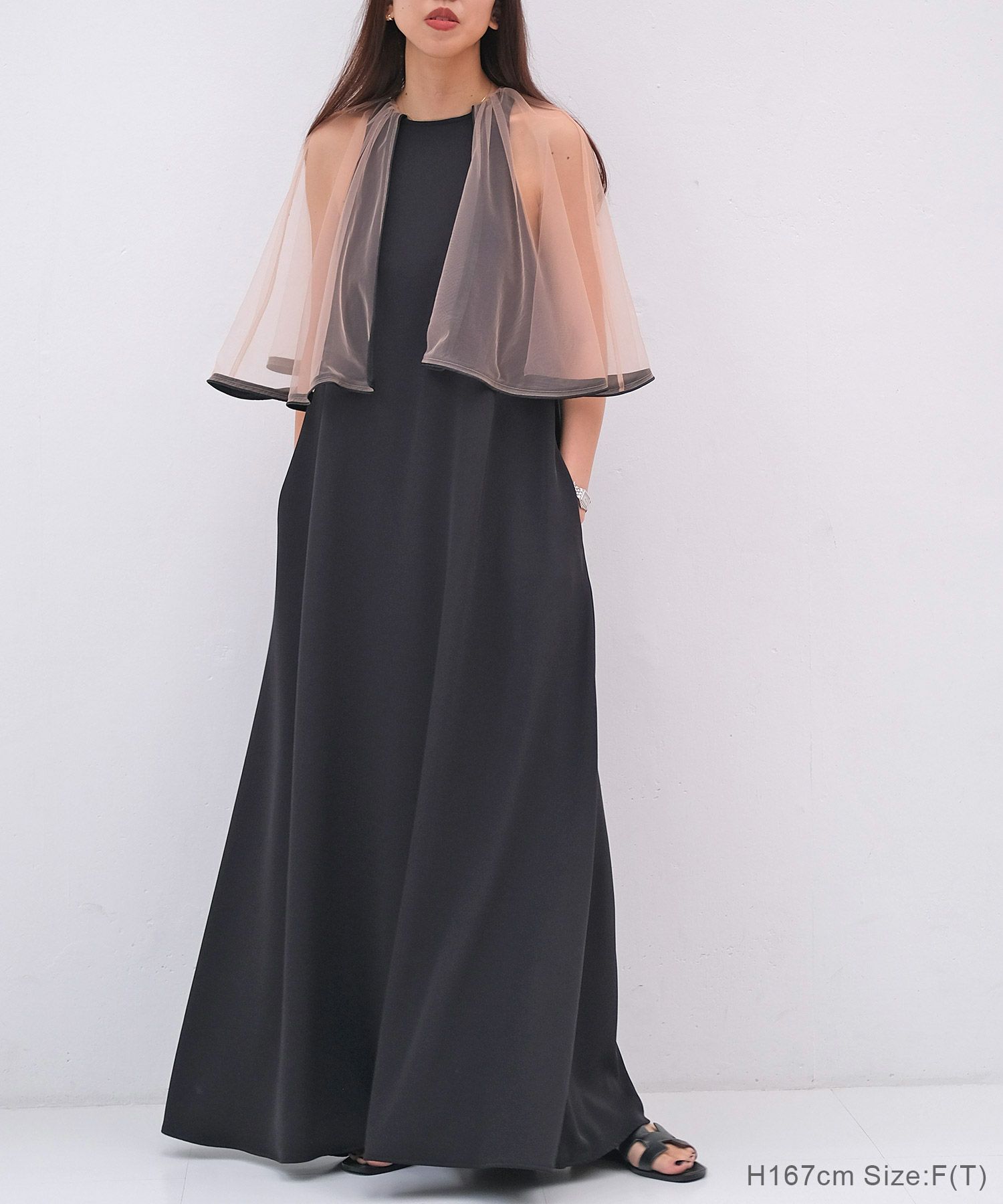 ケープを取り外してアメリカンスリーブのドレスとしても着用でき、着回しの幅も広がります。