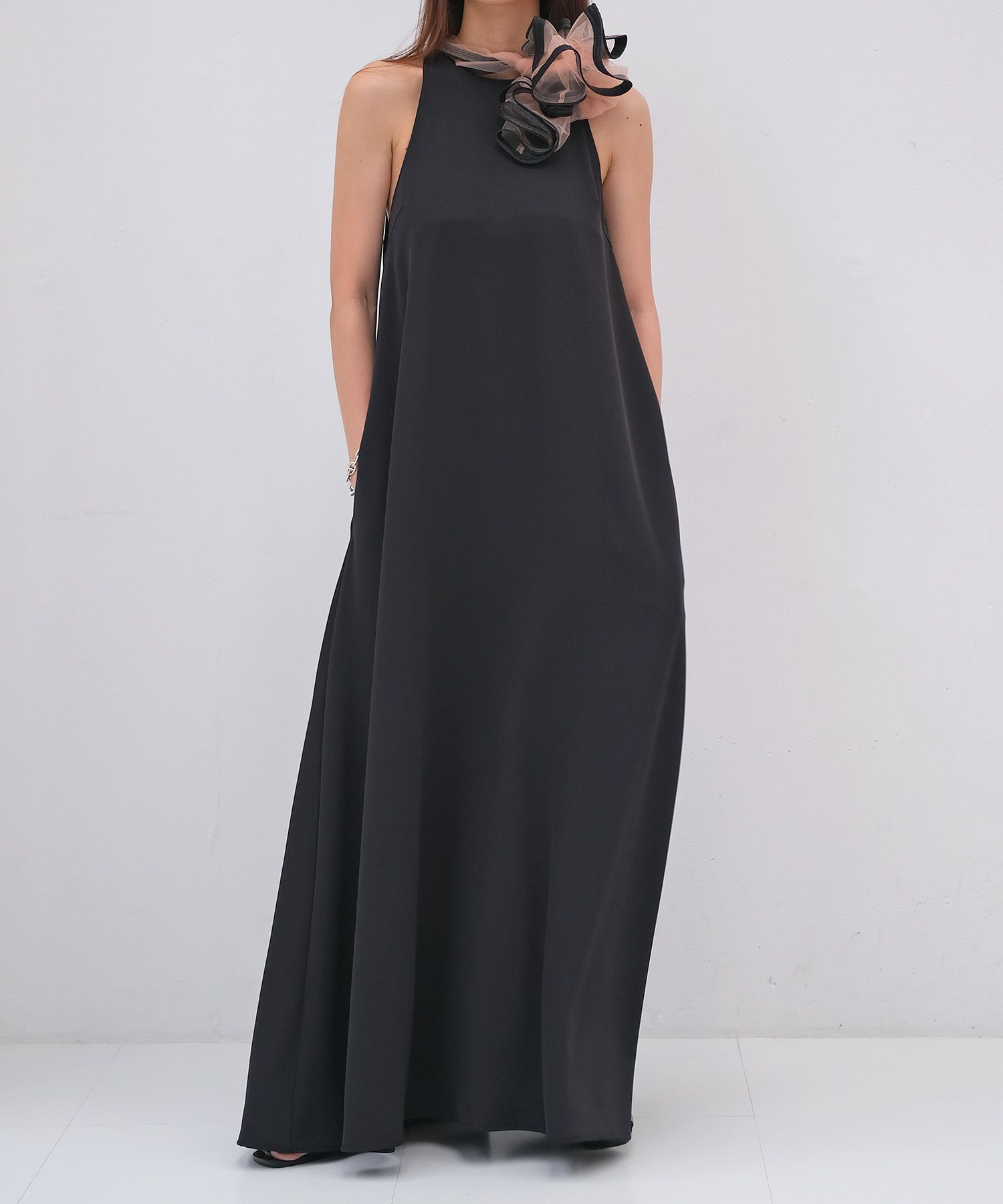 シンプルだからこそワンランク上の女性らしいエレガントなムードが際立つロングドレスです。