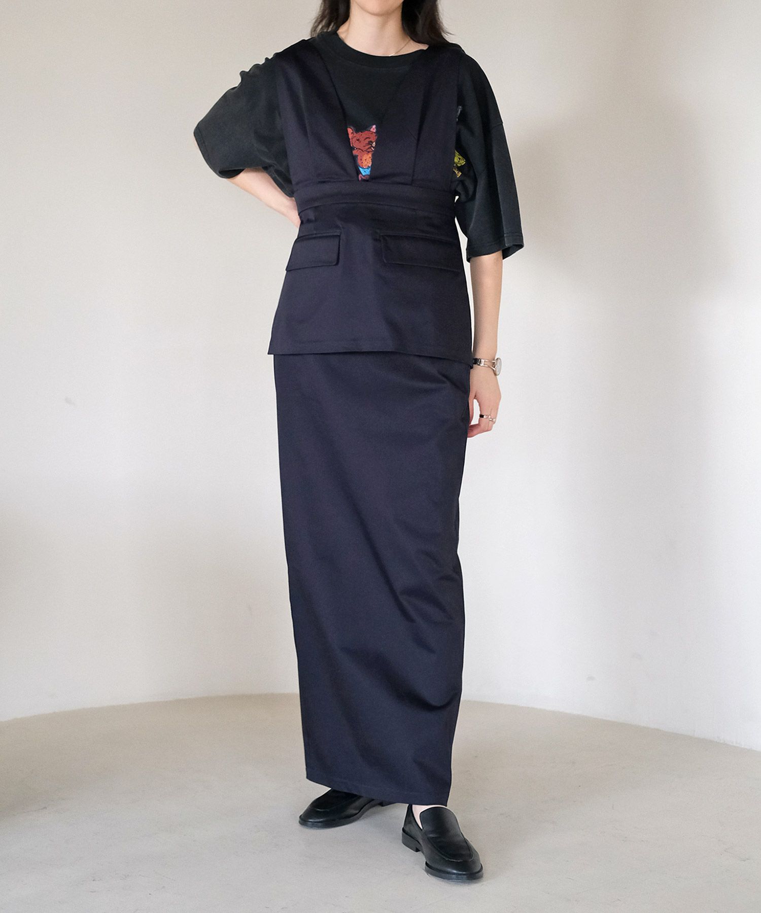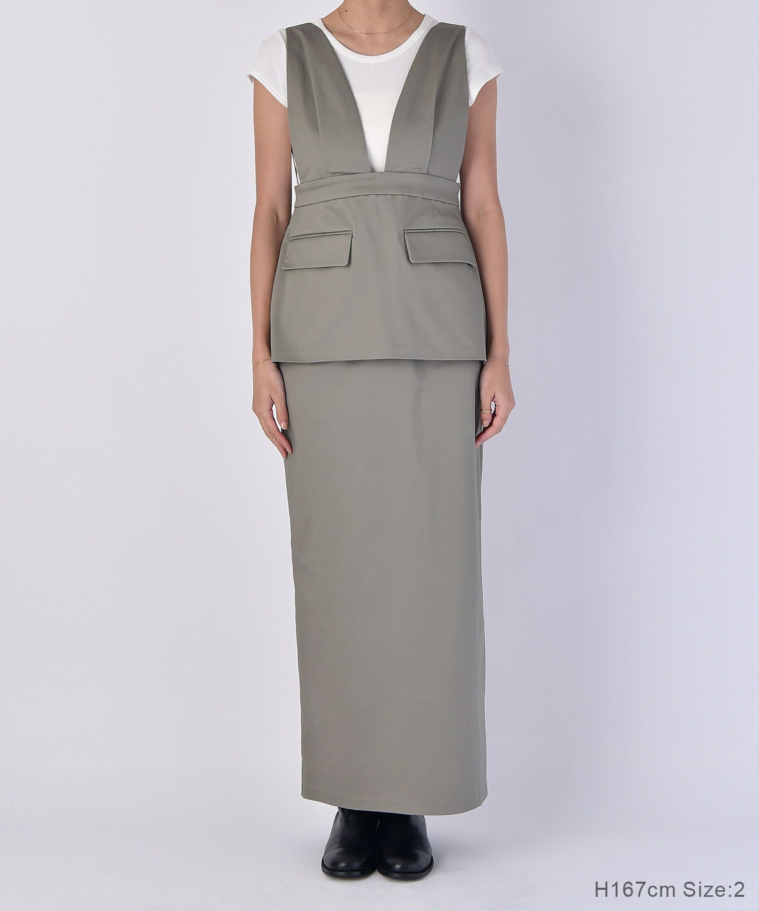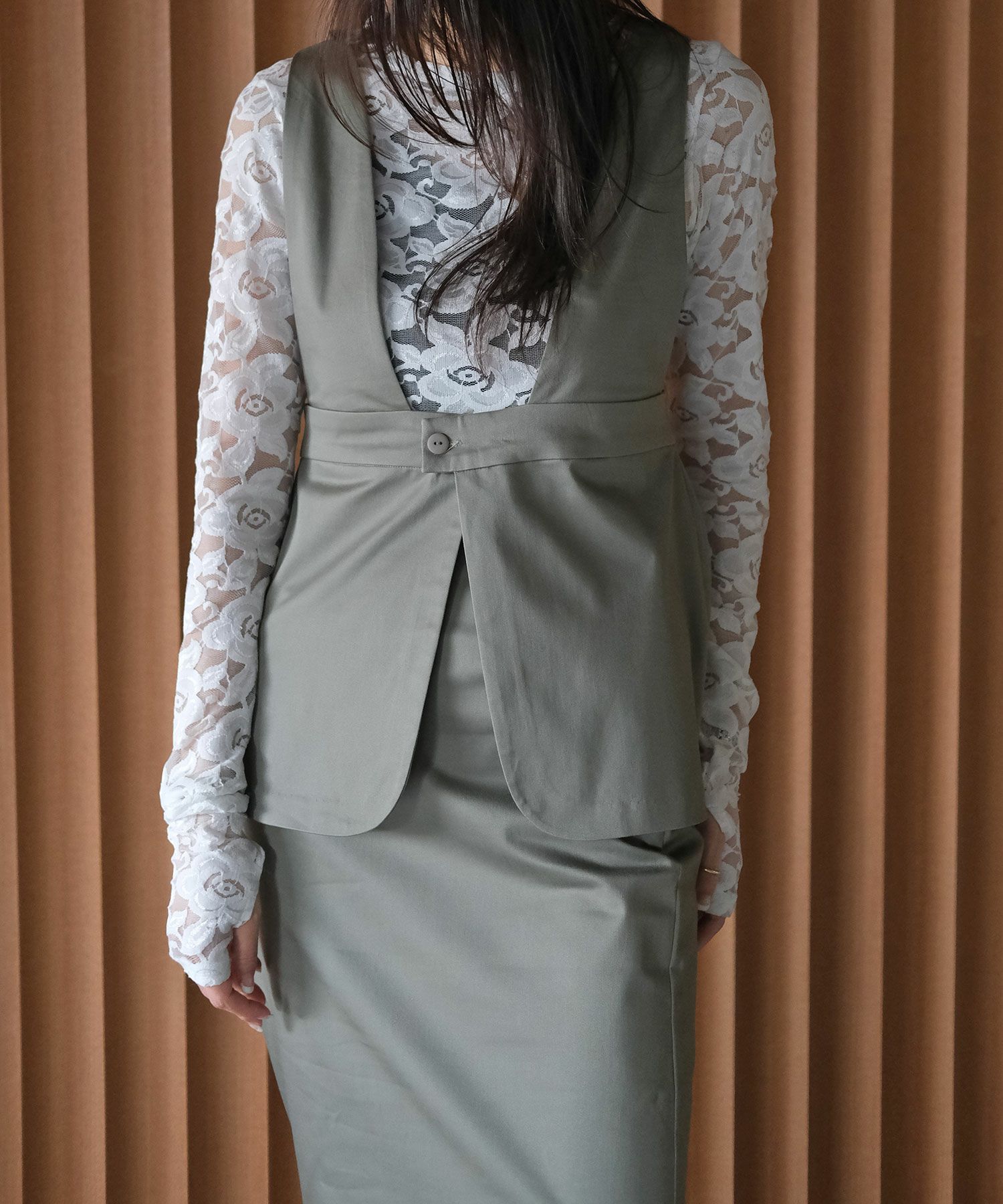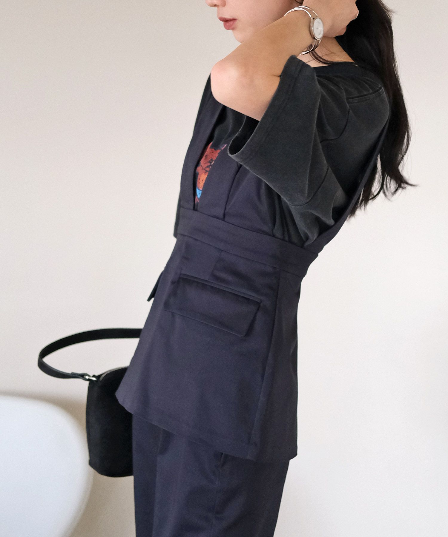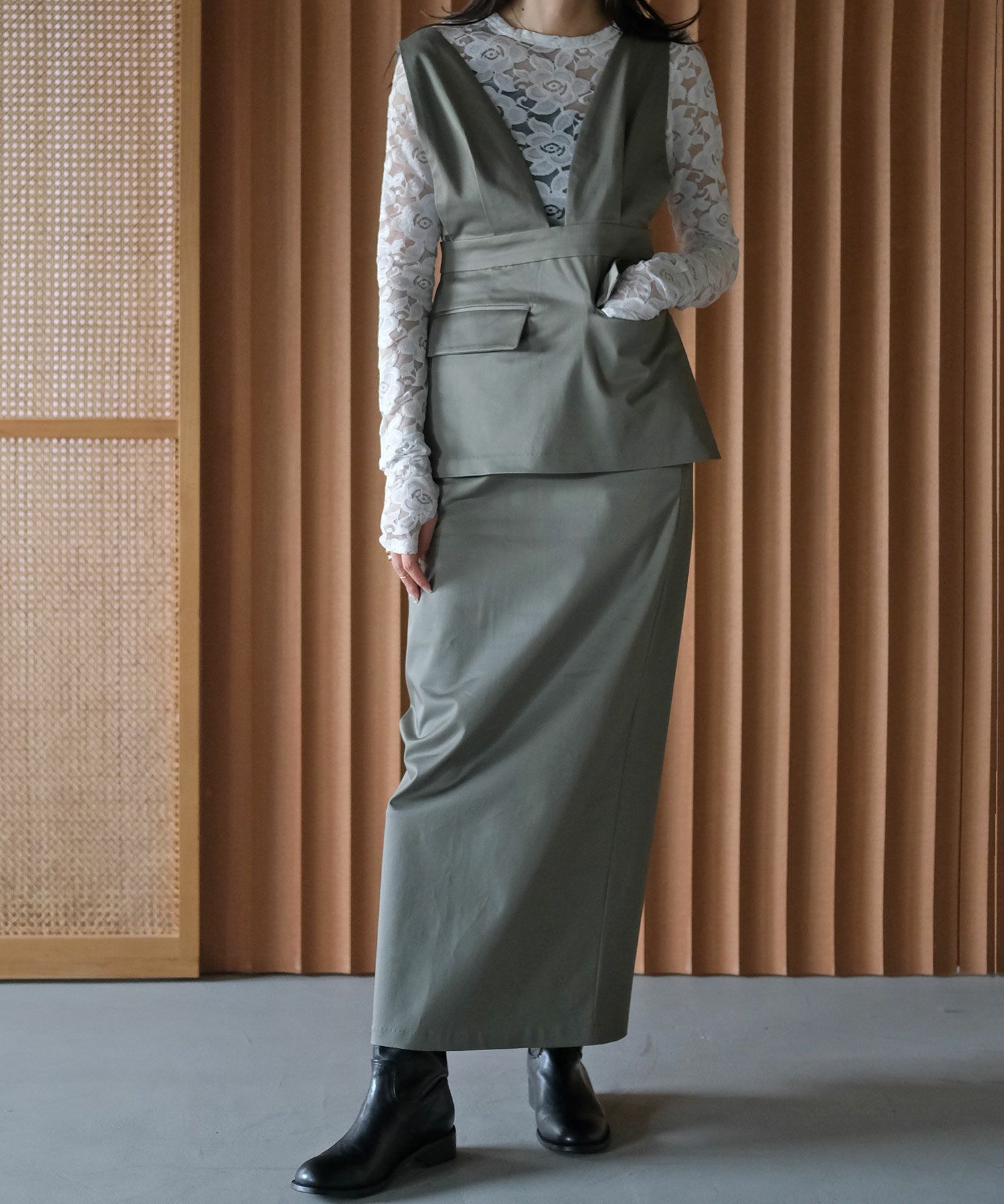 ベストは前後2WAYで着用でき、高めのウエストマークがスタイルアップも叶います。