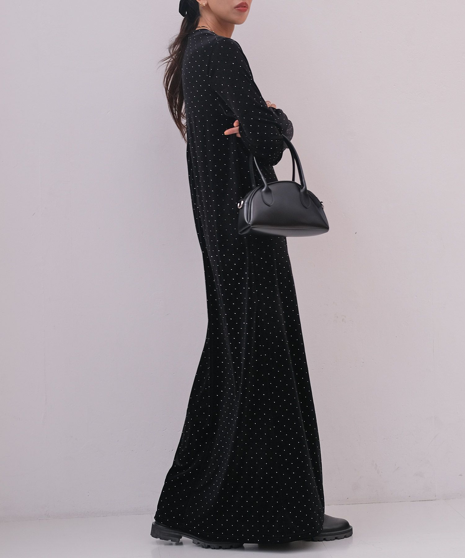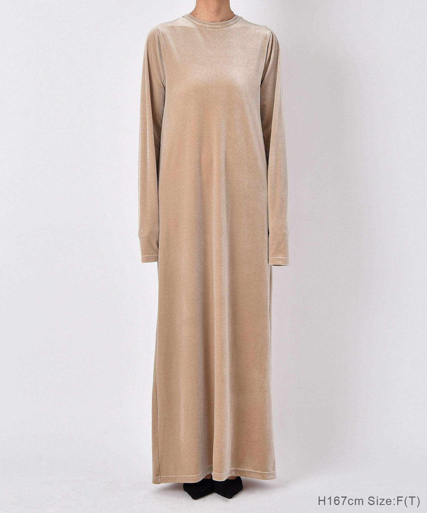 リラクシーなシルエットがスタイルアップも叶える、上品ながらも存在感を放つベロアワンピース