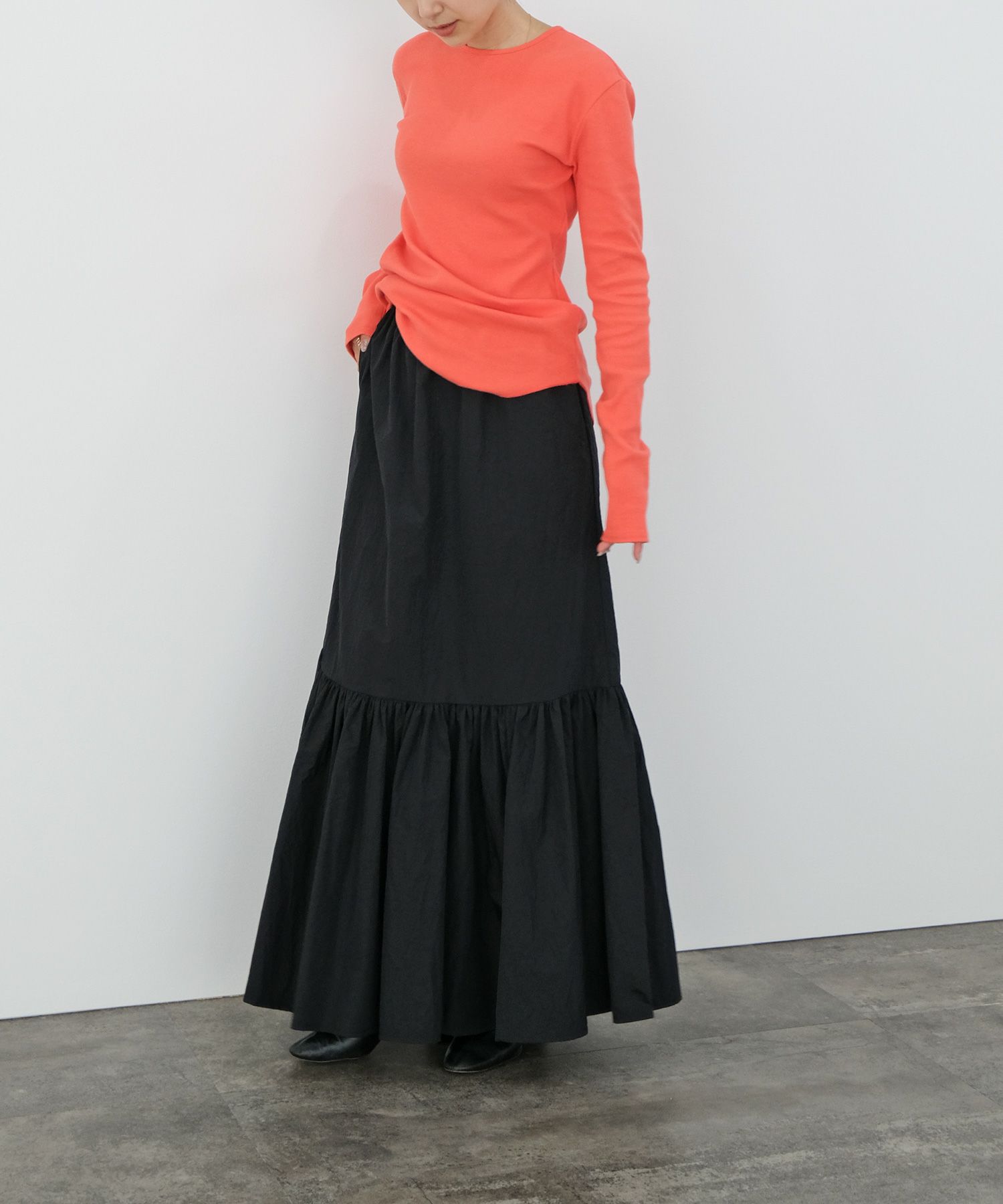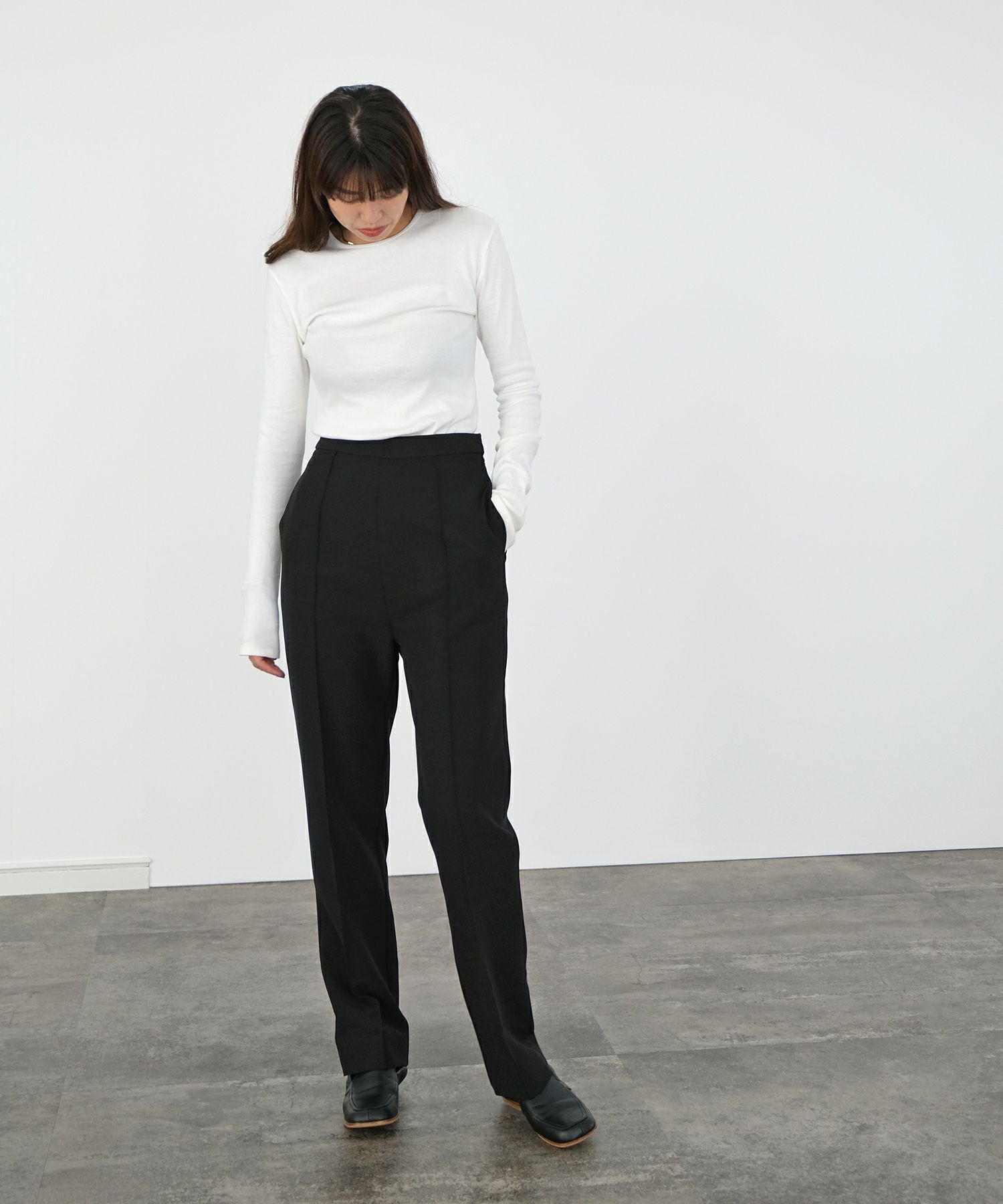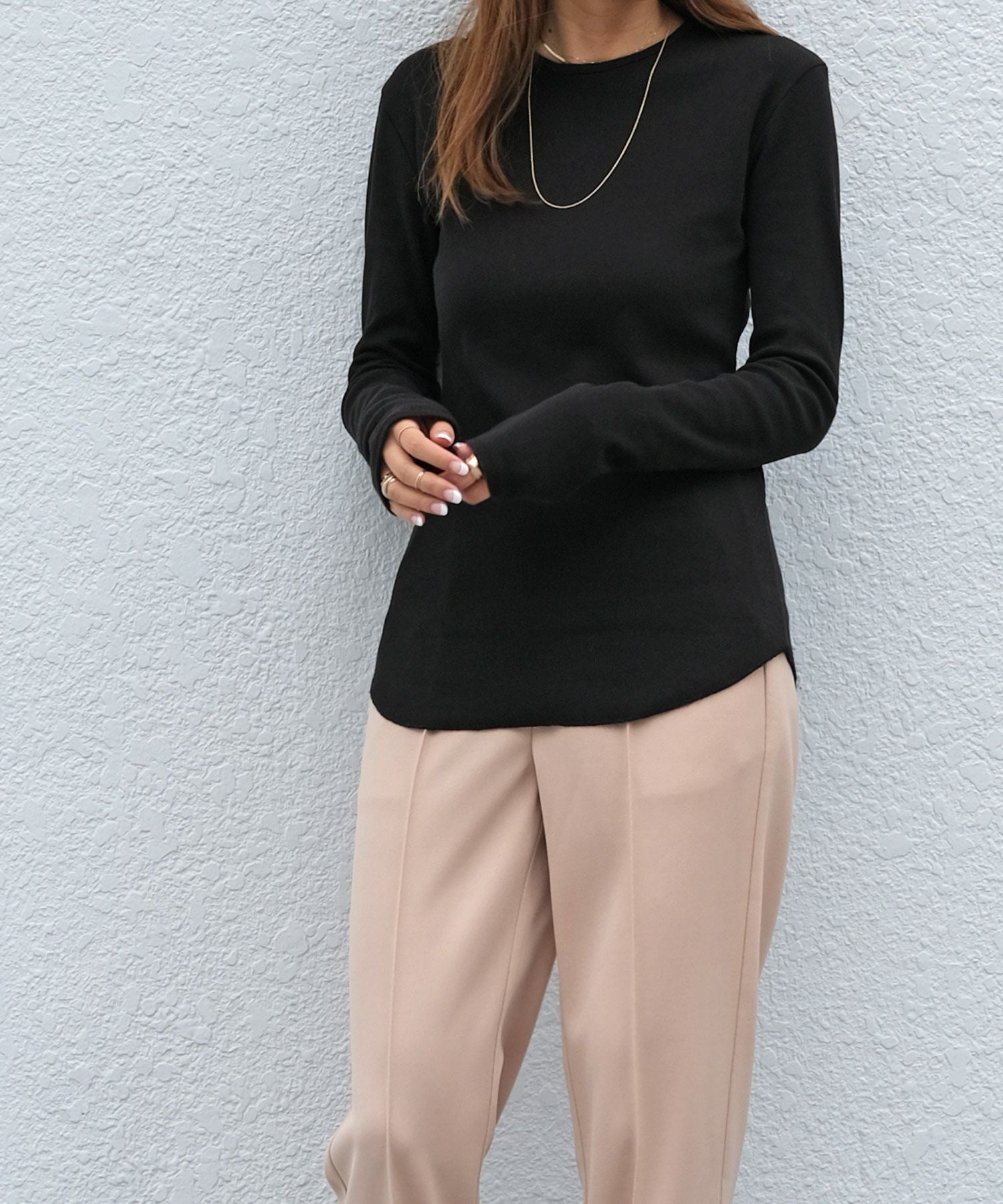 長めの袖丈と裾の船底とロック仕様がニュアンス感をプラス。