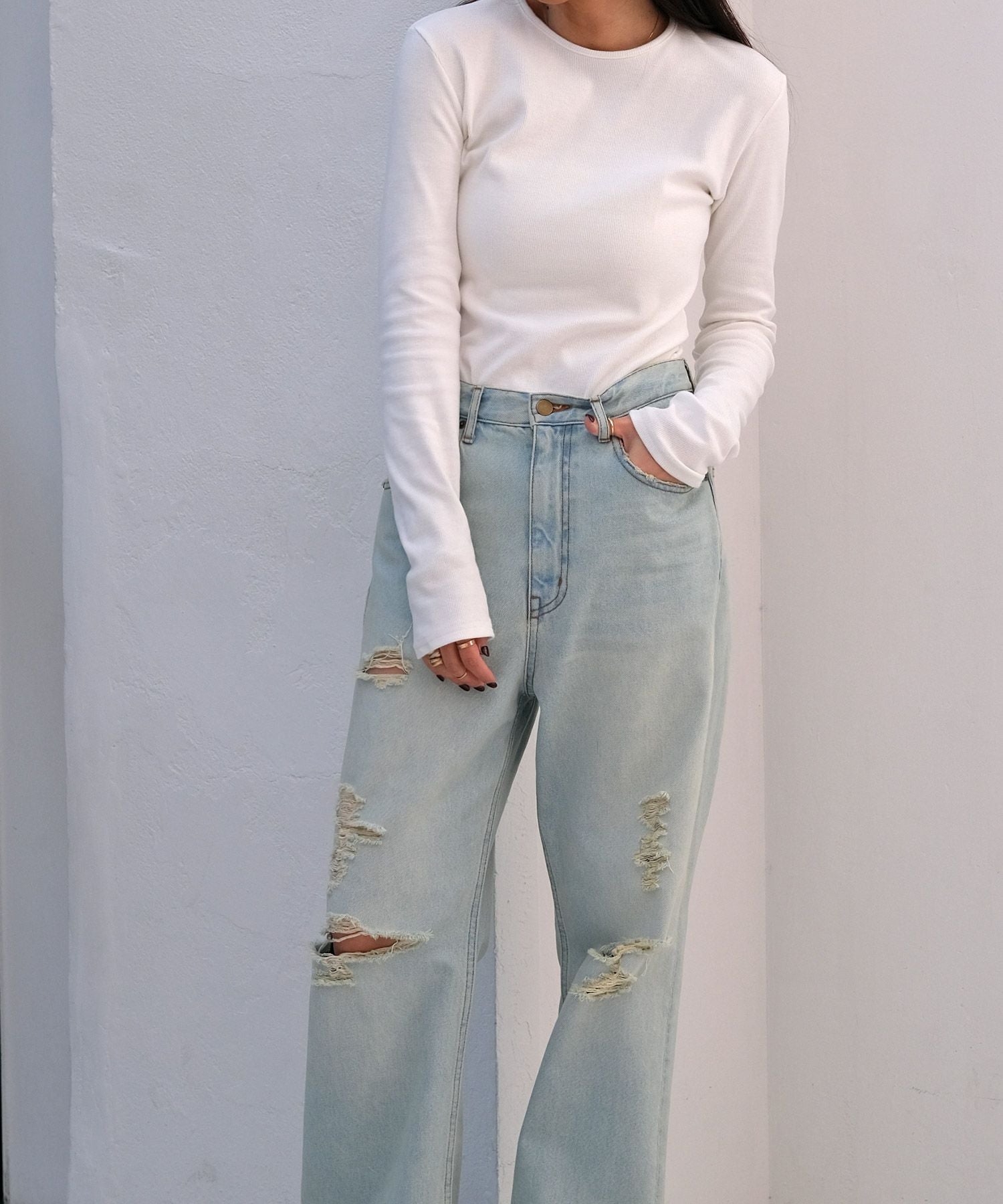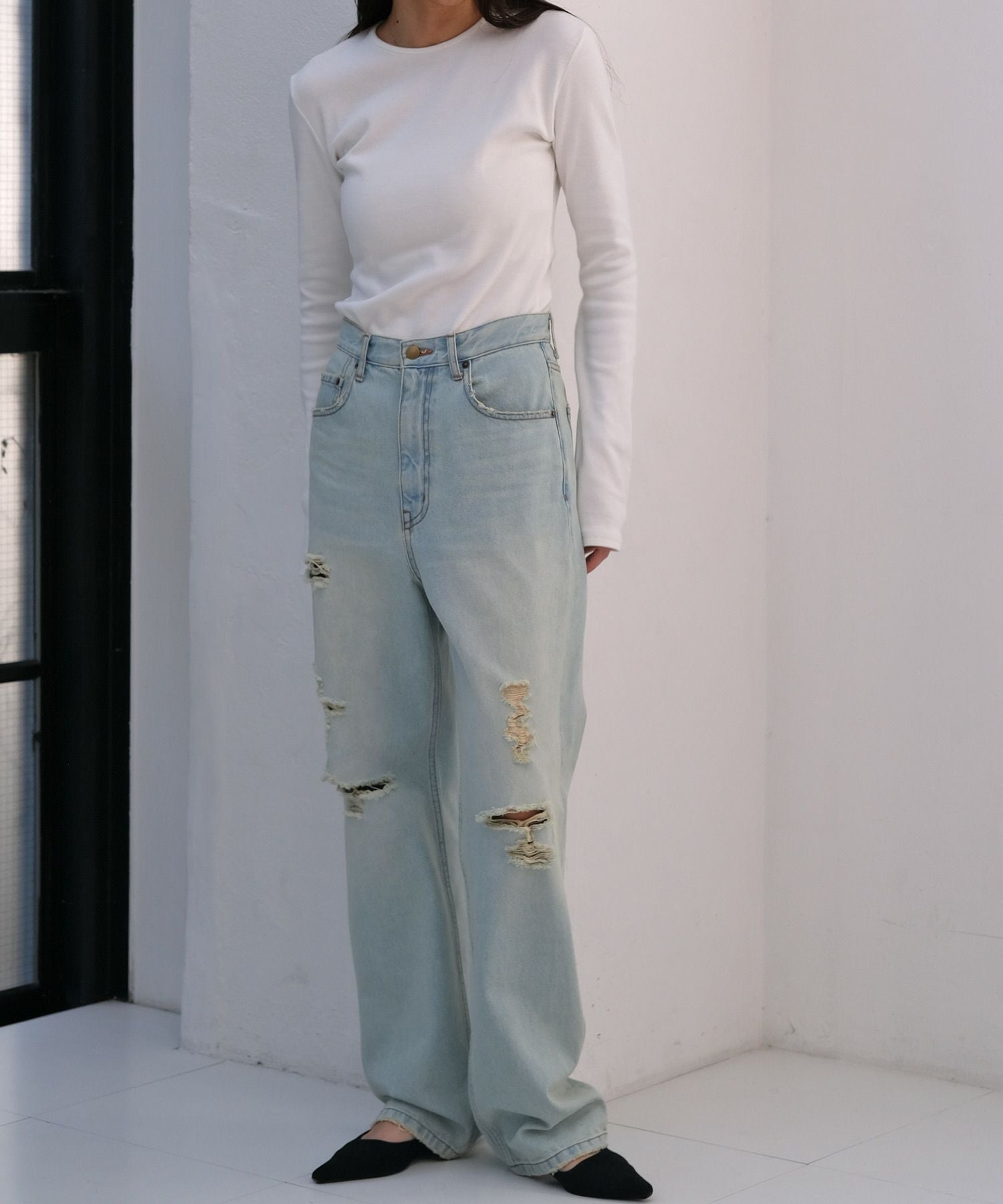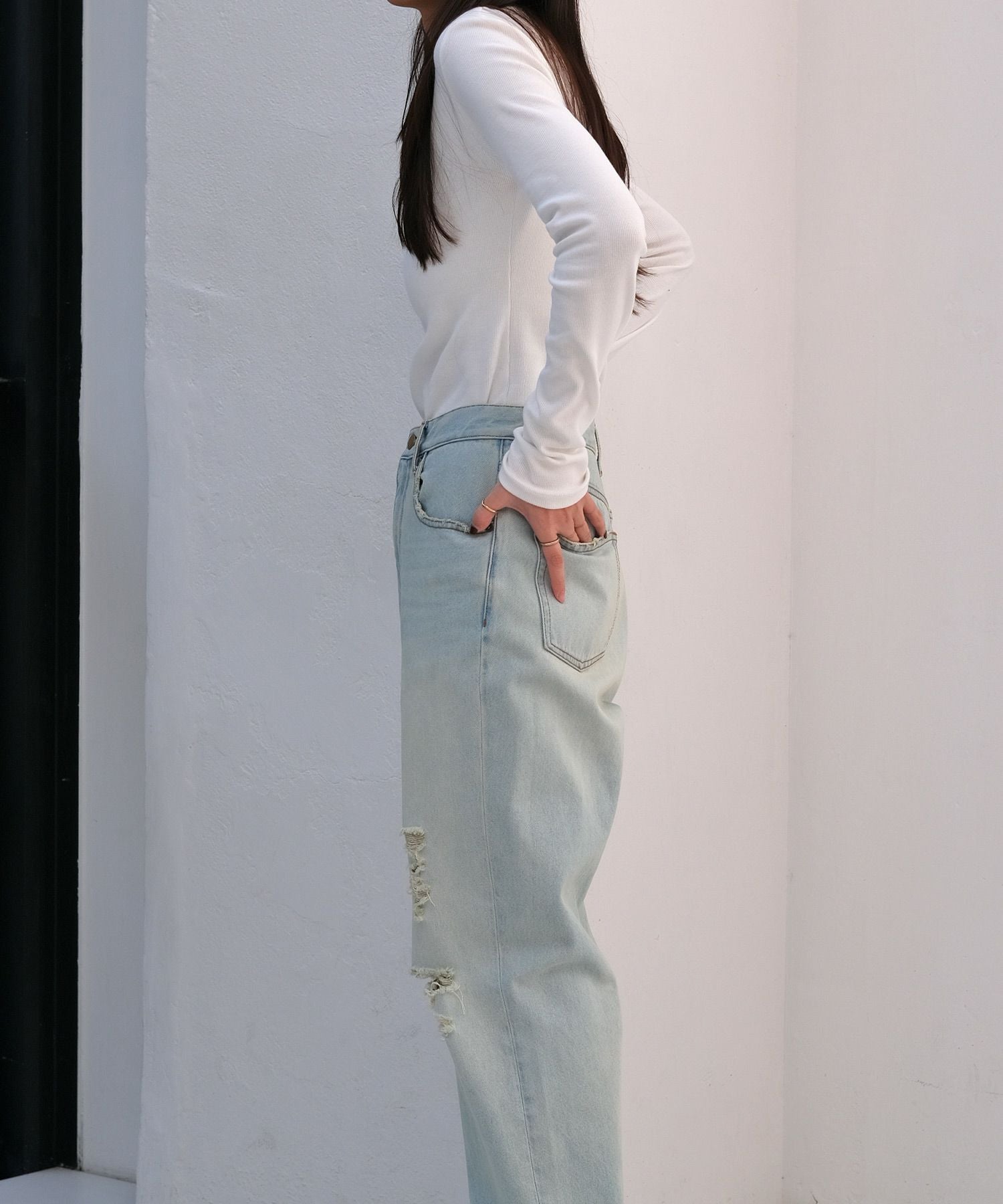 長めの袖丈と裾の船底とロック仕様がニュアンス感をプラス。