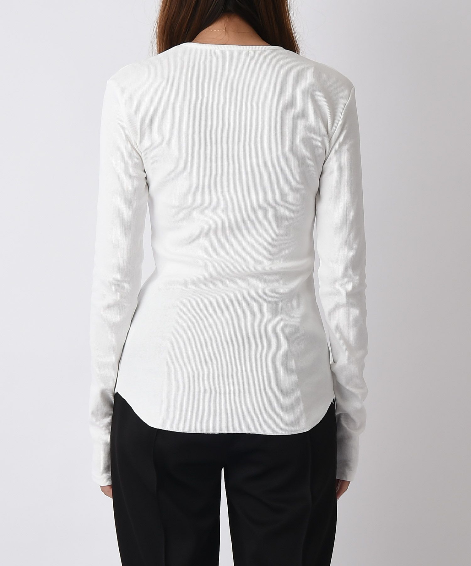 心地よくボディに沿うようなタイトなサイジングで、ボディラインをよりきれいに見せてくれます。