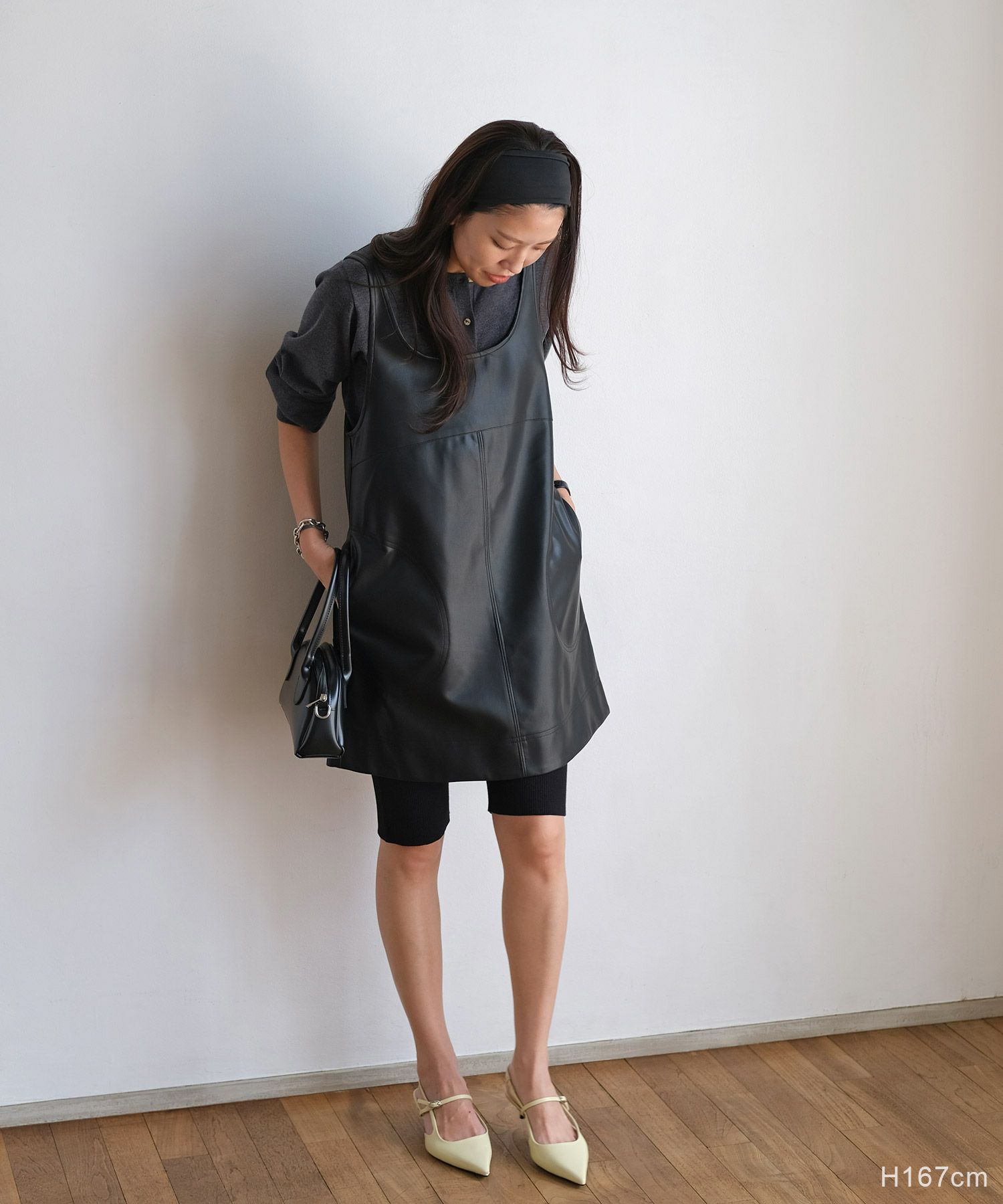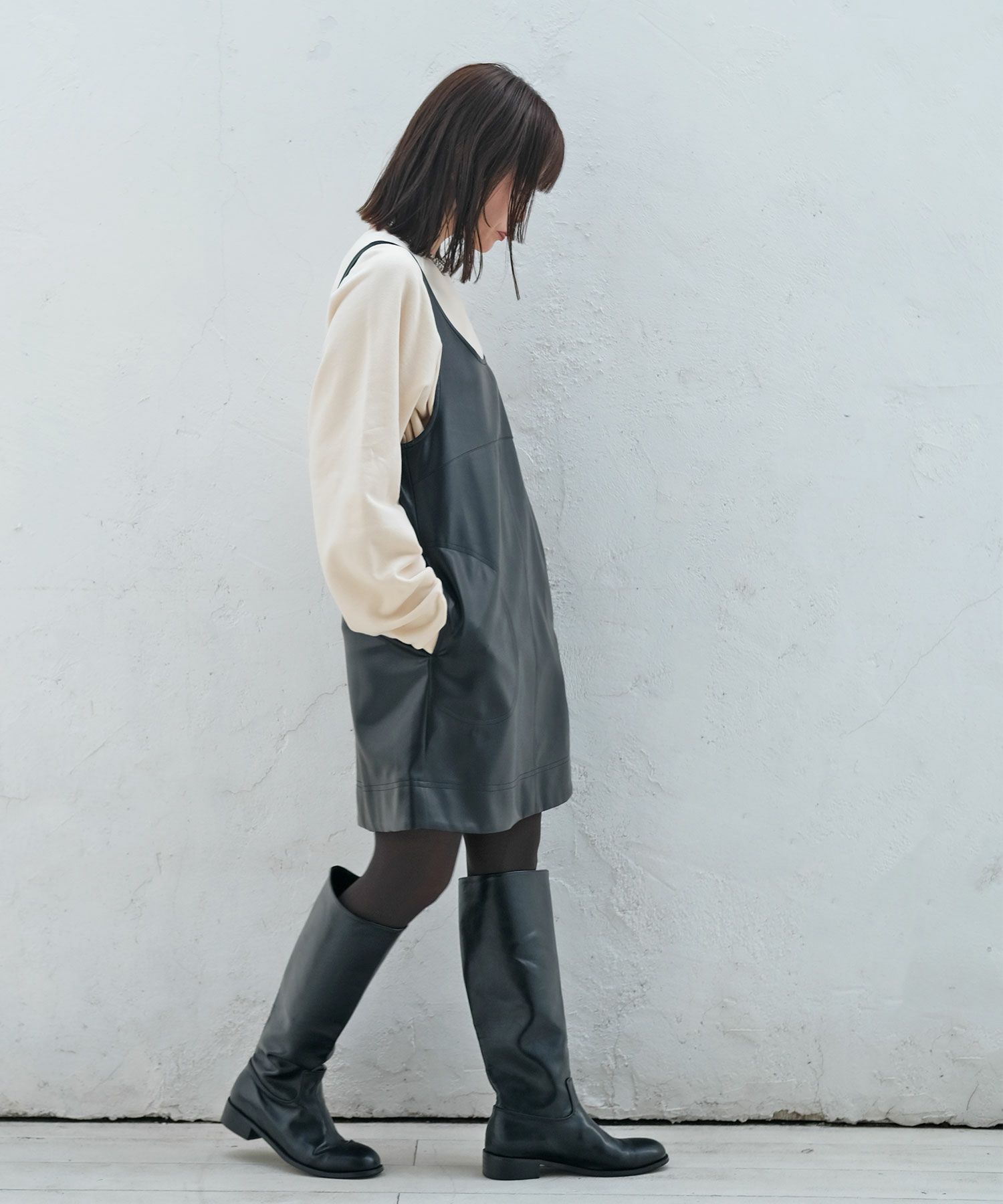 フェイクレザーミニワンピース