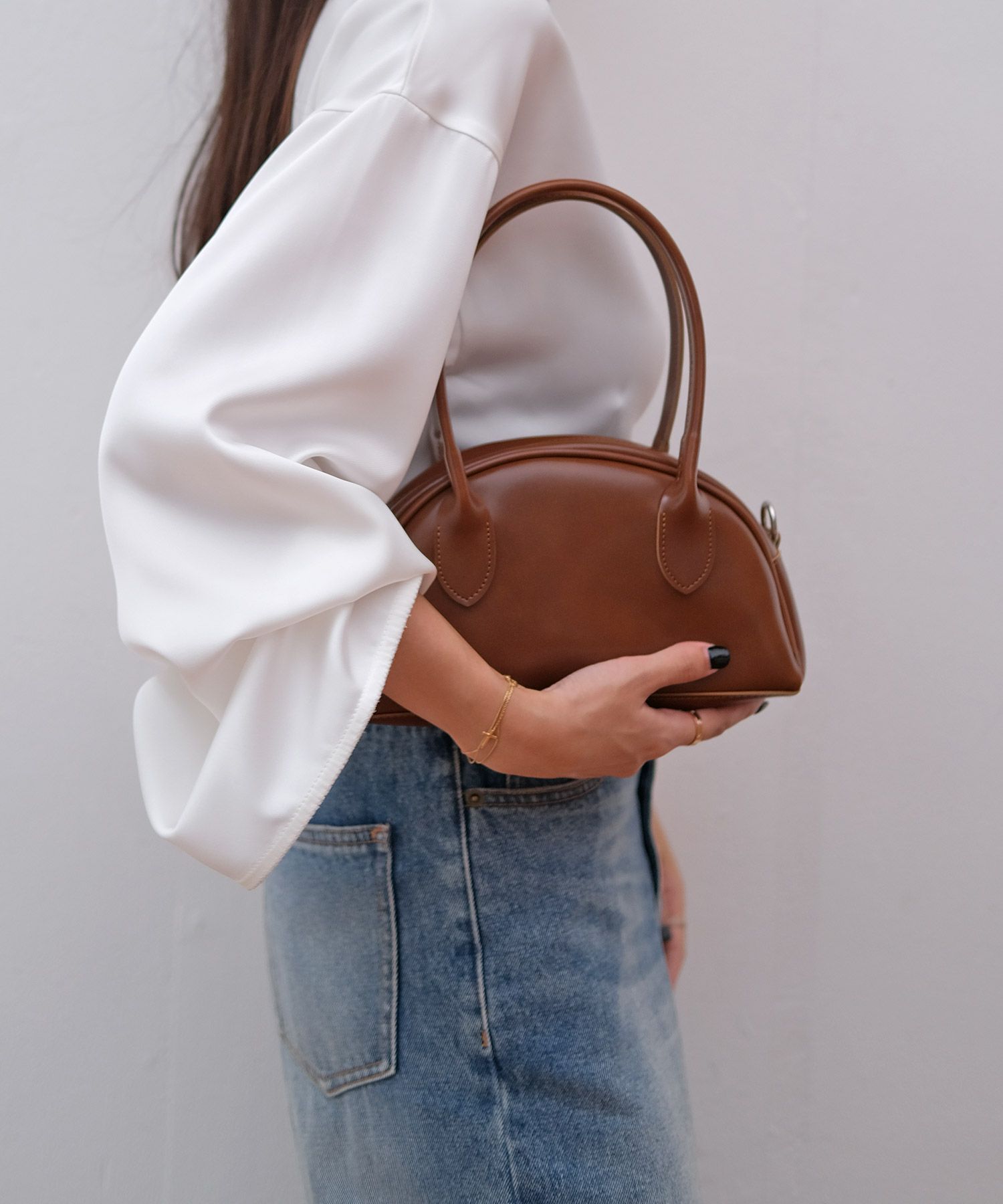 トレンドムードの漂うハーフムーンフォルムのハンドバッグ。