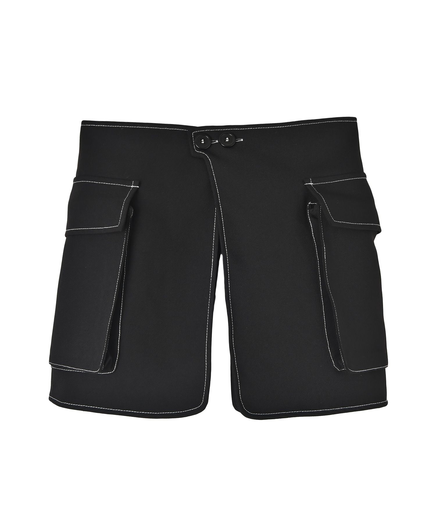 左右の大きめなポケットがシンプルなスタイリングのアクセントにも。