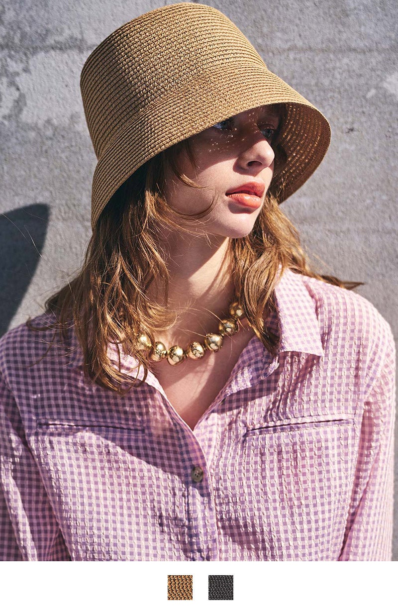 ペーパーのブレード素材を使用した、軽やかで清涼感のある大人のためのサマーハット。