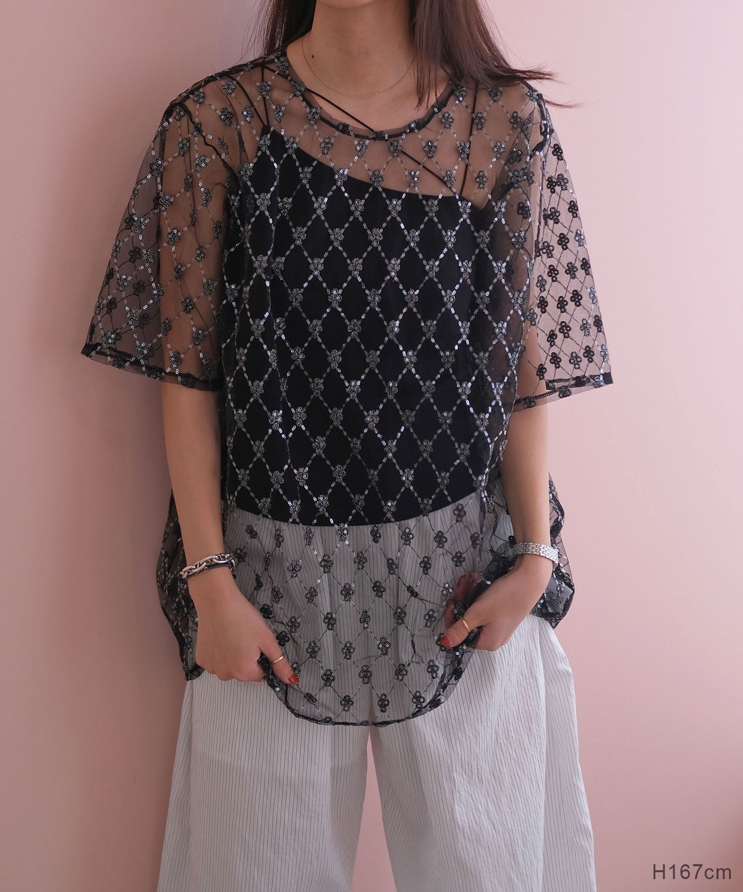 着用モデル167cm(ブラック)(フラミンゴ) 158cm(ホワイト)