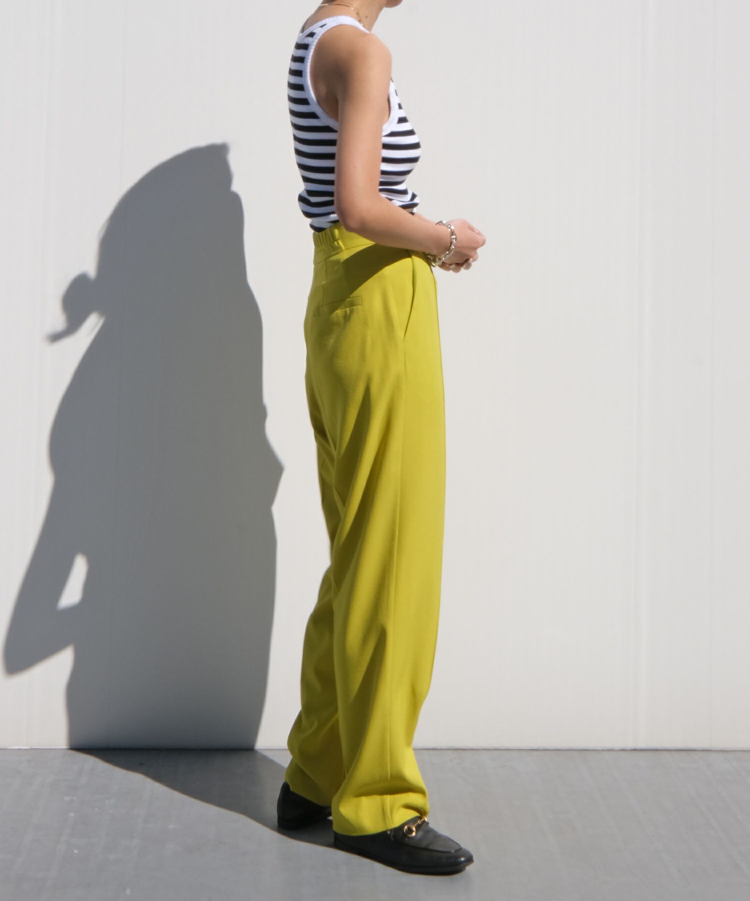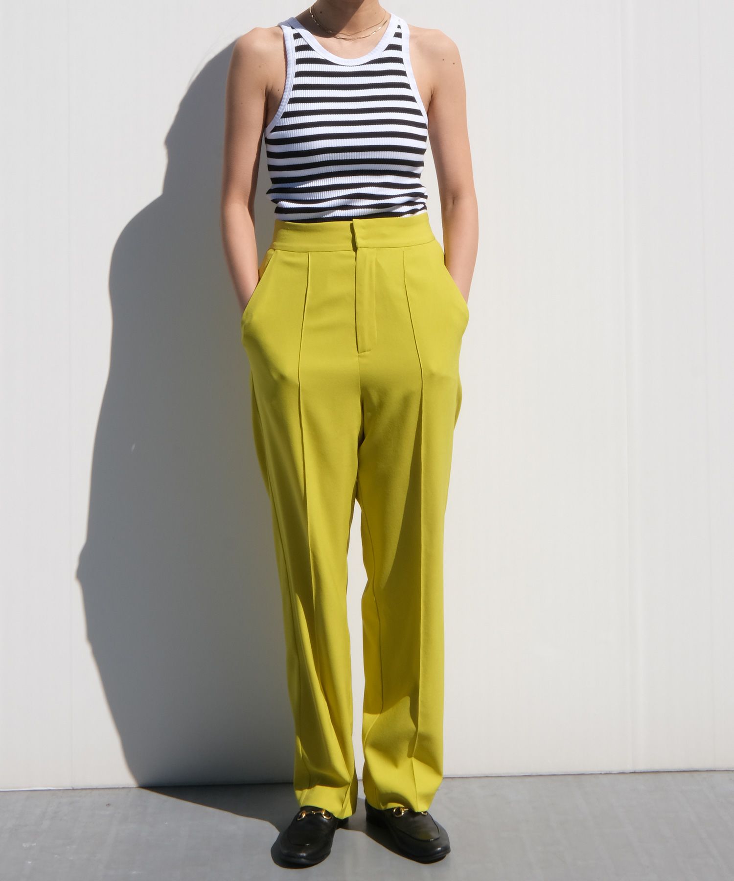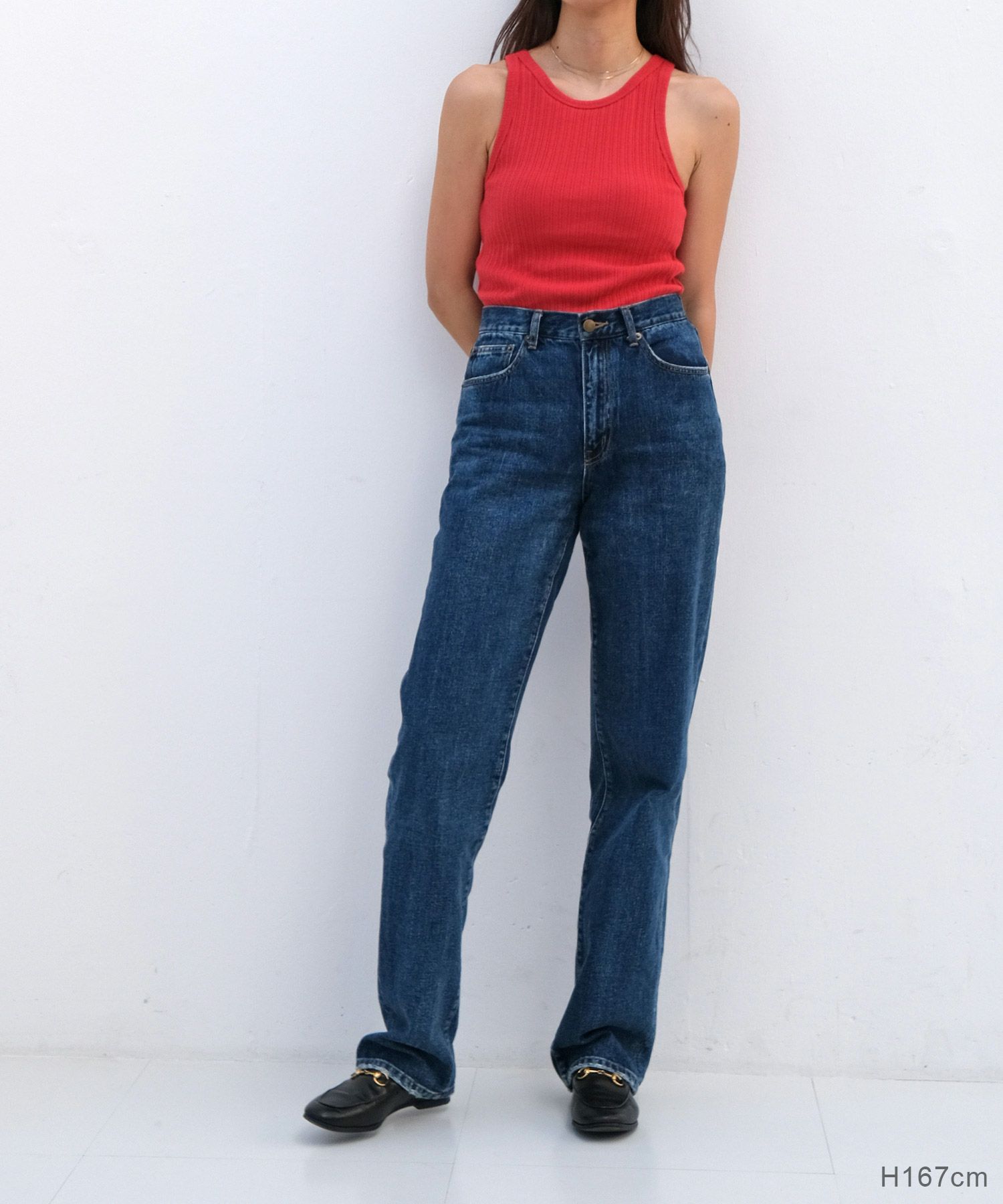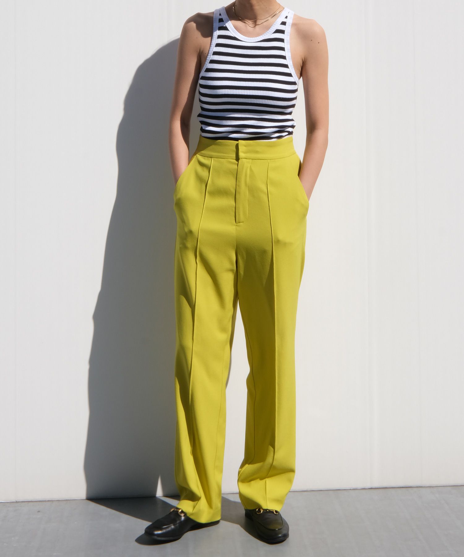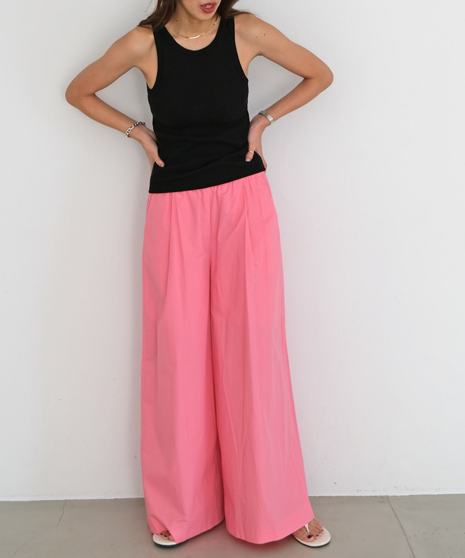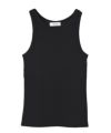 伸縮性に富んだリブ素材を使用し、ボディにソフトフィットすることで、すっきりとしたシルエットが女性らしくヘルシーな印象に。