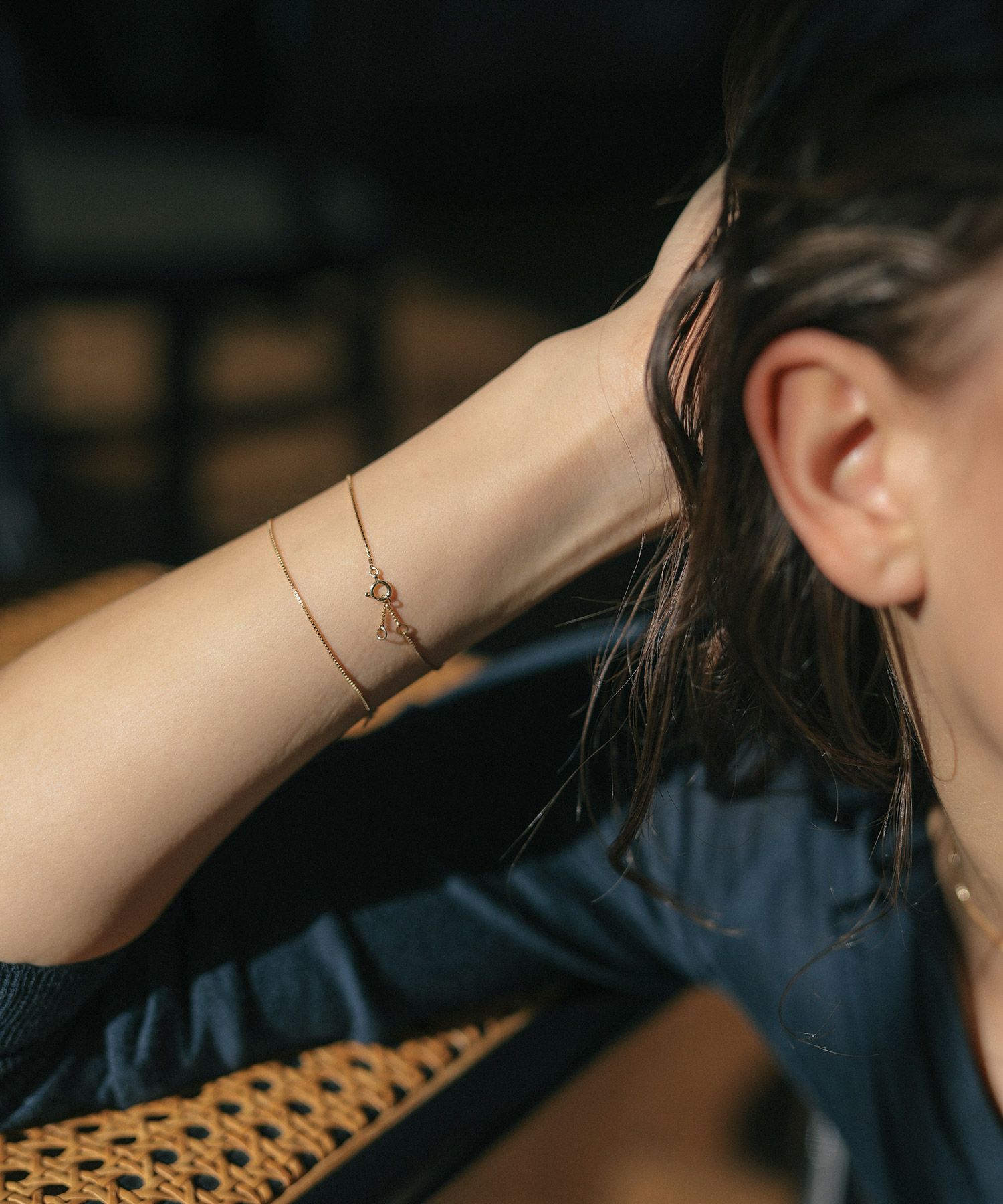 スタイルの邪魔にならず、されど手元に華やかさを与えてくれるジュエリーです。