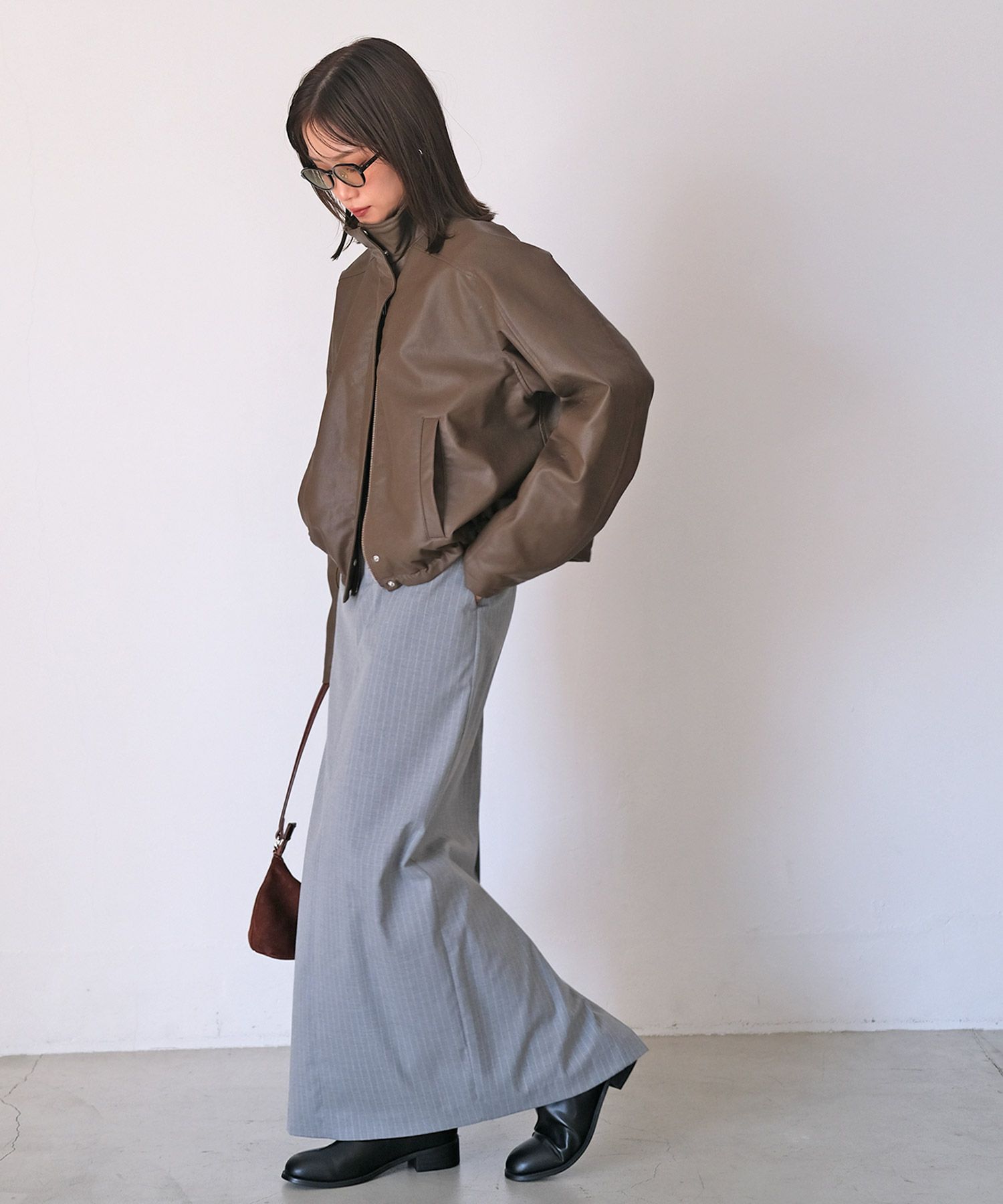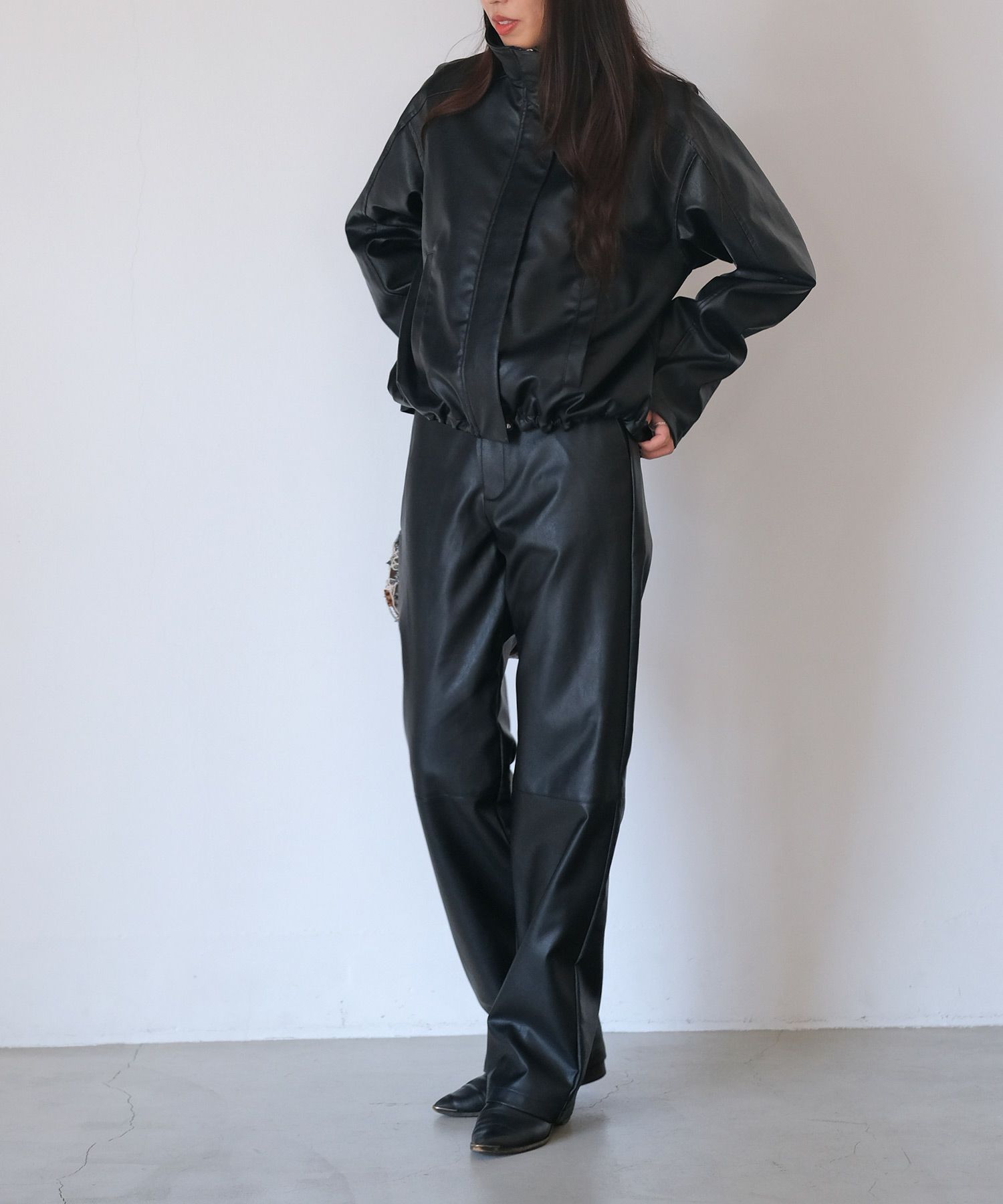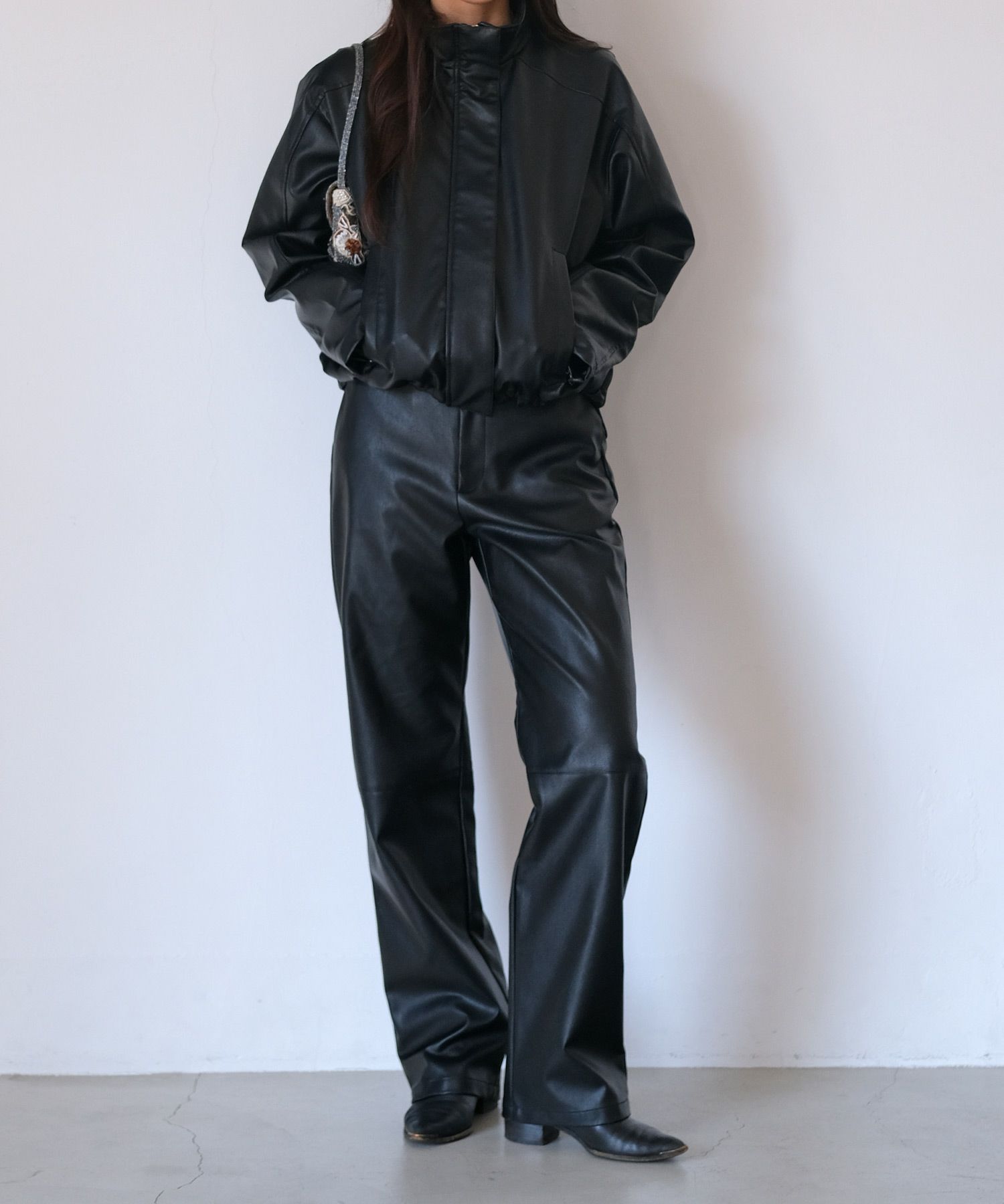 同じ生地のフェイクレザーパンツとセットアップでの着用もおすすめです。