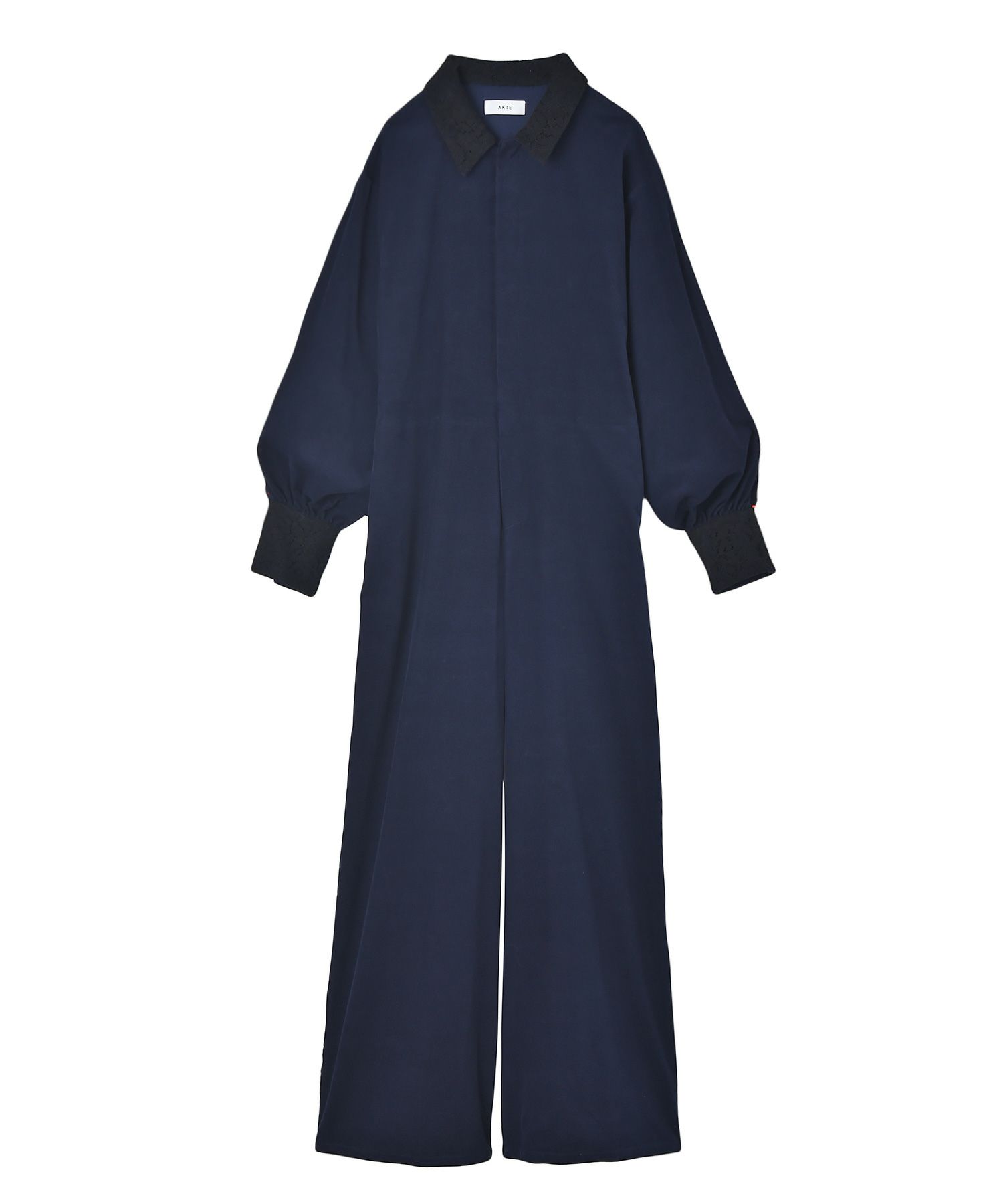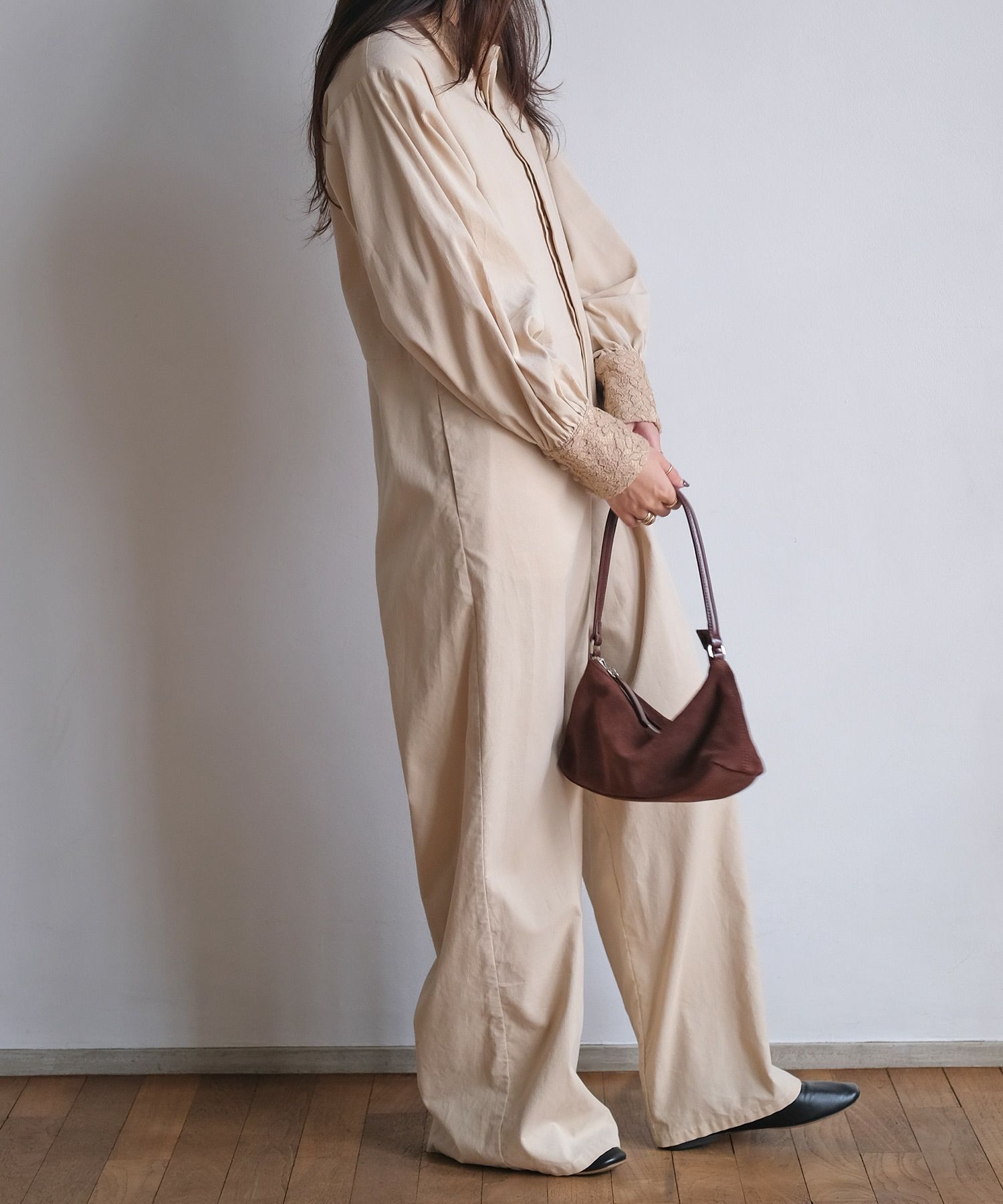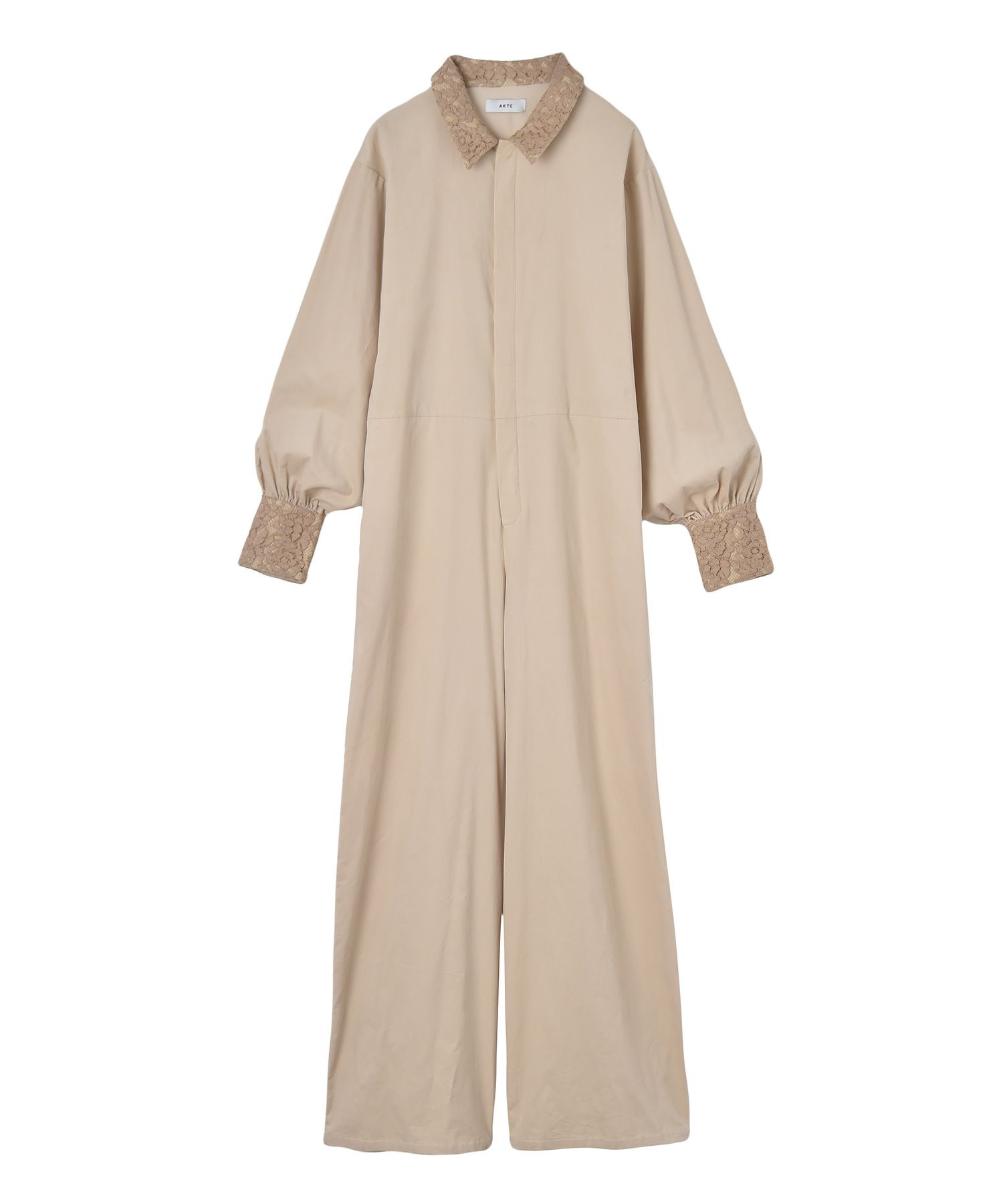 こなれ感のあるシルエットと女性らしさをプラスするレースディテールがモダンなジャンプスーツ
