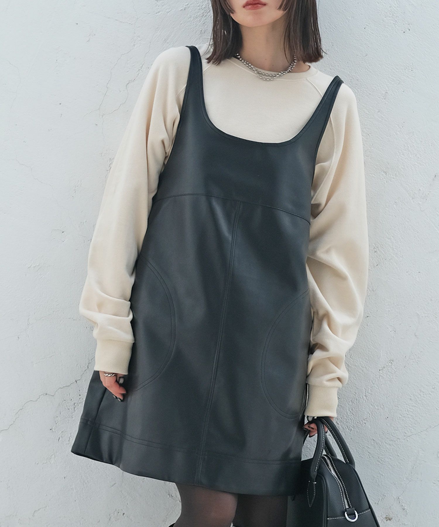 フェイクレザーミニワンピース