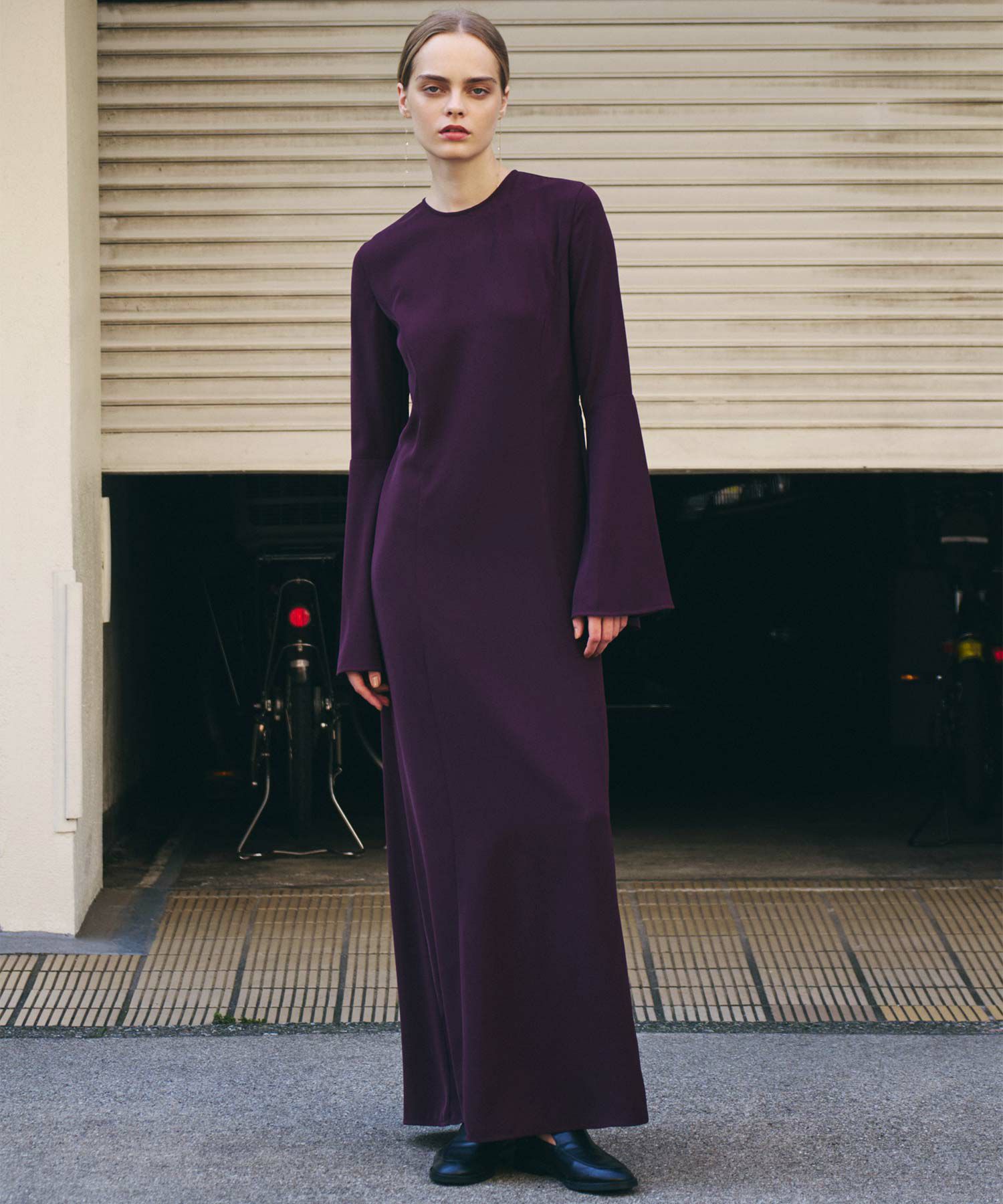 無駄の無いシンプルさとバックコンシャスなデザインが凛とした女性らしさを放つフレアスリーブドレス