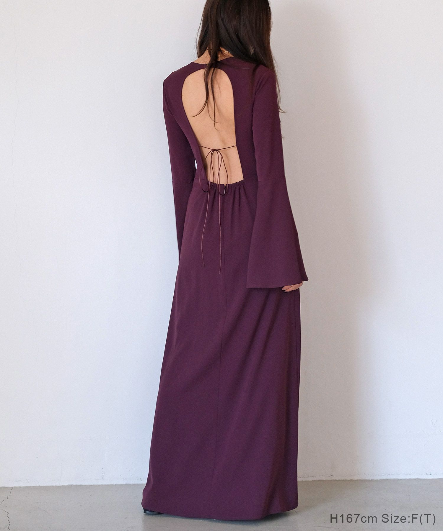 大胆なバックオープンデザインがポイントのロングワンピース。