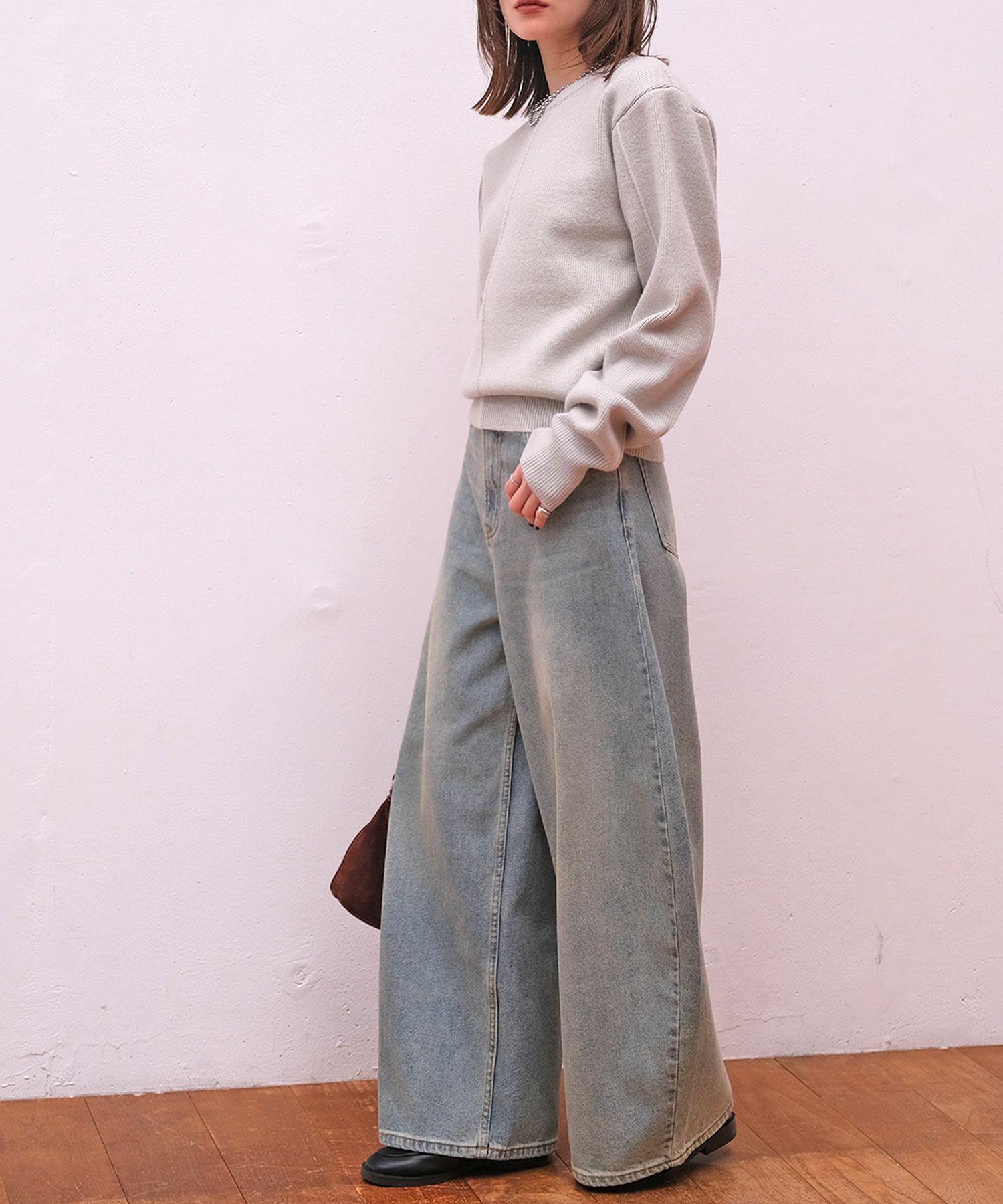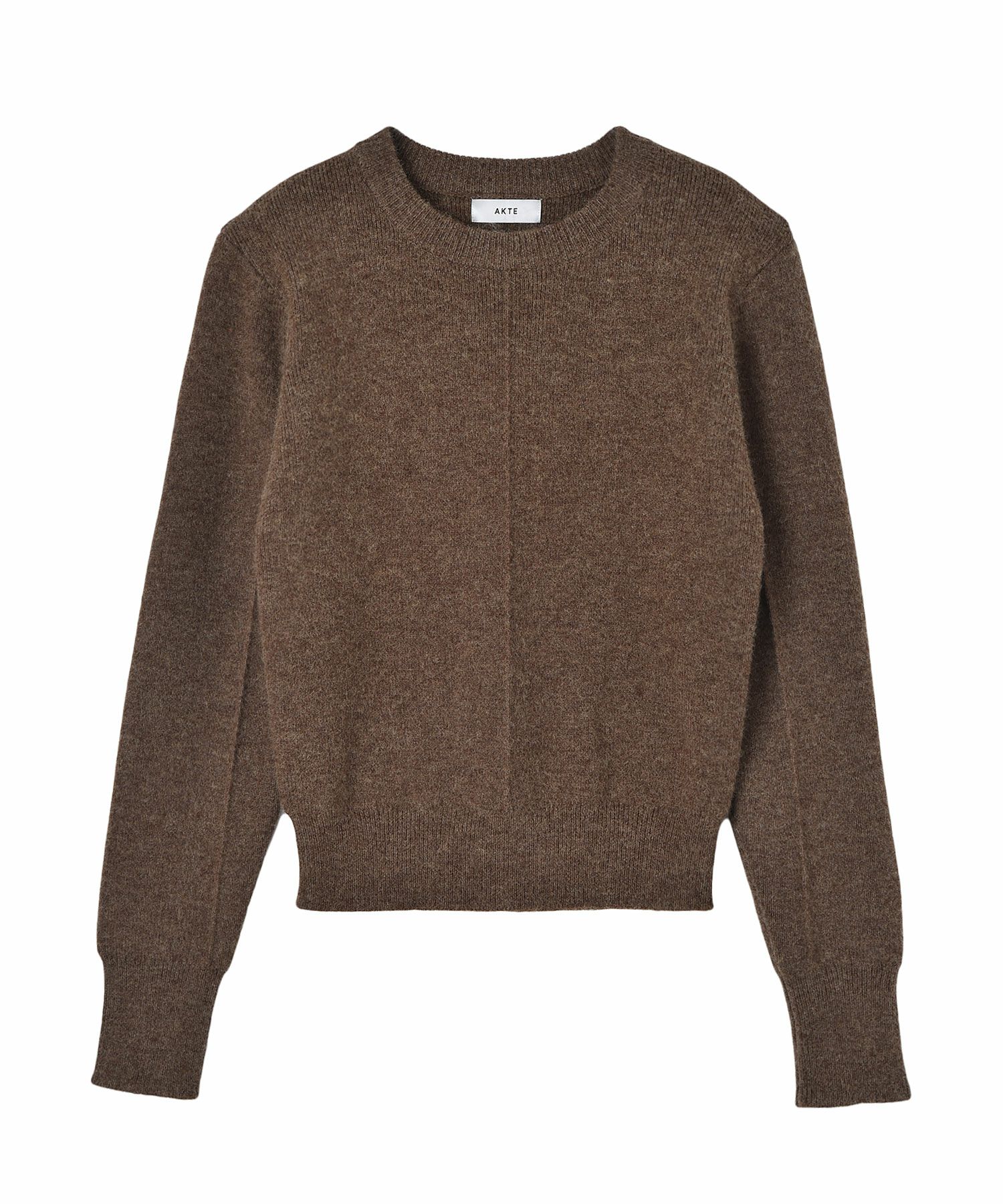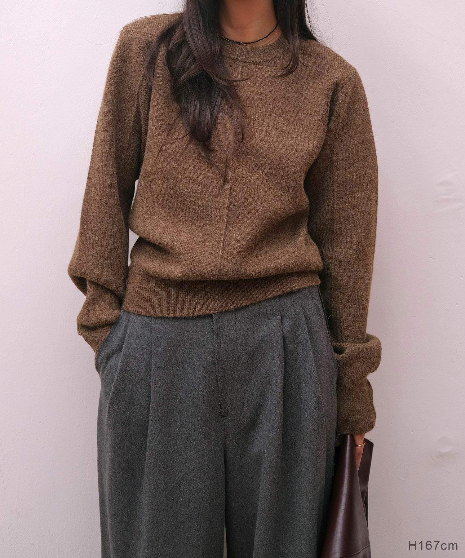 ニットのカジュアルさがありながら、詰まったクルーネックが品のあるクリーンさを演出します。