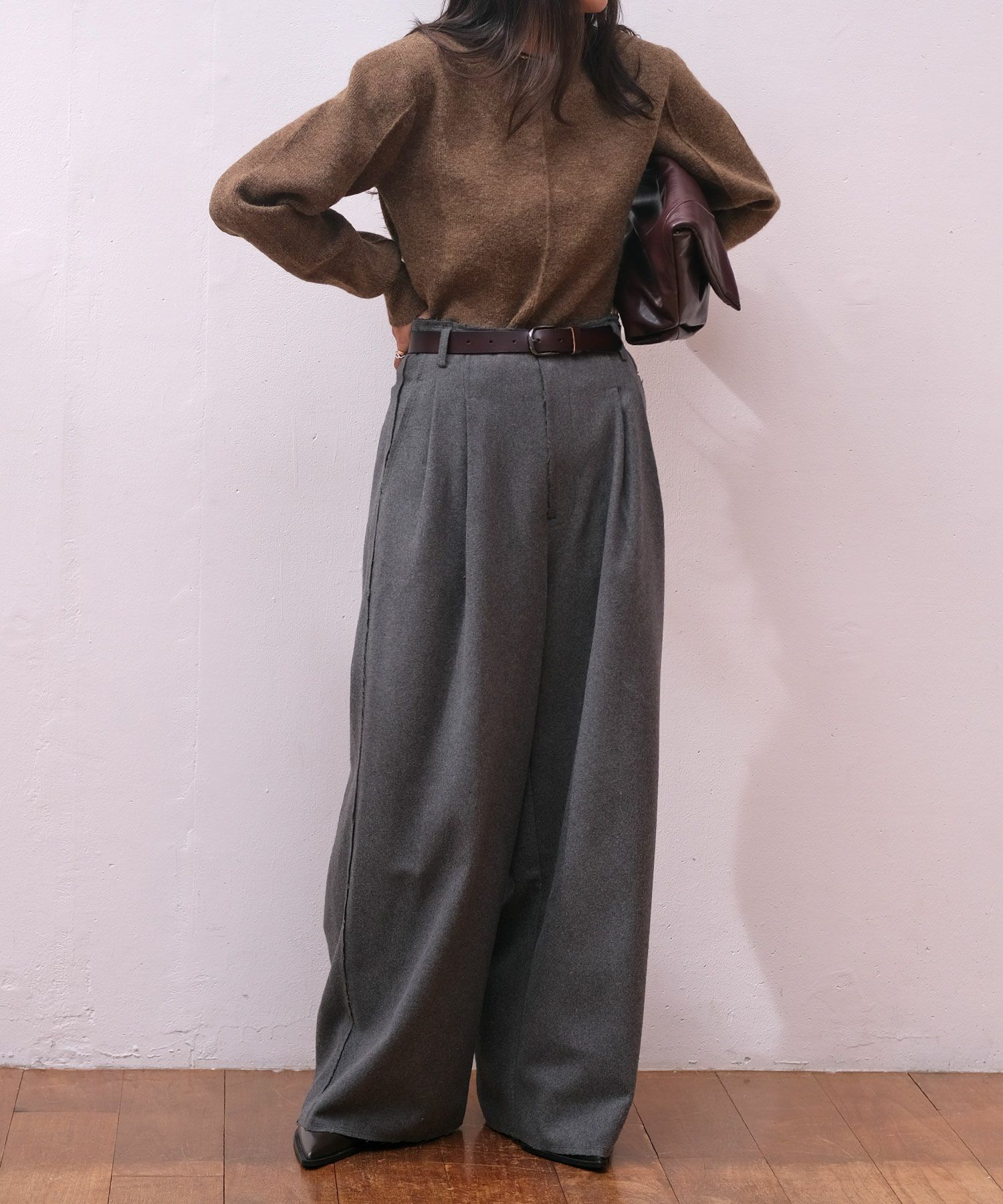 ウォーミーな印象にモード感を兼ね備えた肩パッド付きニットプルオーバー