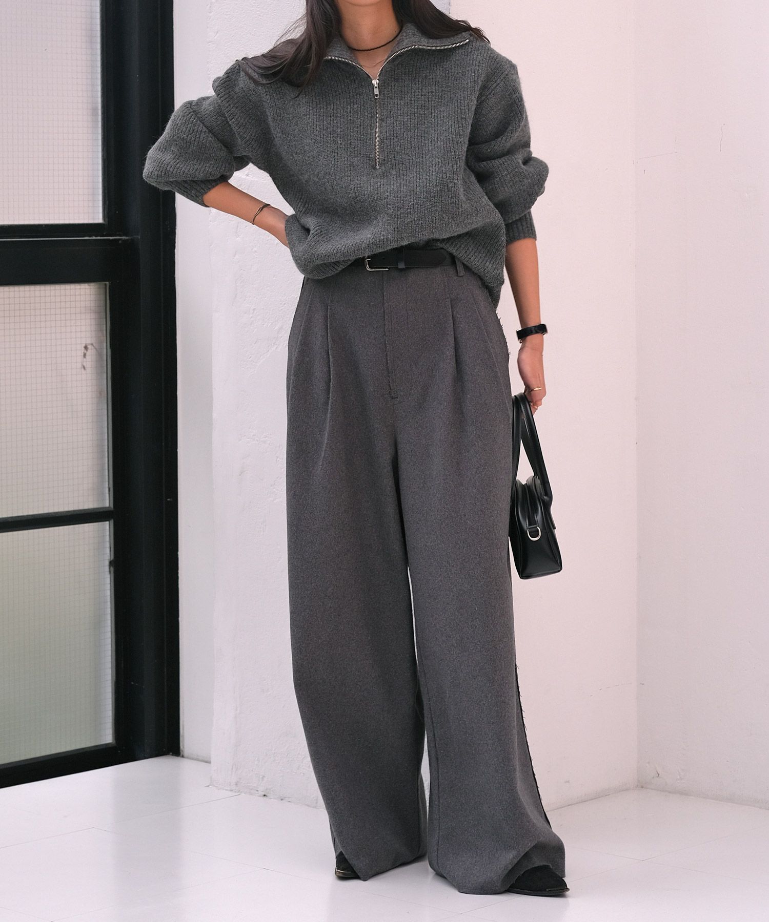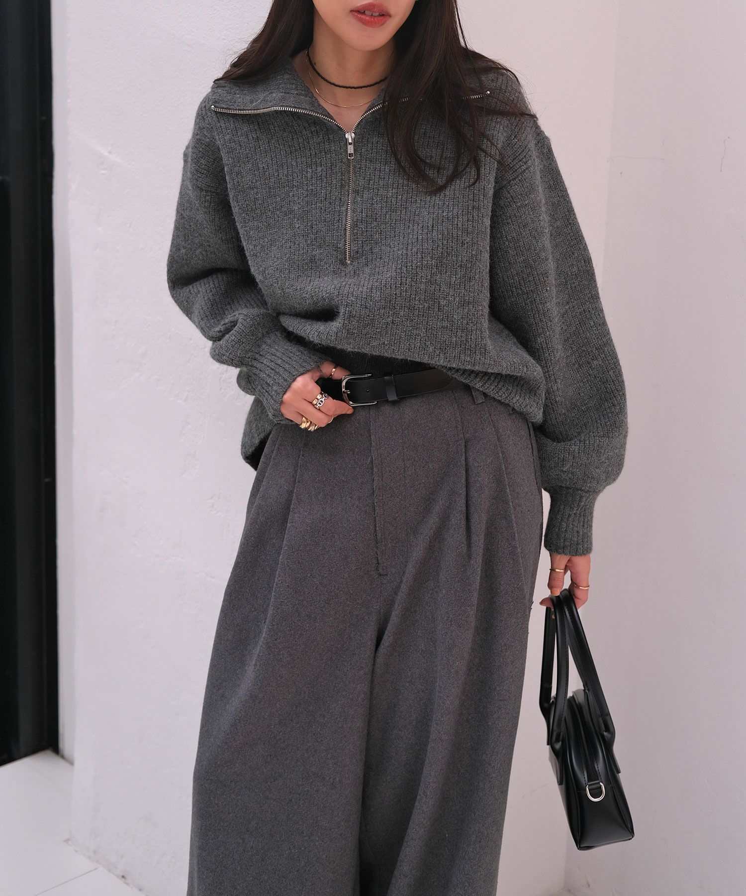 ファスナーアレンジで幅広い着こなしが楽しめる、大人カジュアルニット