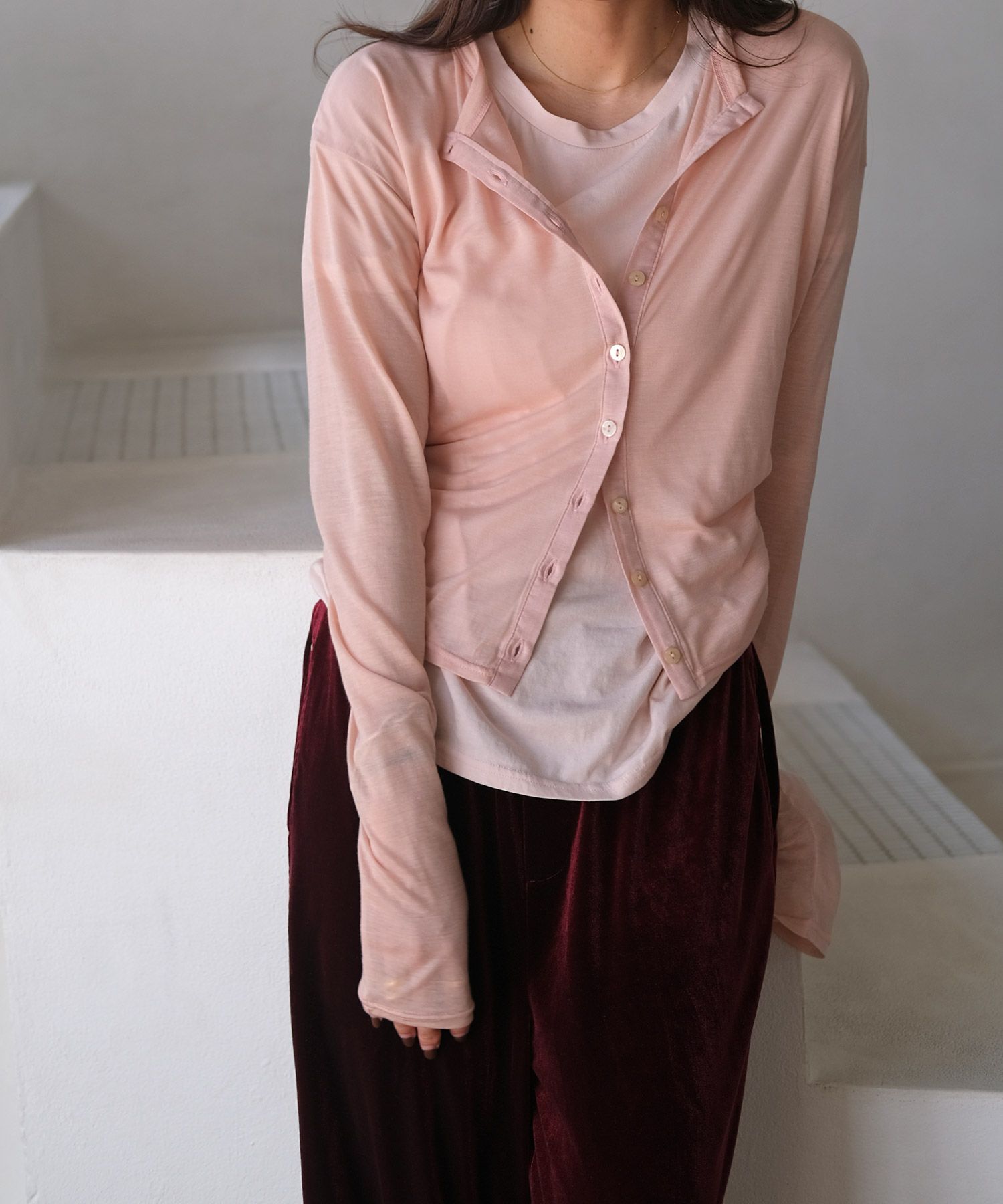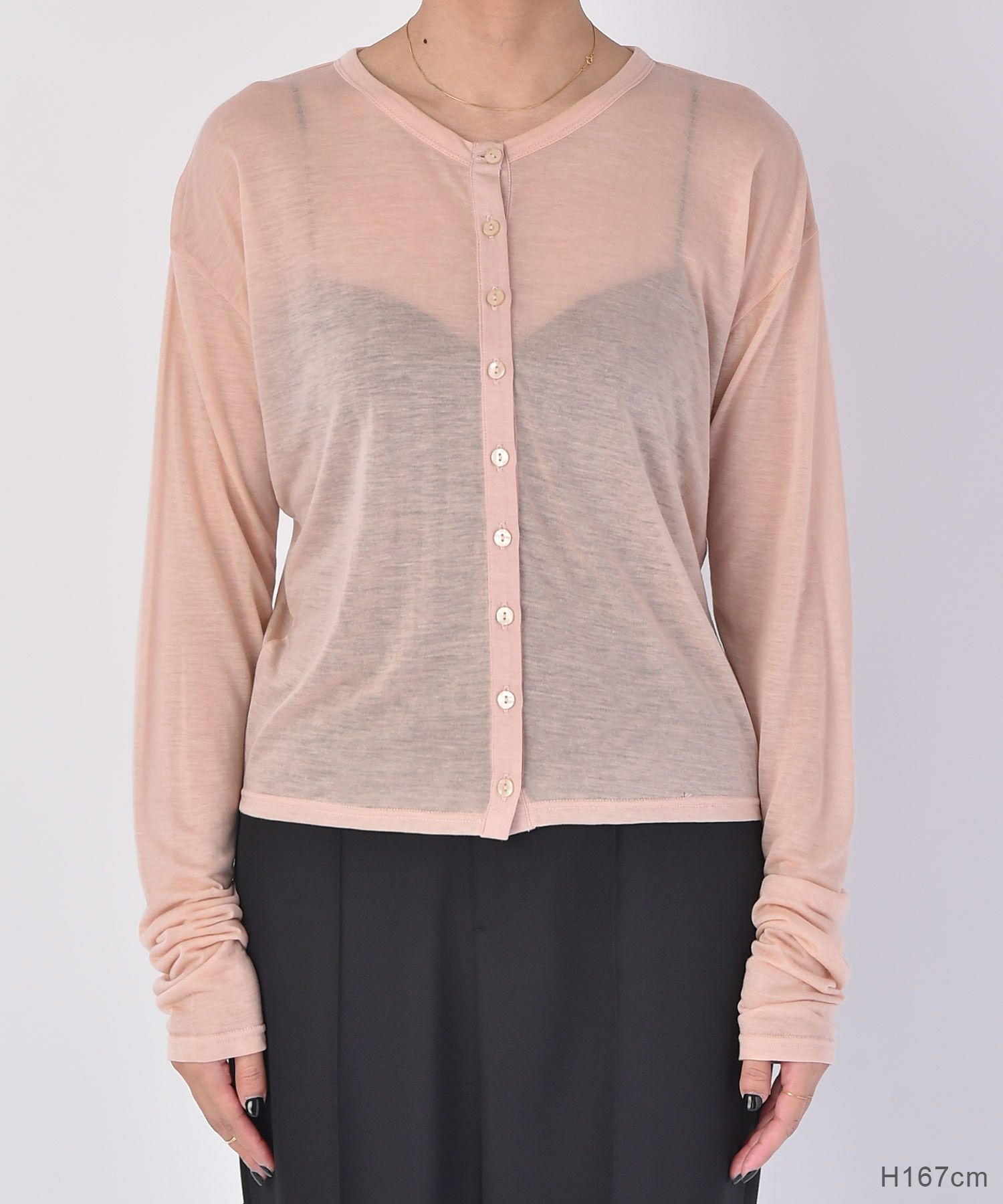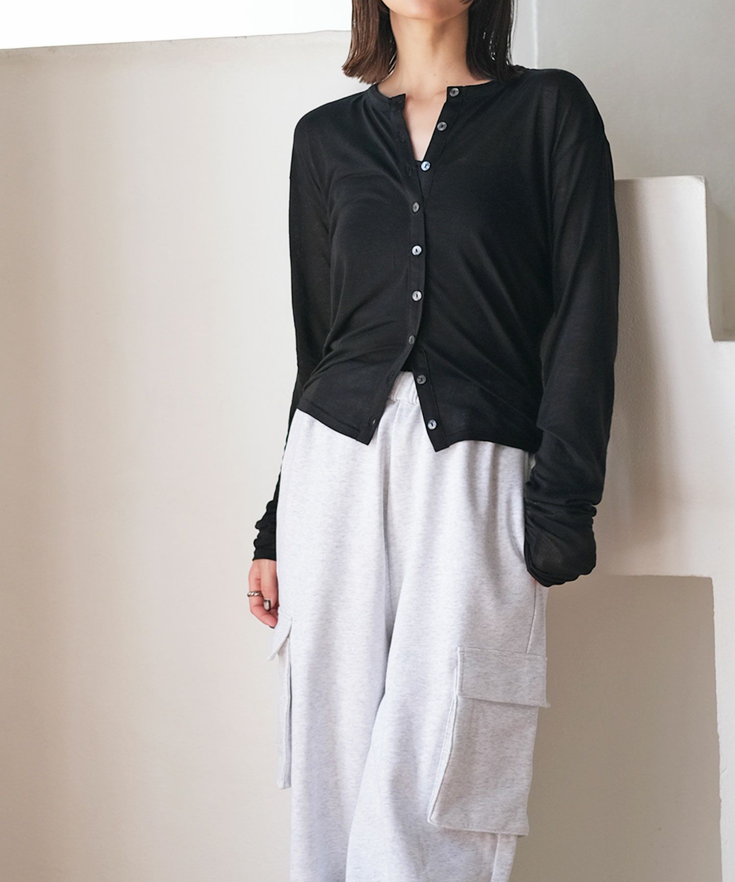 さり気ない肌見せができるシアーのカットソーカーディガン。
